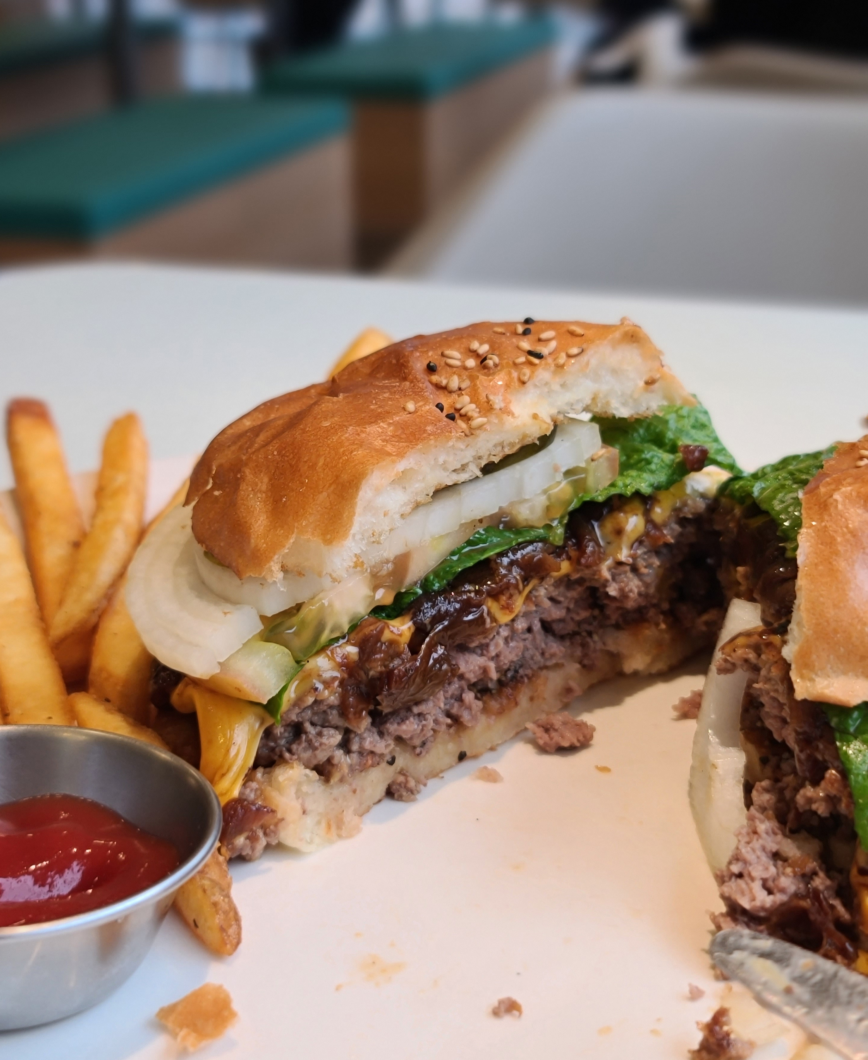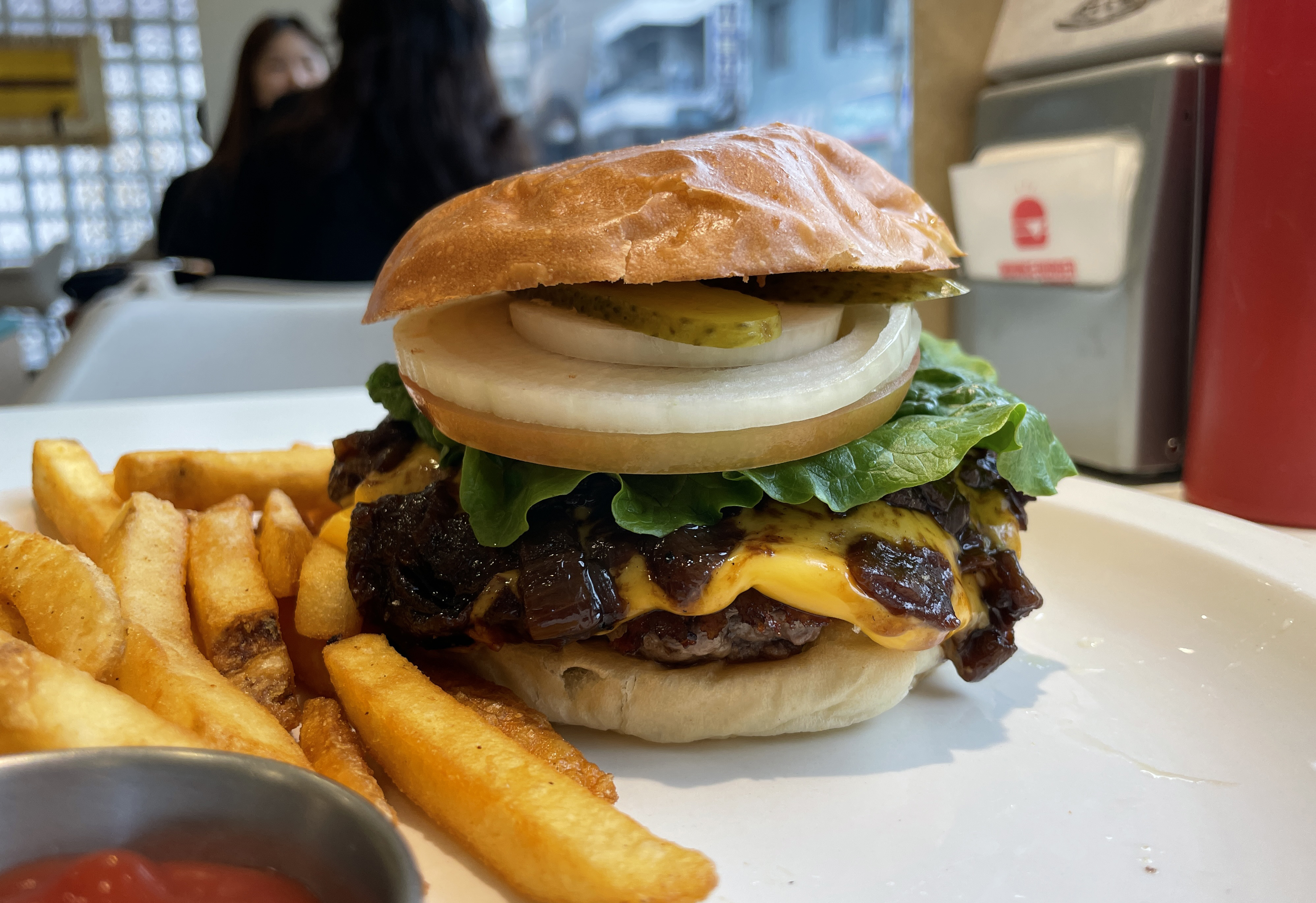 그래도 카라멜라이즈드 한 양파가 들어가서 부드러운 느낌이 있었고, 소고기 패티 위 치즈가 잘 녹아들어 고소한 맛이 있었습니다. 감자튀김은 웨지와 레귤러를 고를 수 있었는데, 저는 레귤러가 더 바삭하고 먹기 편해서 레귤러 감자튀김을 선택했습니다.
