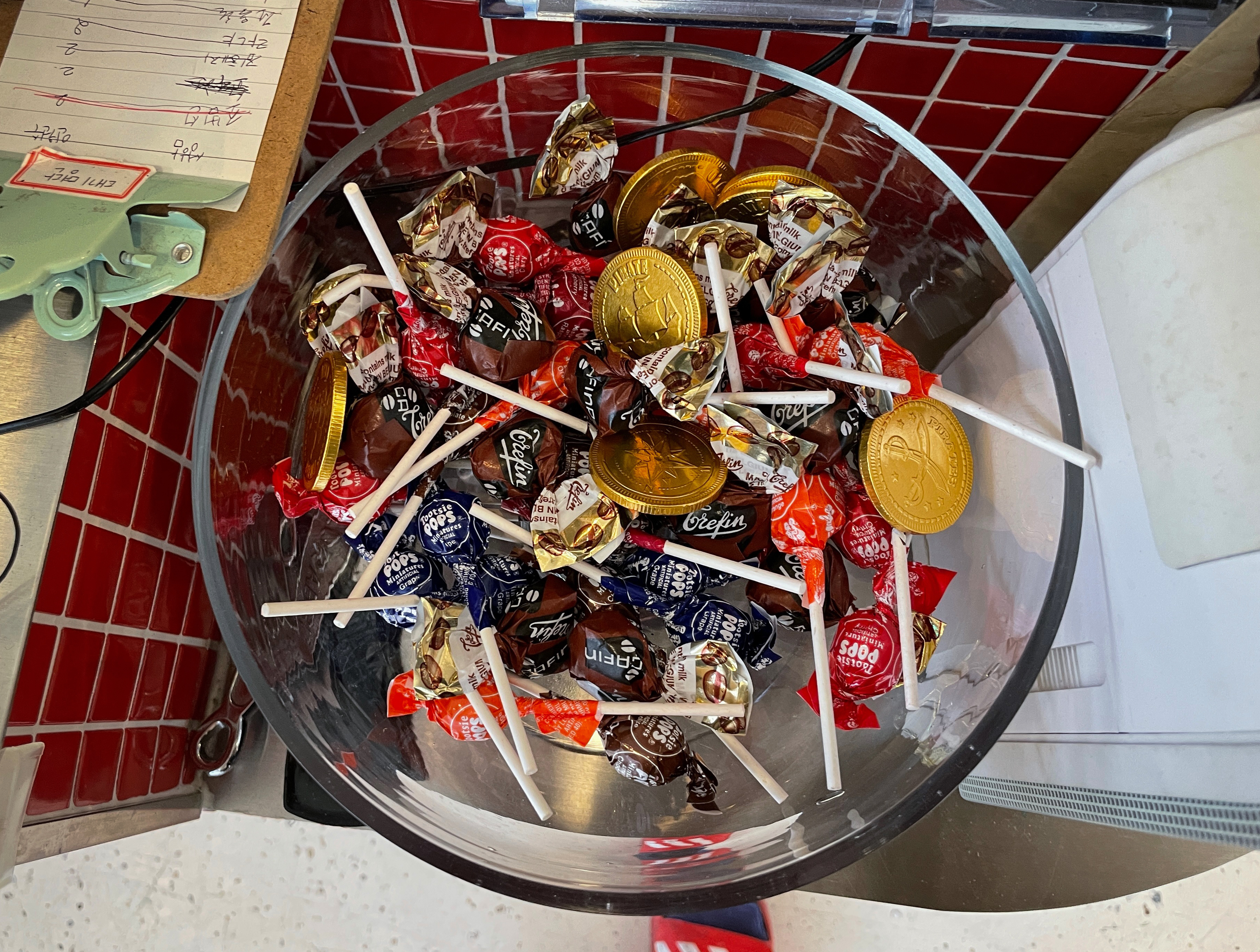 식사를 마치고 계산을 하려는데, 사탕과 초콜릿이 담겨있는 통이 보이더라고요. 가져가도 되는건지 물어보니 "많이 가져가셔도 된다" 고 해서, 초콜릿과 사탕을 골랐습니다. 나인온스버거에서 식사한 총비용은 9온스버거와 세트구성을 포함 16,000원이 나왔습니다. 샤로수길 수제버거 맛집 나인온스버거의 가격이 저렴한 편은 아니지만, 한번쯤 먹어볼만 한 것 같습니다. 다음에 이용한다면 치즈가 잔뜩 올라간 포시즌버거를 도전해보고 싶네요.(ㅋㅋ)