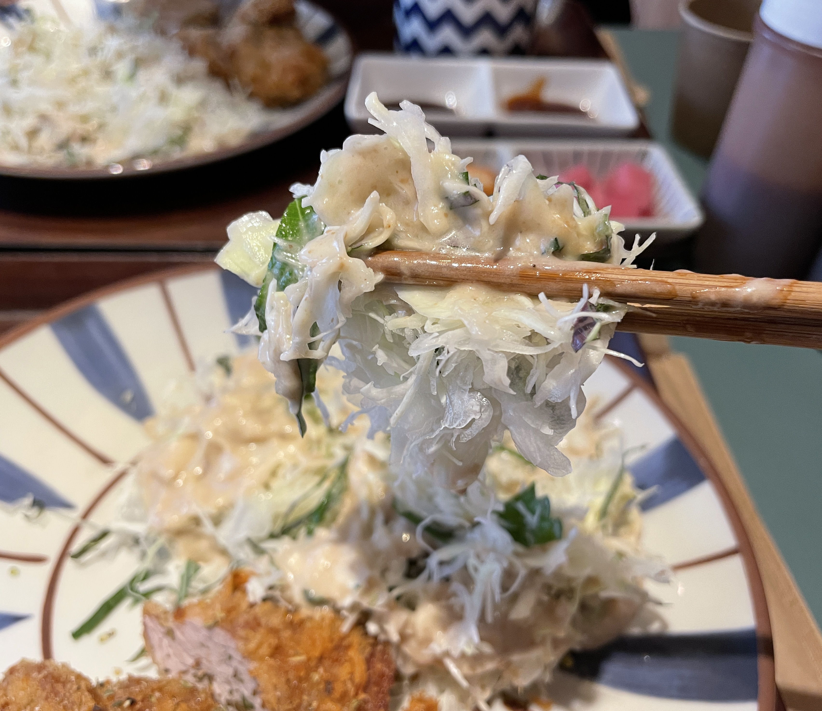 방이동 바삭한식당의 돈까스 소스는 매콤한 맛과 기본 맛이 있는데, 저는 개인적으로 지인들과 방문하면 매콤한 맛의 소스를 더 추천하고 있습니다. 아무래도 돈까스가 튀긴 음식이다 보니 느끼할 수 있기 때문에 느끼함을 잡기 위해서 매콤한 소스를 고르면 괜찮더라고요.