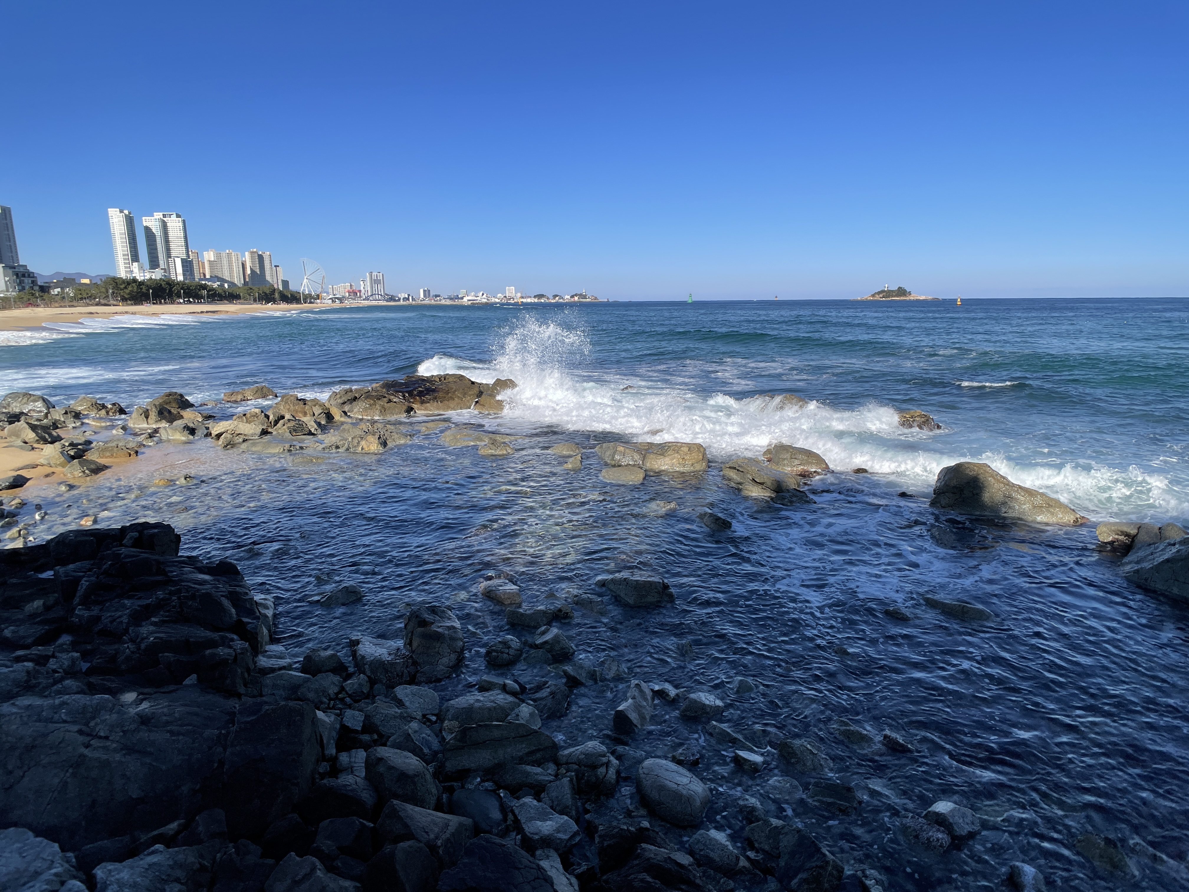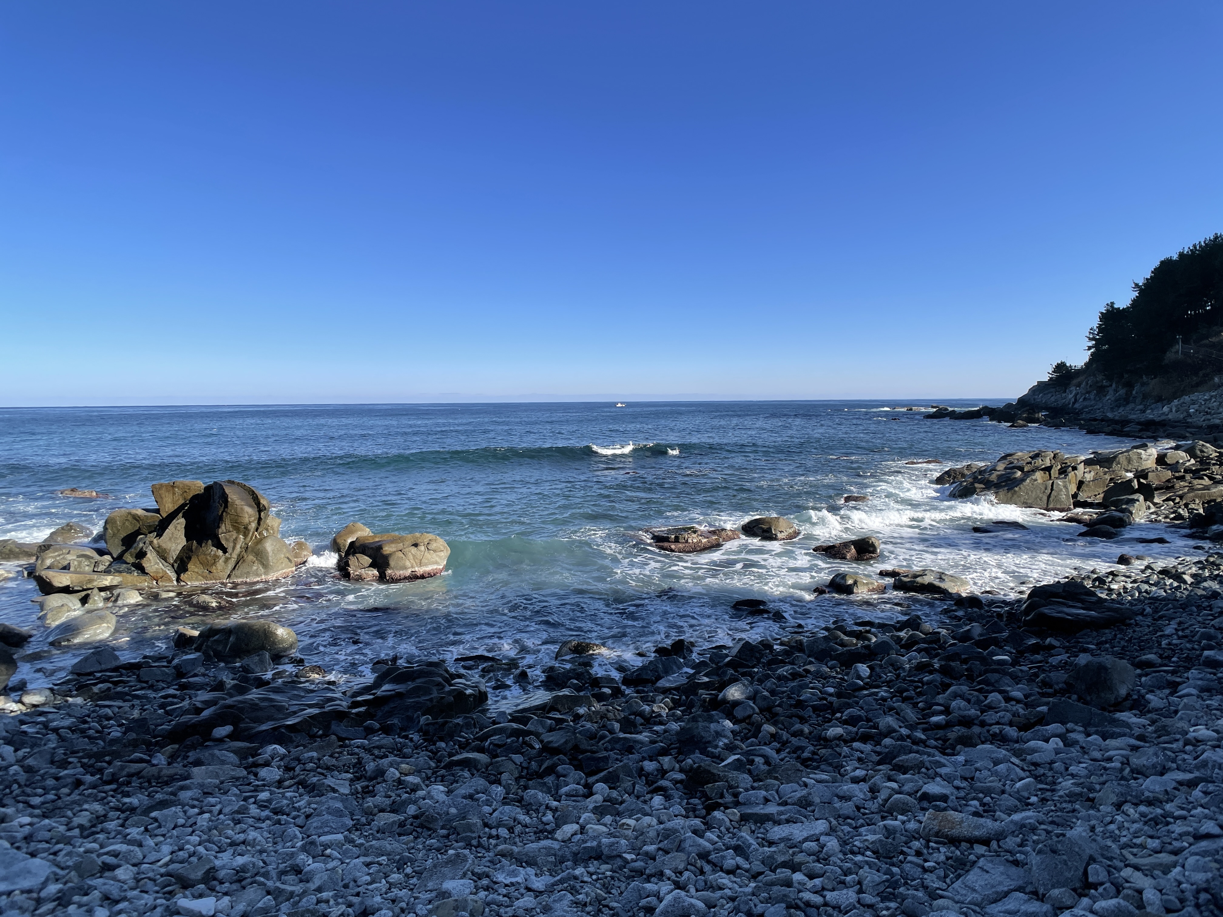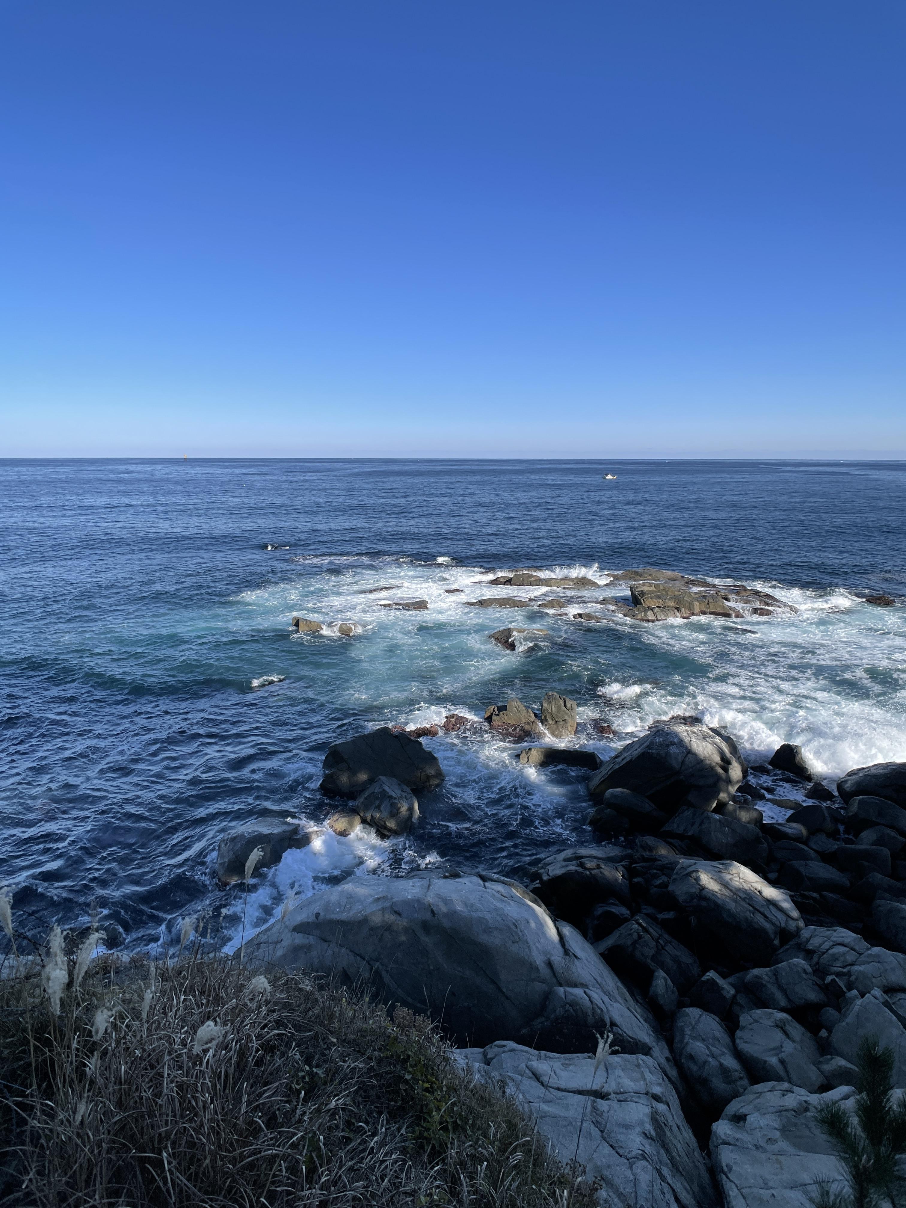 특히 외옹치 해변에서 바라보는 바다는 모래사장이 아닌 암석으로 이루어져 더 깊은 바다를 가까이서 볼 수 있다는 게 매력인 것 같았고, 청명한 날씨 덕분에 기분도 더 좋았던 것 같습니다.