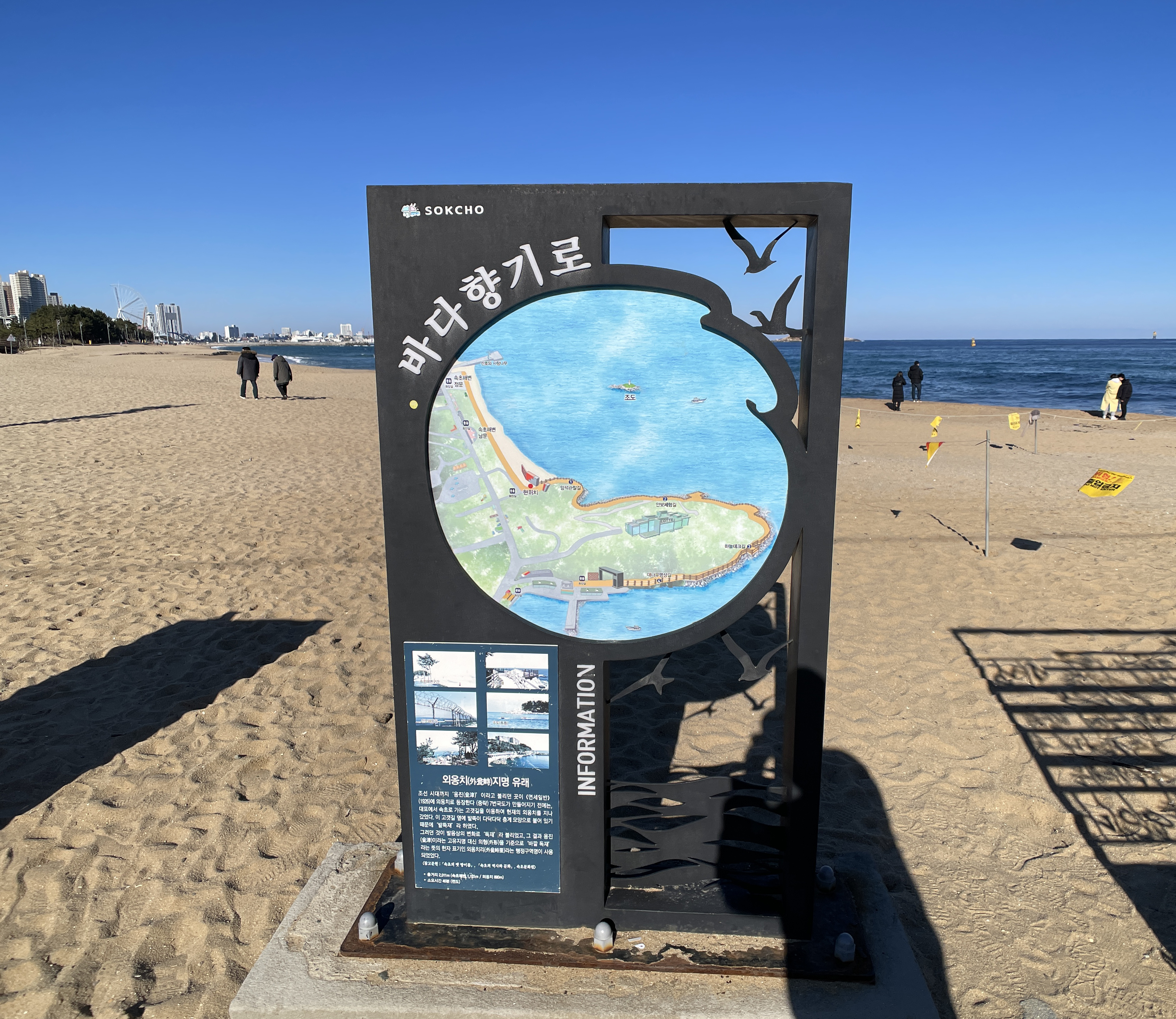 제가 속초여행을 한 날 속초해수욕장-외옹치해수욕장을 둘러보는 동안 날씨가 너무 좋아서 산책하기에 정말 좋더라고요. 쪽빛으로 빛나는 하늘을 보니 마음이 뻥 뚫리는 것 같았습니다.