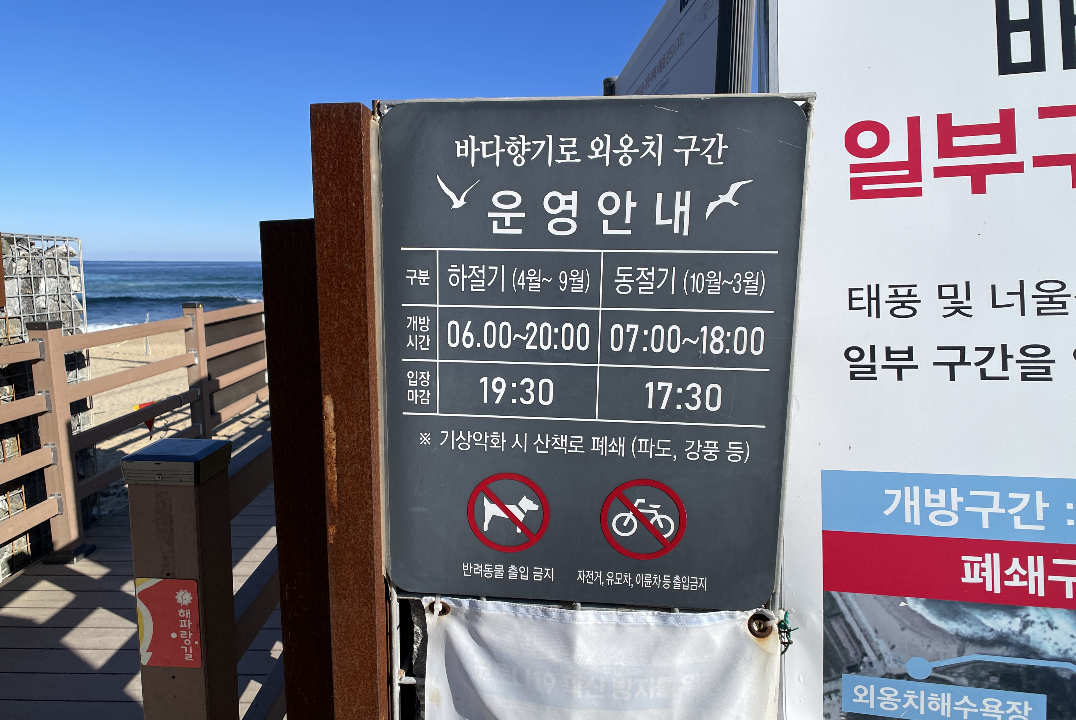 외옹치 해변은 속초 해수욕장 옆에 위치한 곳으로, 조용한 분위기와 데크로 된 둘레길을 걸으며 바다와 가까이서 감상할 수 있다는 게 특징인 해수욕장입니다.