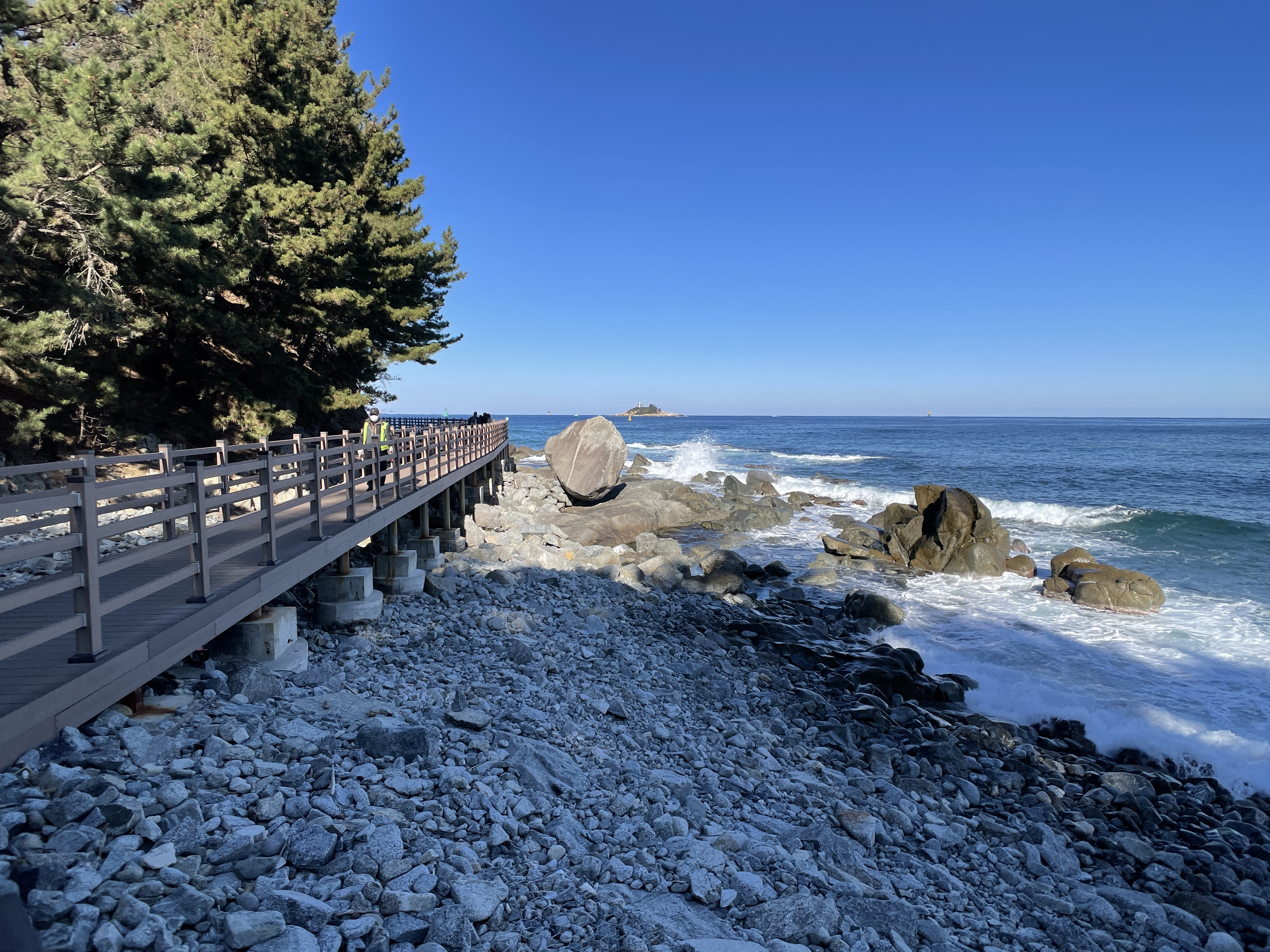 특히 외옹치 해변에서 바라보는 바다는 모래사장이 아닌 암석으로 이루어져 더 깊은 바다를 가까이서 볼 수 있다는 게 매력인 것 같았고, 청명한 날씨 덕분에 기분도 더 좋았던 것 같습니다.