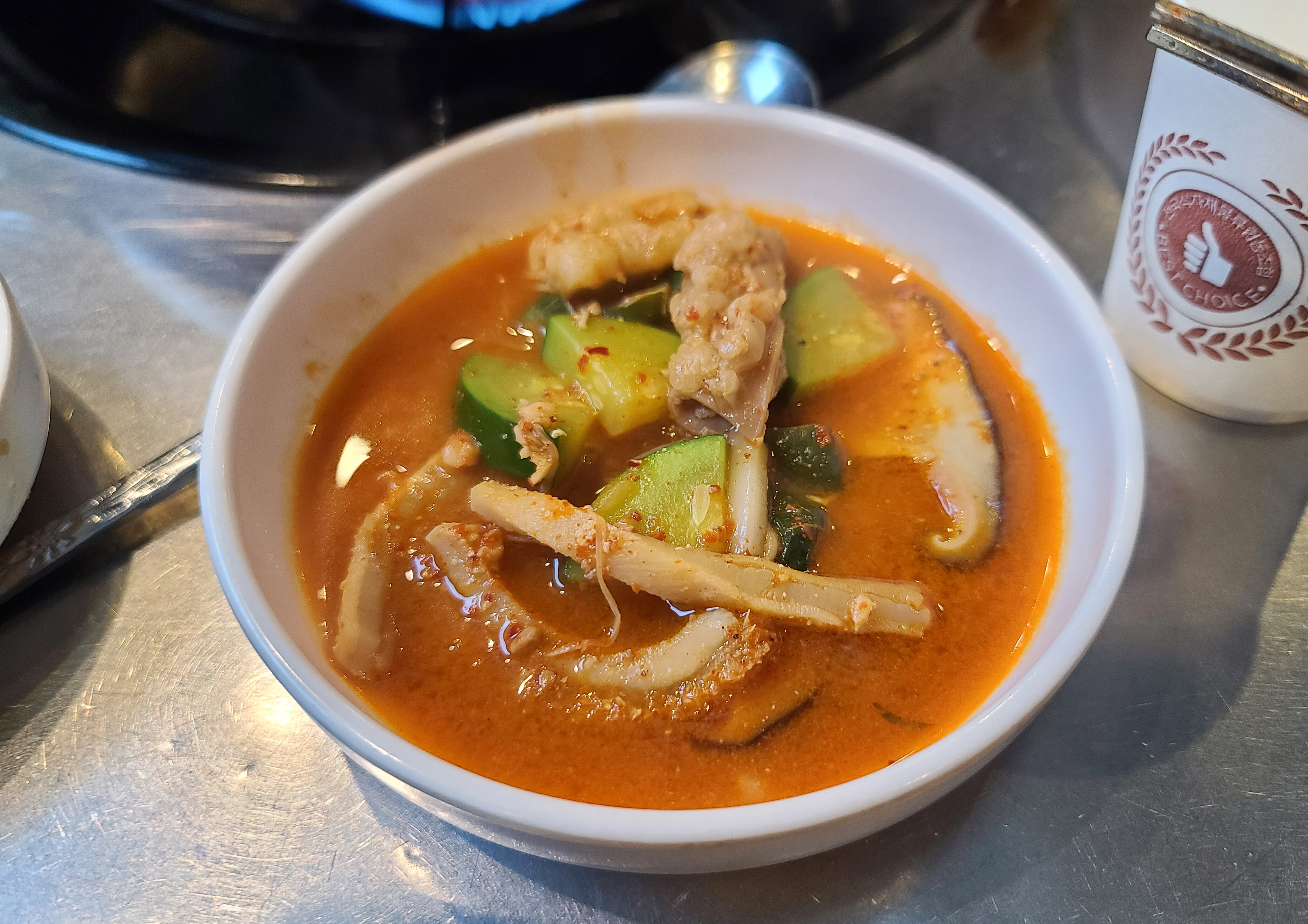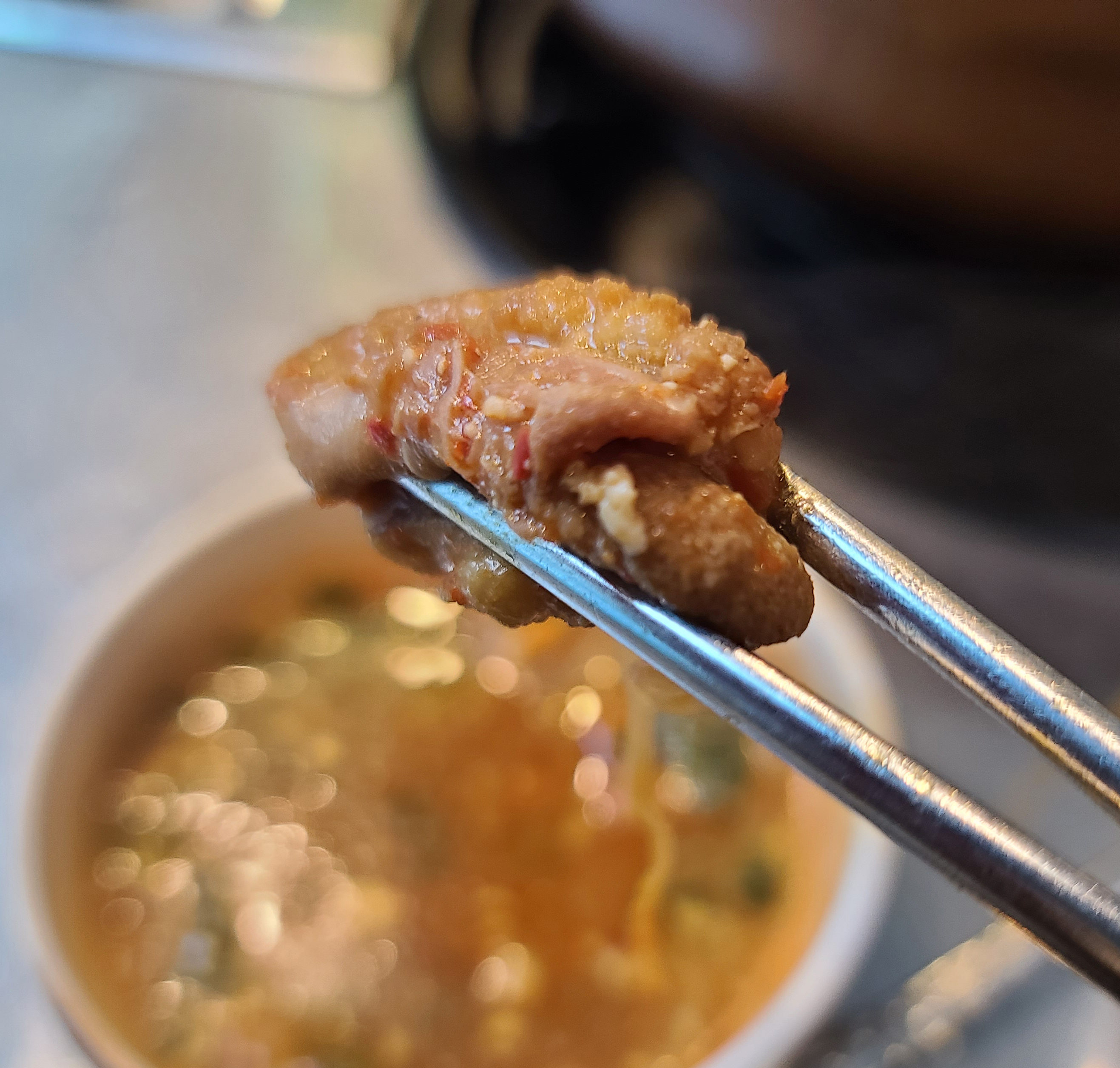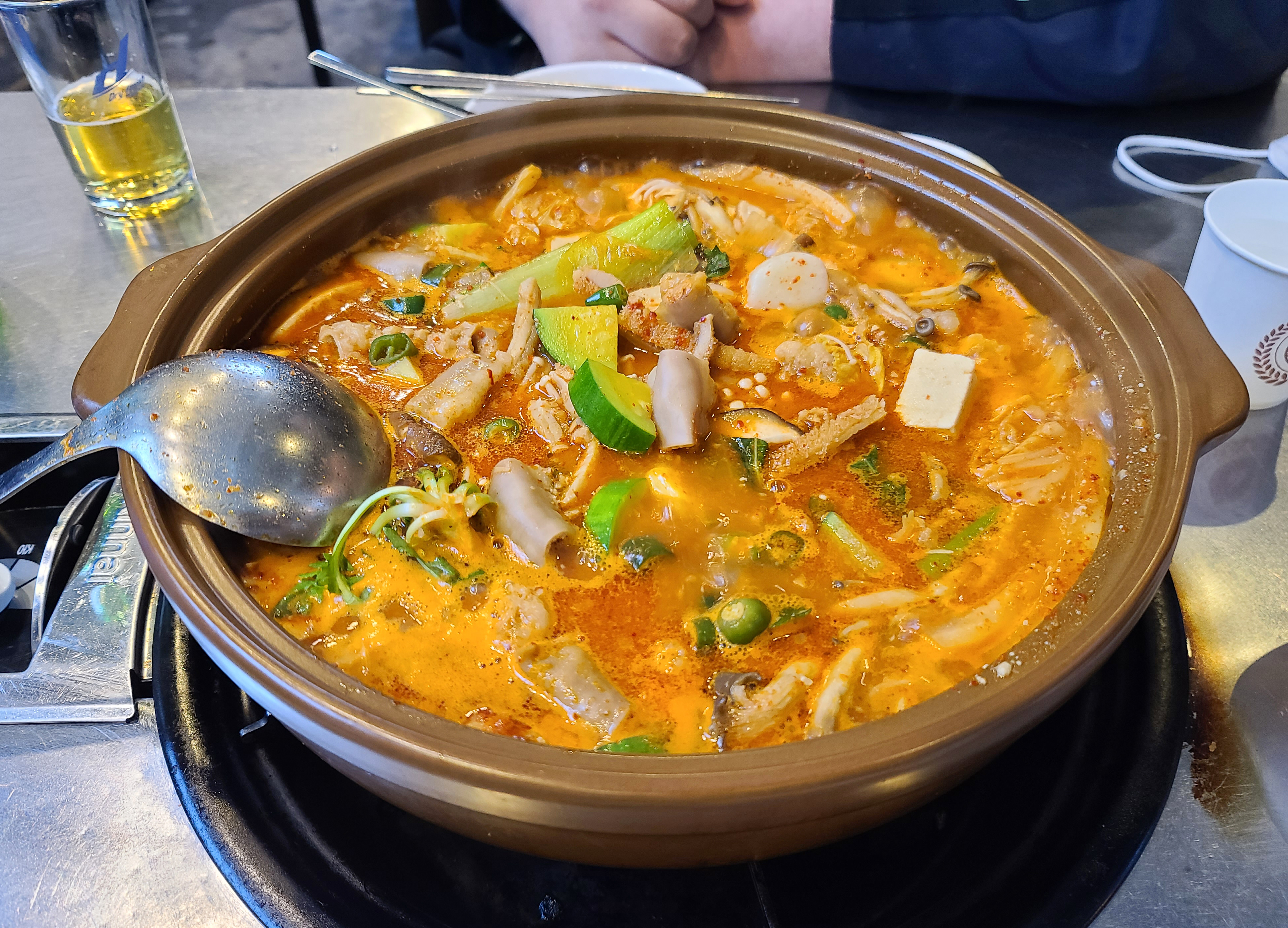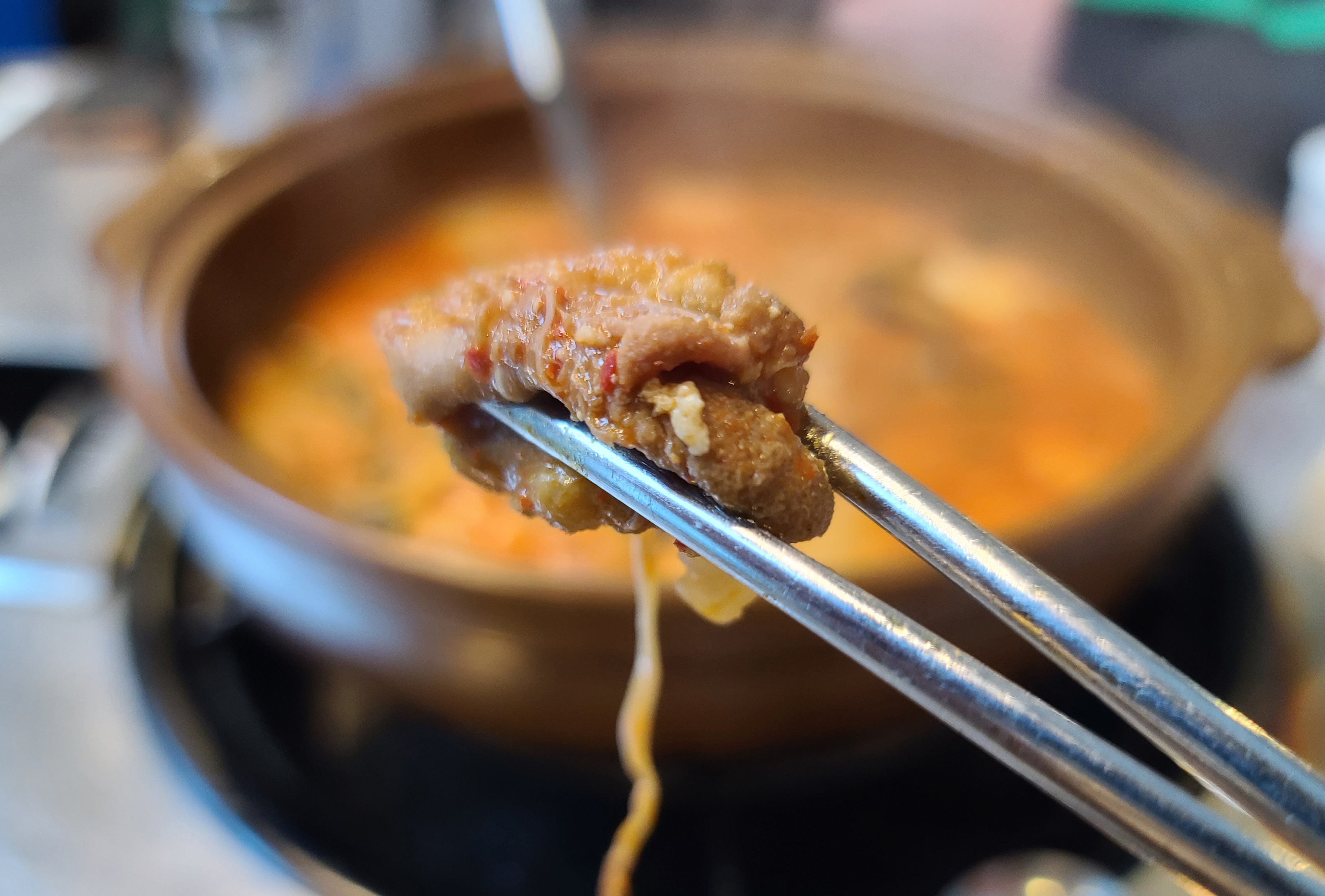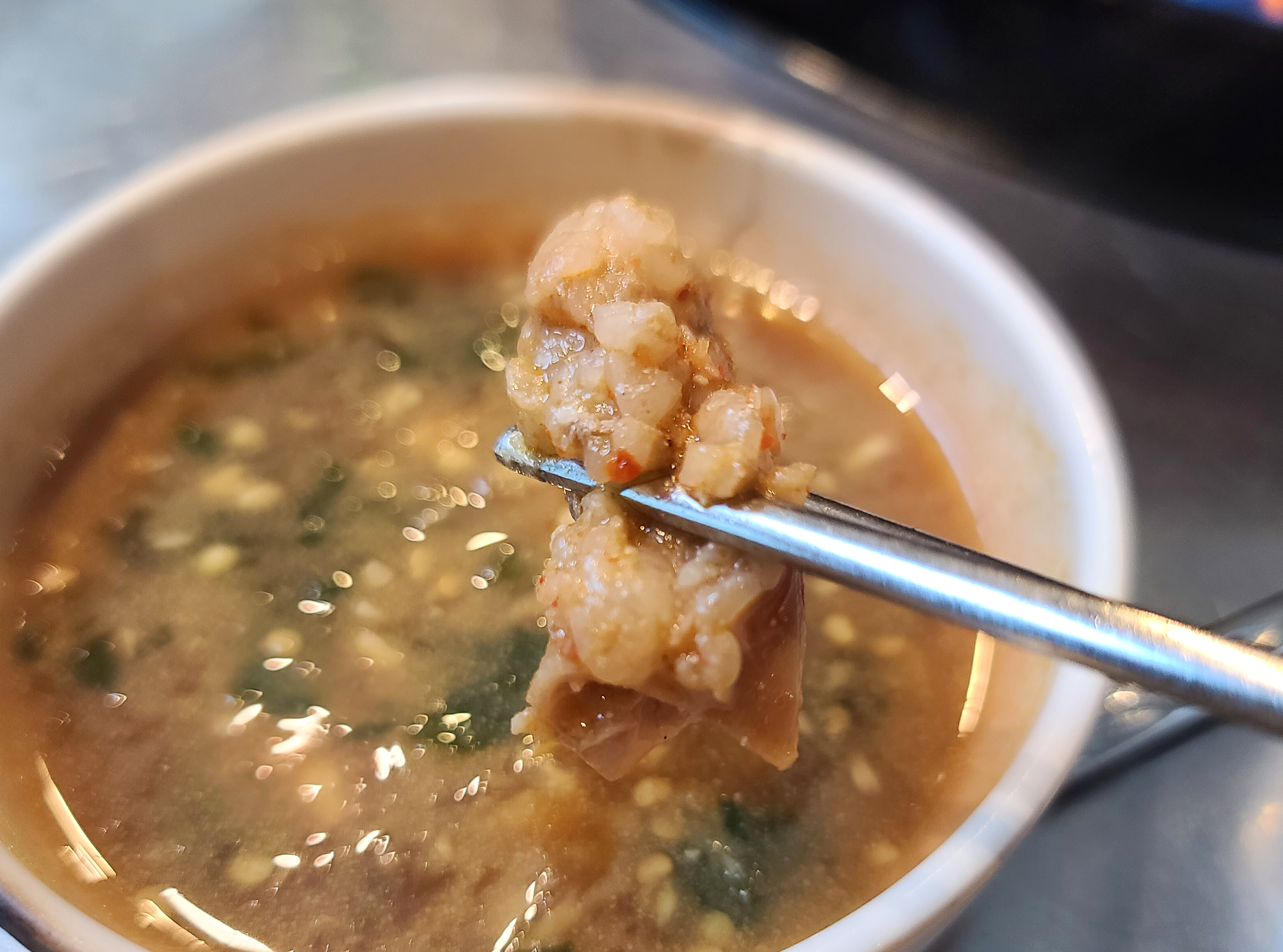 곱창전골은 쫄깃하면서 탱글탱글한 곱이 꽉 찬 곱창과 함께 쫄깃한 양이 많이 들어있었습니다. 2차로 방문해서 배가 그렇게 고픈 편은 아니었는데, 의외로 미미곱창의 곱창이 맛있어서 국물에 계속 손이 가더라고요.