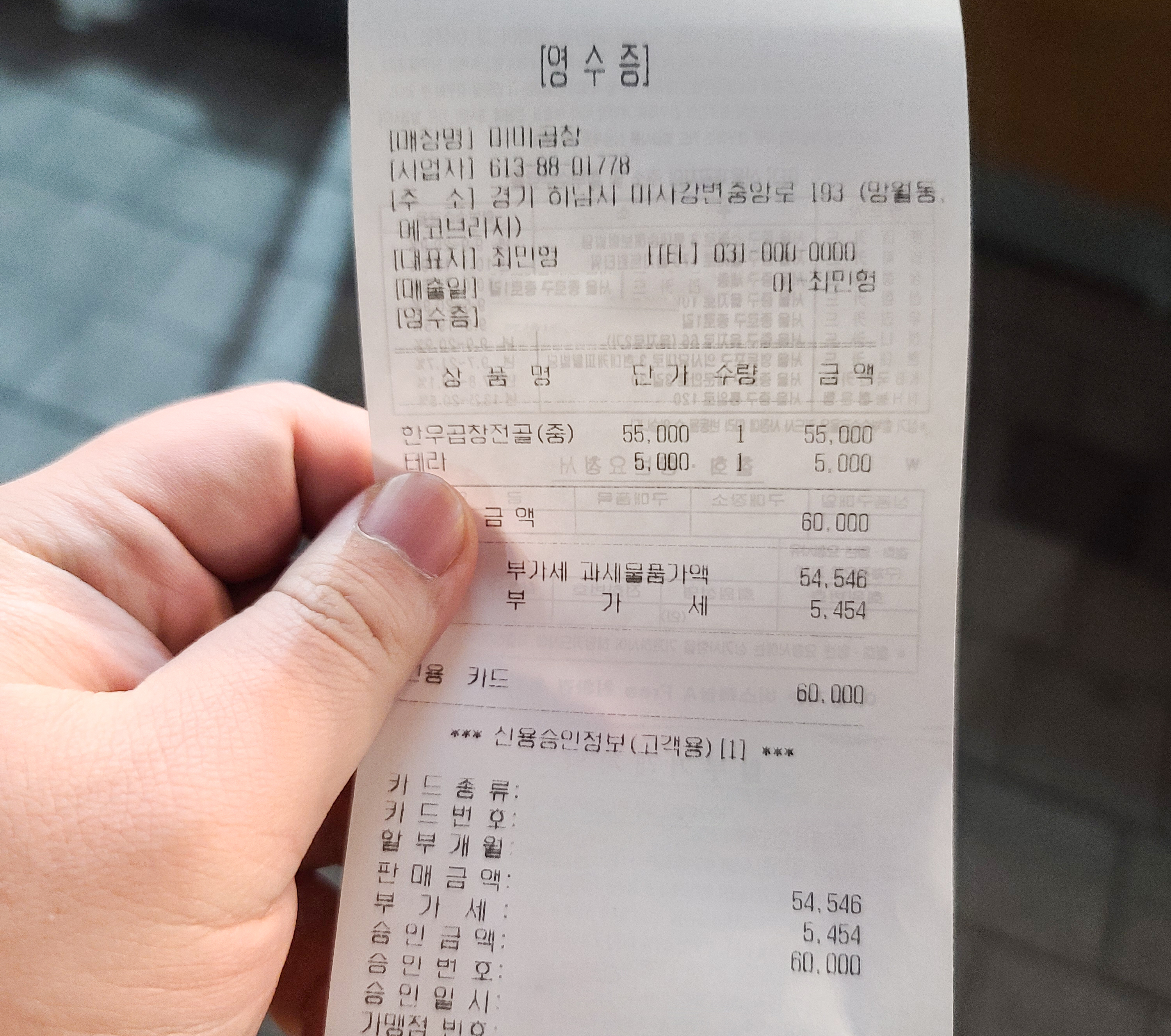 미미곱창의 주소는 하남시 미사강변중앙로 193(망월동 1098), 1층에 위치해 있으며, 가게 안은 식사하는 손님들로 북적였습니다. 원래 이 가게는 대기가 있다고 하는데, 저는 1차로 다른 곳에서 식사를 하고 2차로 방문한 가게여서 9시 영업 마감 시간을 40분 앞두고 방문해서 대기는 없었지만 허겁지겁 식사해야 했습니다.