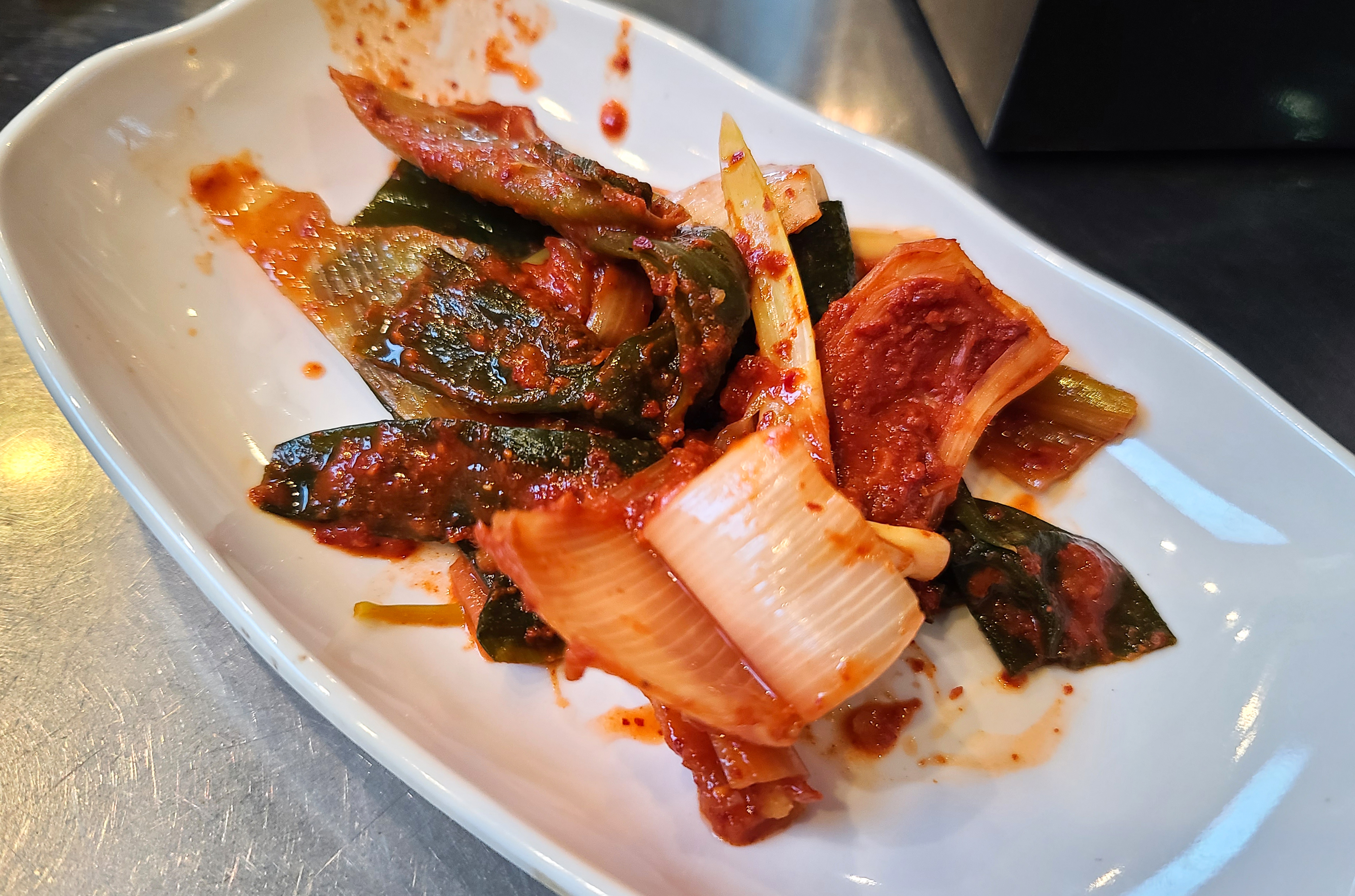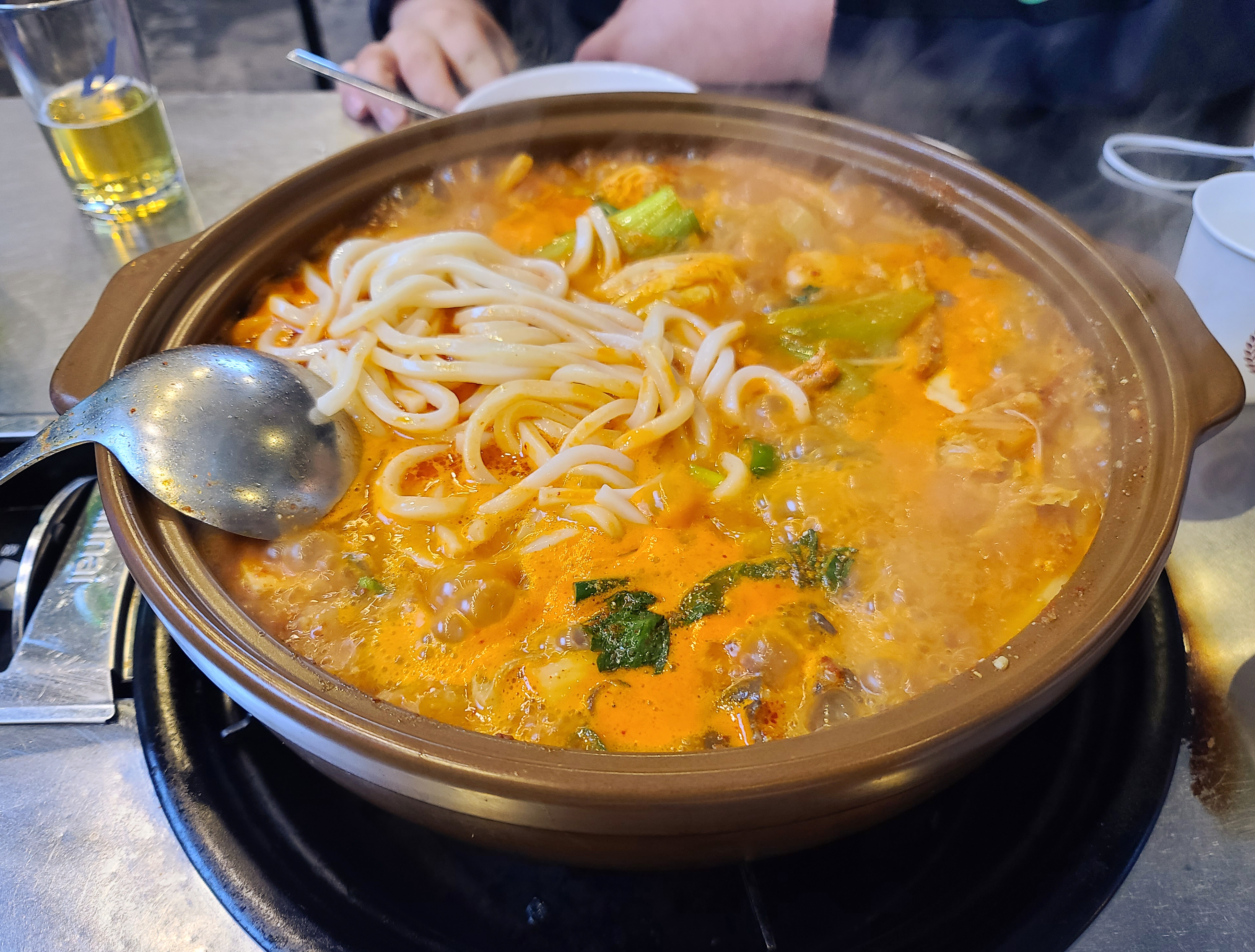 한우곱창전골은 우동면과 파김치, 곱창용 소스가 함께 제공되었습니다. 조리되는데 까지 걸리는 시간이 있어서 실제로 식사하는 시간은 30분 정도 되었습니다. 속절없이 흘러가는 시간 속에 사진도 찍고 먹기도 하랴 정신없었던 것 같습니다.