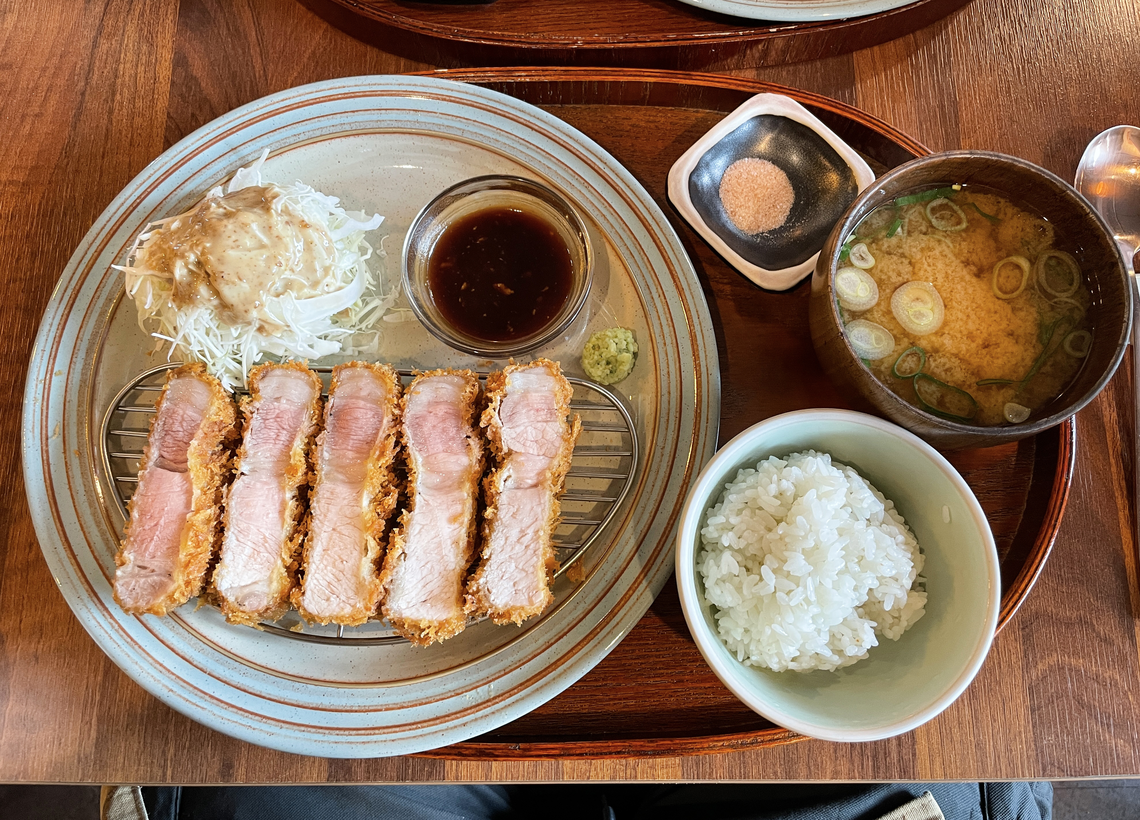 드디어 접하게 된 카츠오도의 상로스카츠입니다. 구성은 이전에 주문한 히레카츠와 비슷했고, 샐러드, 밥, 장국은 리필이 가능했습니다. 가게 사장님은 서비스에 친절한 편이었고 리필도 잘해주셨습니다.