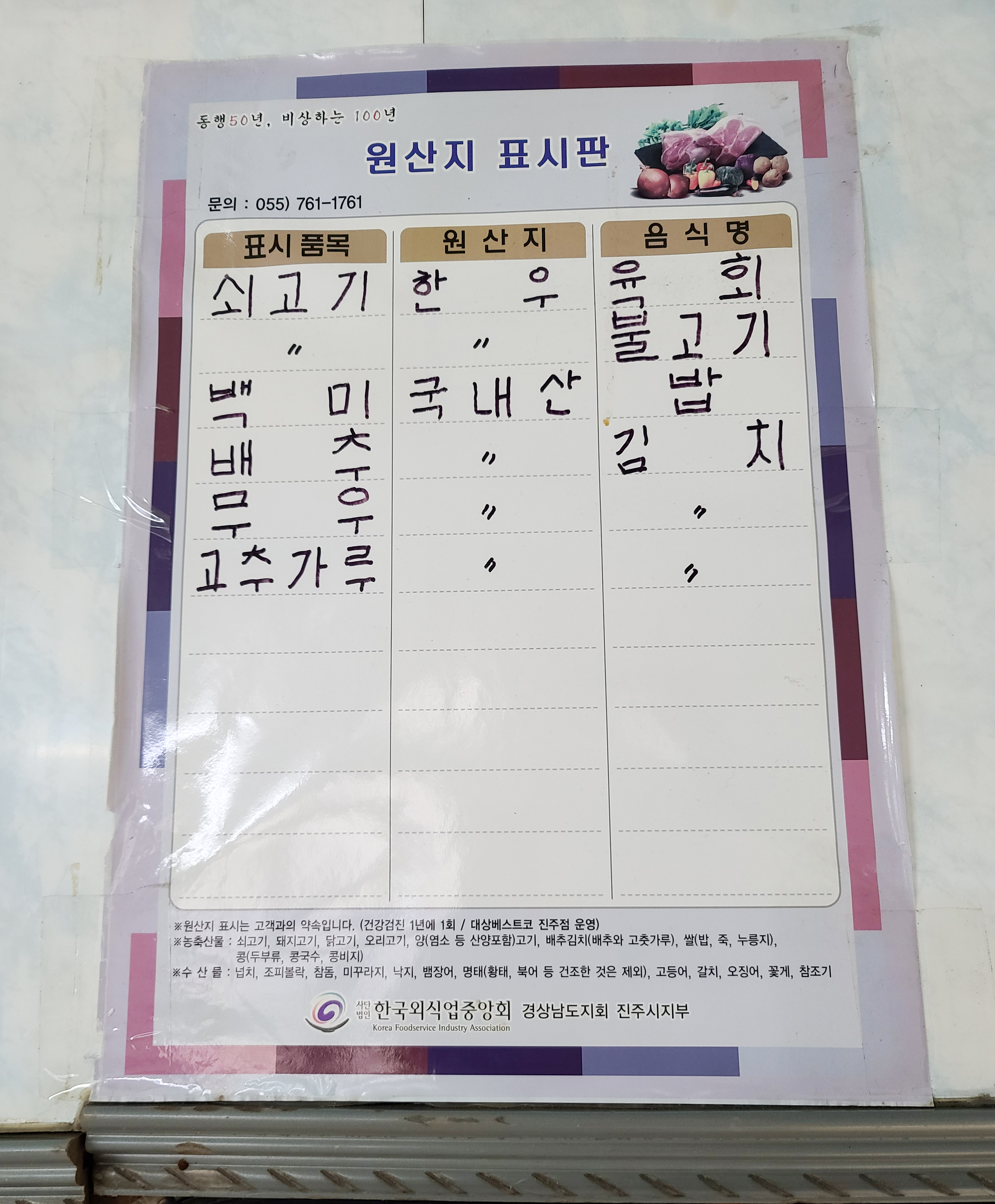 진주 천황식당은 육회비빔밥 전문점으로 1915년부터 현재까지 장사를 해 온 역사와 전통이 있는 가게였습니다. 천황식당은 하늘의 '봉황'이라는 뜻이라고 하는데, 예전에는 냉면, 정식 등 다양한 메뉴를 판매하다가 현재는 단일 메뉴를 판매하고 있다고 합니다.