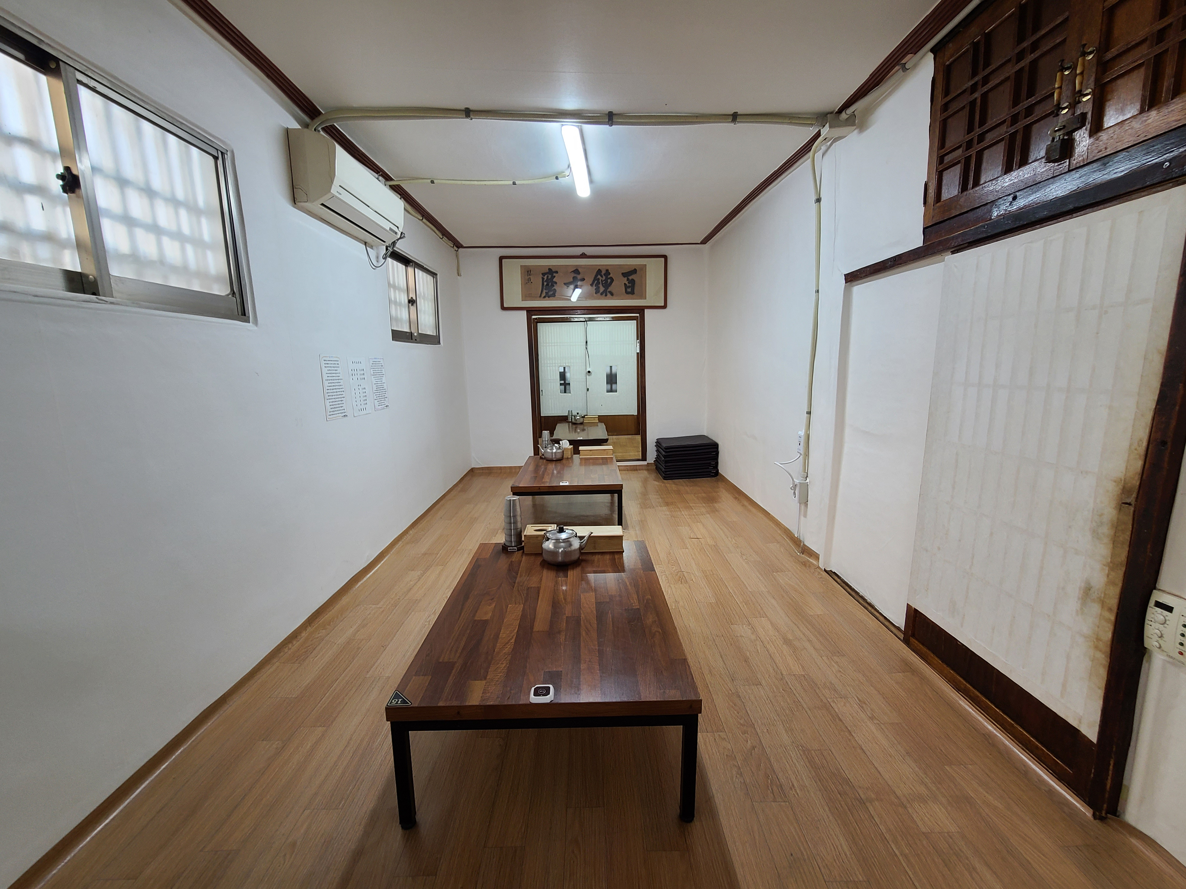 천황식당의 모습입니다. 오래된 한옥으로 된 실내에는 조그마한 테이블과 오래된 가게 집기류들이 보였고, 주방은 내부가 보이는 투명한 창으로 되어있었습니다. 저희는 별채에서 식사를 하였습니다.