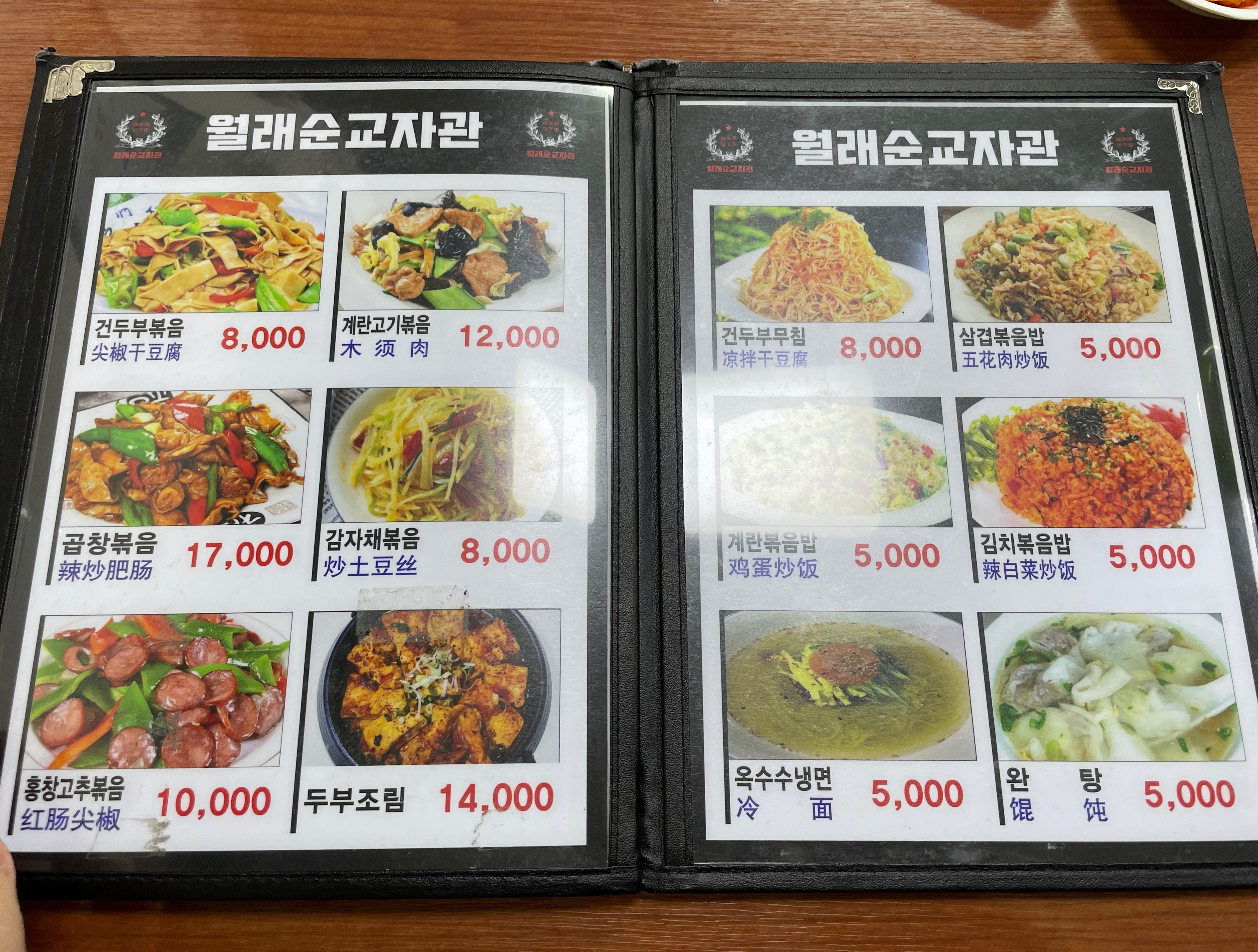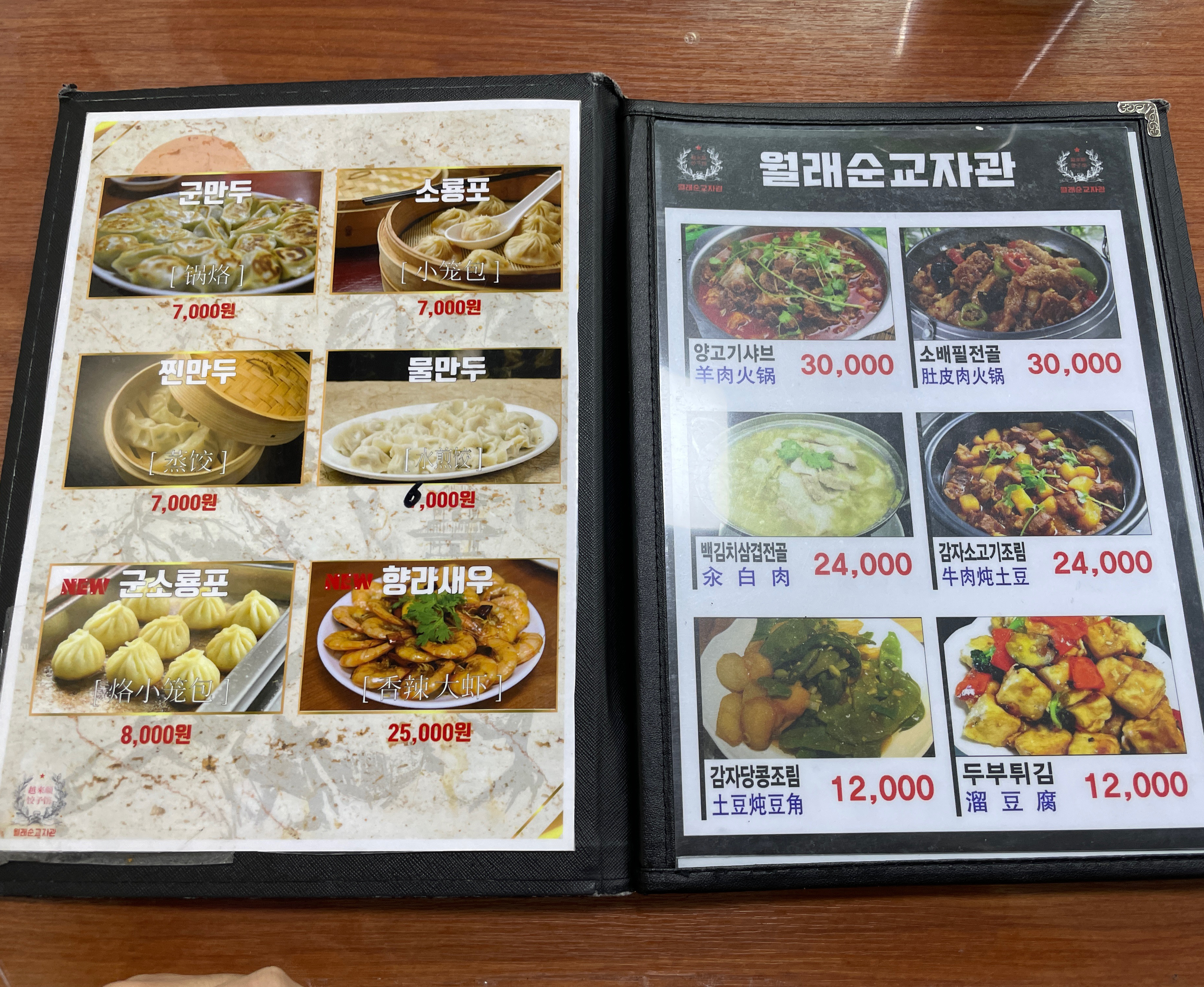 월래순교자관의 메뉴를 함께 살펴보시죠. 구로 월래순교자관의 메뉴는 군만두, 소룡포, 찐만두, 물만두, 군소룡포, 향라새우, 양고기샤브, 소배필전골, 백김치삼겹전골, 감자소고기조림, 감자땅콩조림, 두부튀김, 철판명란, 철판오징어, 철판소배필, 꿔보러우, 고기완자, 라조기, 대파양고기, 즈란양고기, 즈란소배필, 향라육슬, 어향육슬, 고추잡채, 어향가지, 가지튀김볶음, 된장가지볶음, 부추계란볶음, 토마토계란볶음, 피망고기볶음, 지삼선, 마파두부, 감자채무침, 오이무침, 돼지귀오이무침, 오향건두부, 건두부볶음, 계란고기볶음, 곱창볶음, 감자채볶음, 홍창고추볶음, 두부조림, 건두부무침, 삼겹볶음밥, 계란볶음밥, 김치볶음밥, 옥수수냉면, 완탕 등 이 있었습니다.