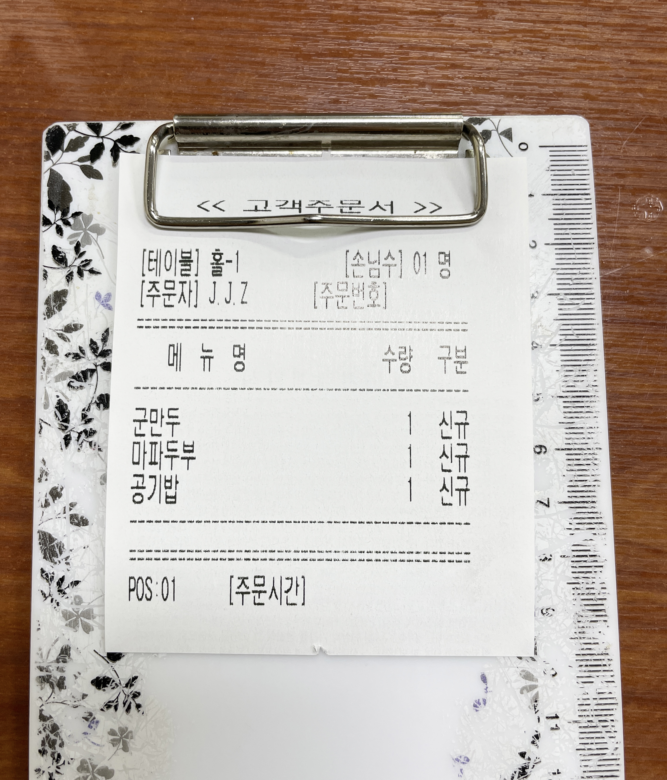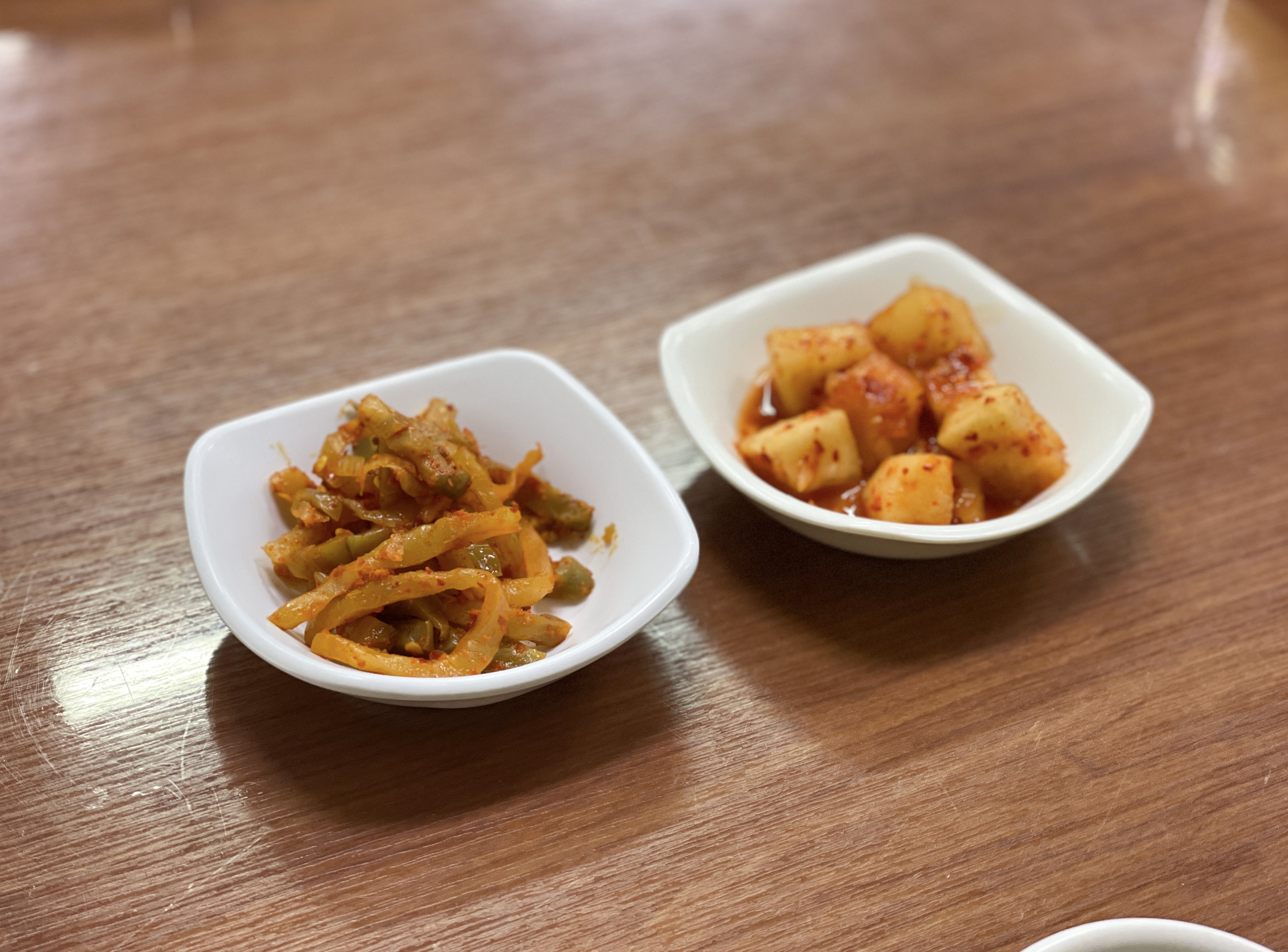 저는 군만두와 마파두부, 공기밥을 주문했습니다. 테이블에는 흑식초와 마늘, 간장 등이 놓여있어 기호에 맞게 소스를 제조하여 먹을 수 있도록 되어있었습니다. 기본 반찬은 '자차이'와 '깍두기'가 있었습니다.