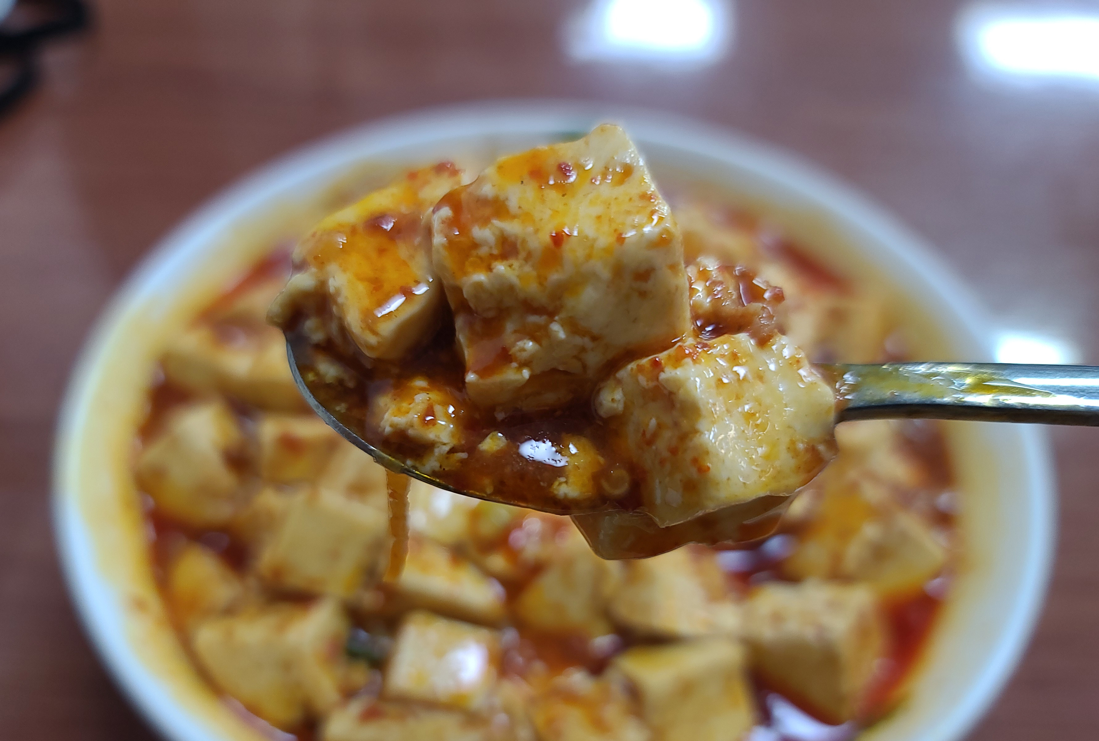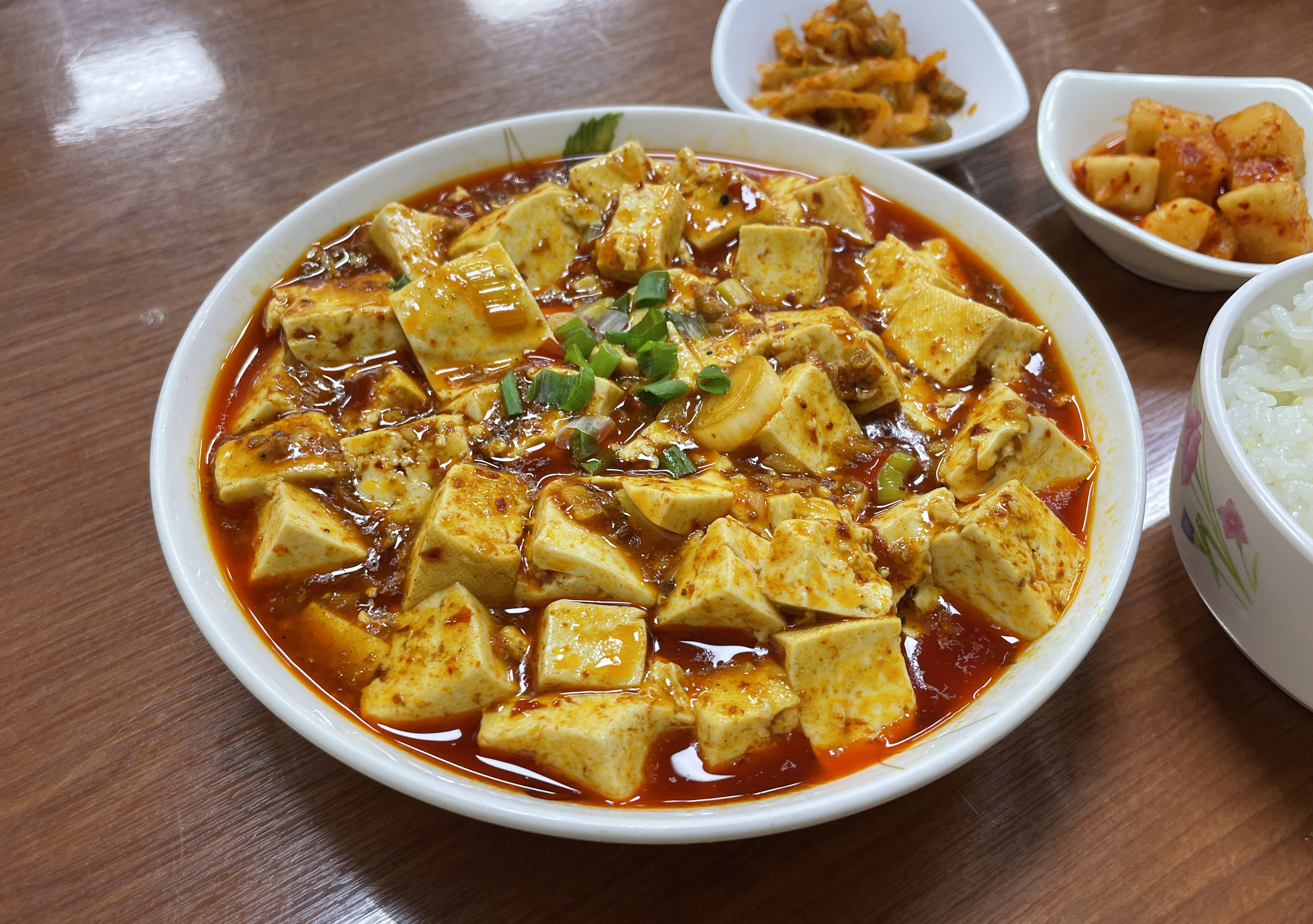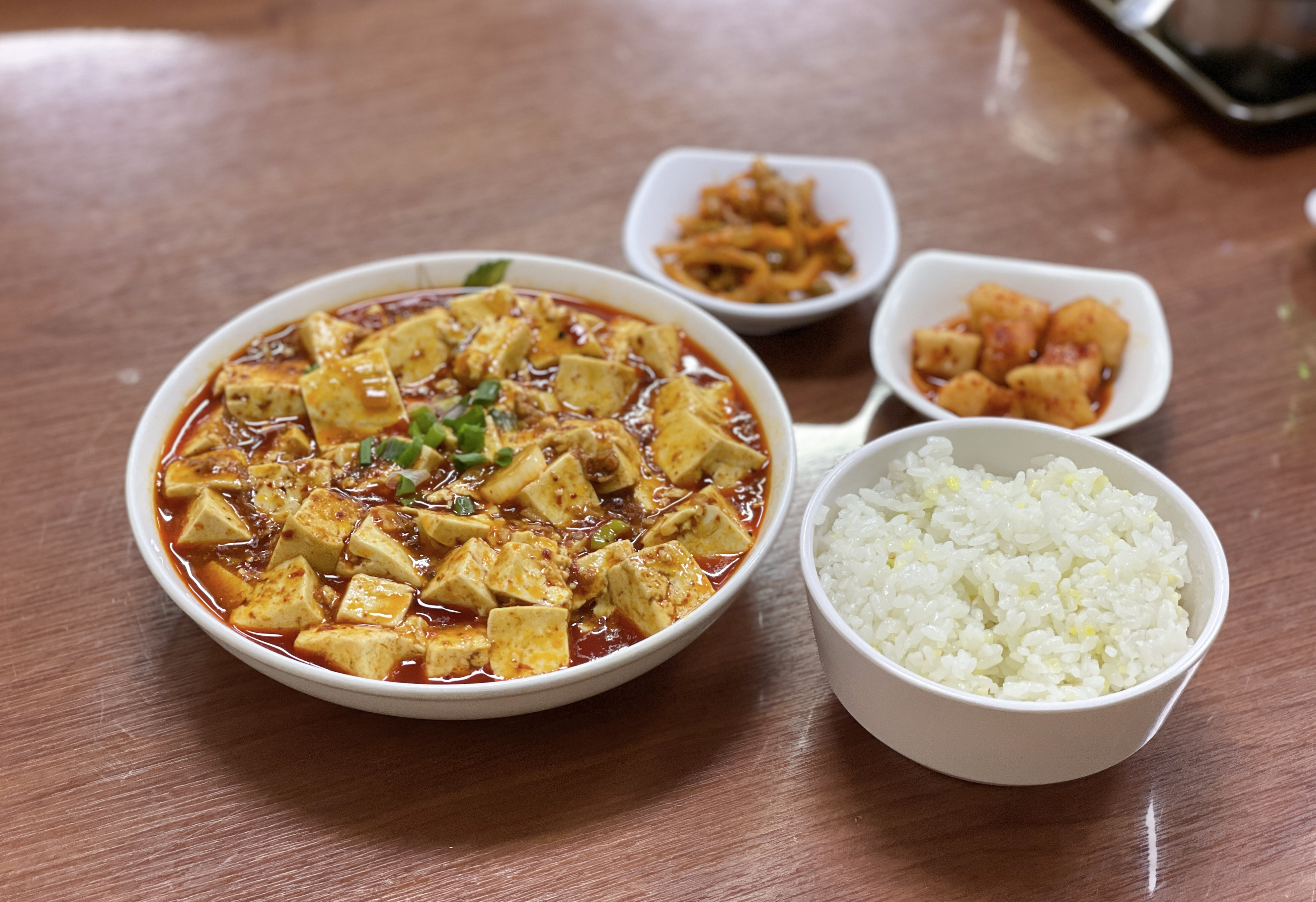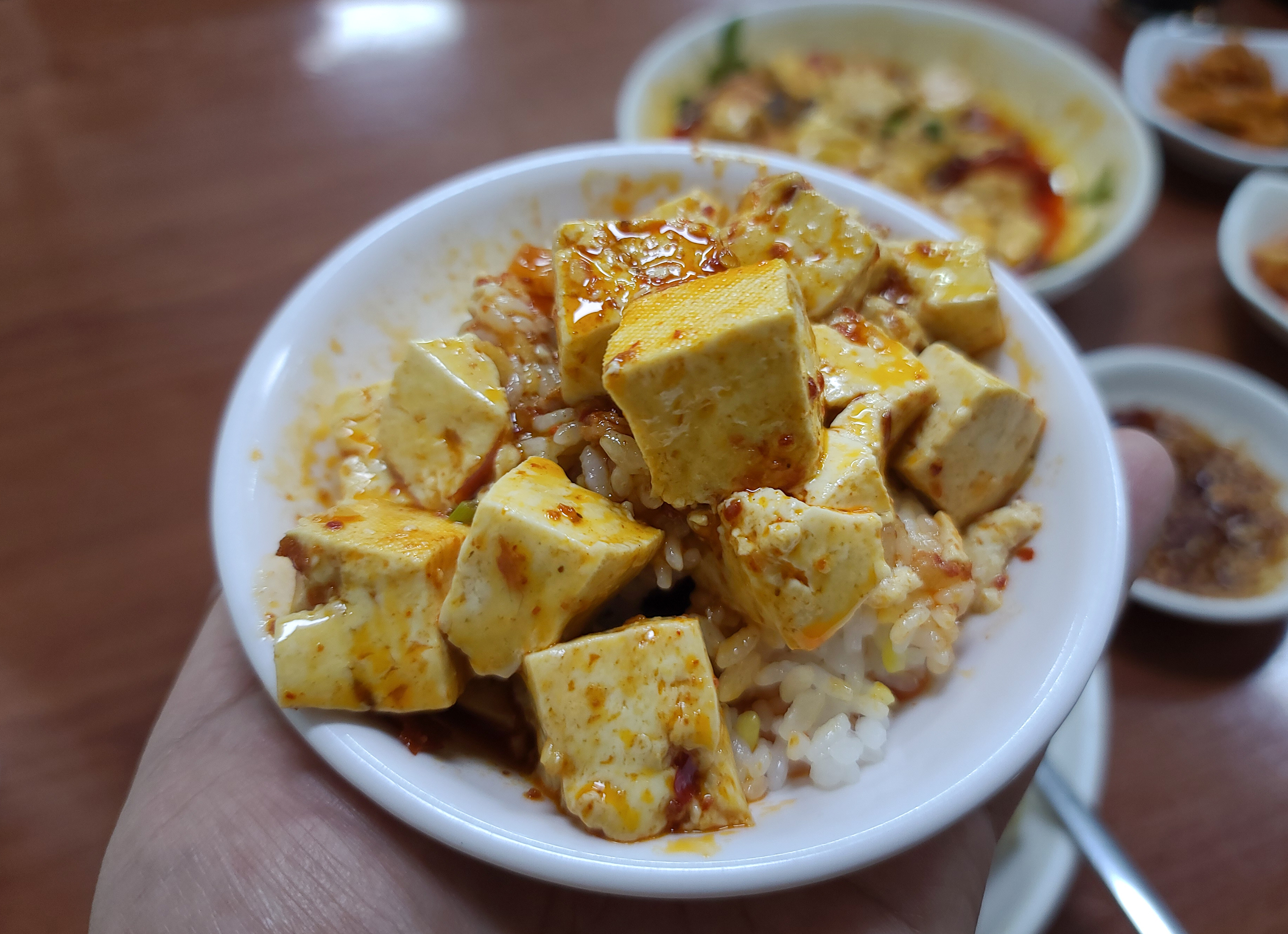 곧이어 제가 주문한 마파두부가 나왔습니다. 마파두부는 고추기름에 매콤하게 볶아내어 맛이 좋았는데, 밥이랑 비벼먹으니 정말 맛있더라고요. 마파두부의 양은 1.5인분 정도 되는 것 같았고, 공기밥은 별도로 주문하도록 되어있어 2인 1메뉴로 주문해도 괜찮을 것 같더라고요. 저는 여기에 군만두까지 주문했는데, 옆 테이블을 보니 군만두 양도 꽤 많이 나오더라고요.