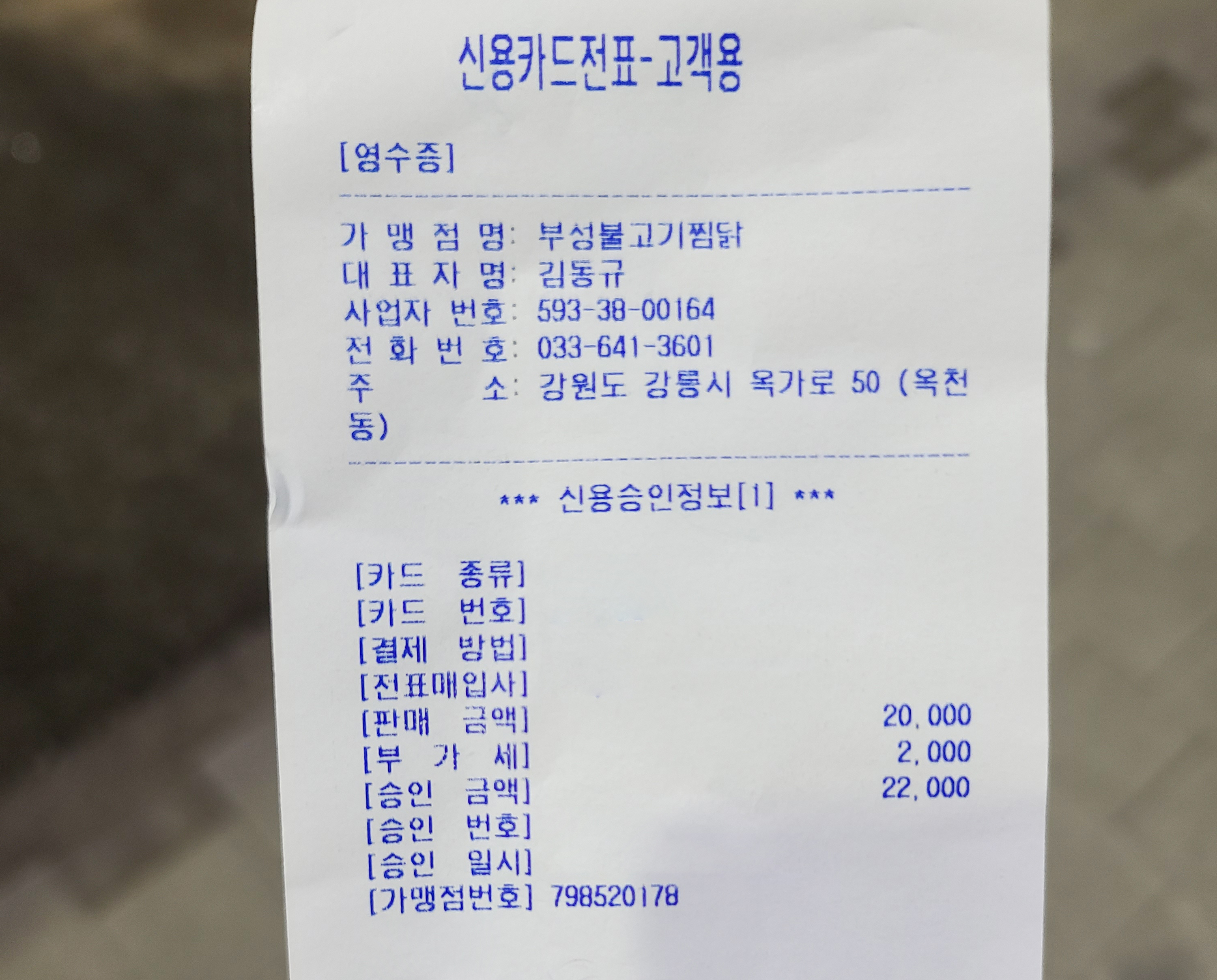 강릉 부성불고기찜닭은 강원도 강릉시 옥천동 219-11 에 위치해 있으며, 가게 앞 노면이나 가에 옆면에 주차가 가능했습니다. 이곳은 강릉 여행 중 가볼 만한 곳으로 추천드리는 가게로 인근 주민들도 애용하고, 여행하는 분들도 찾는 맛집인 것 같더라고요.