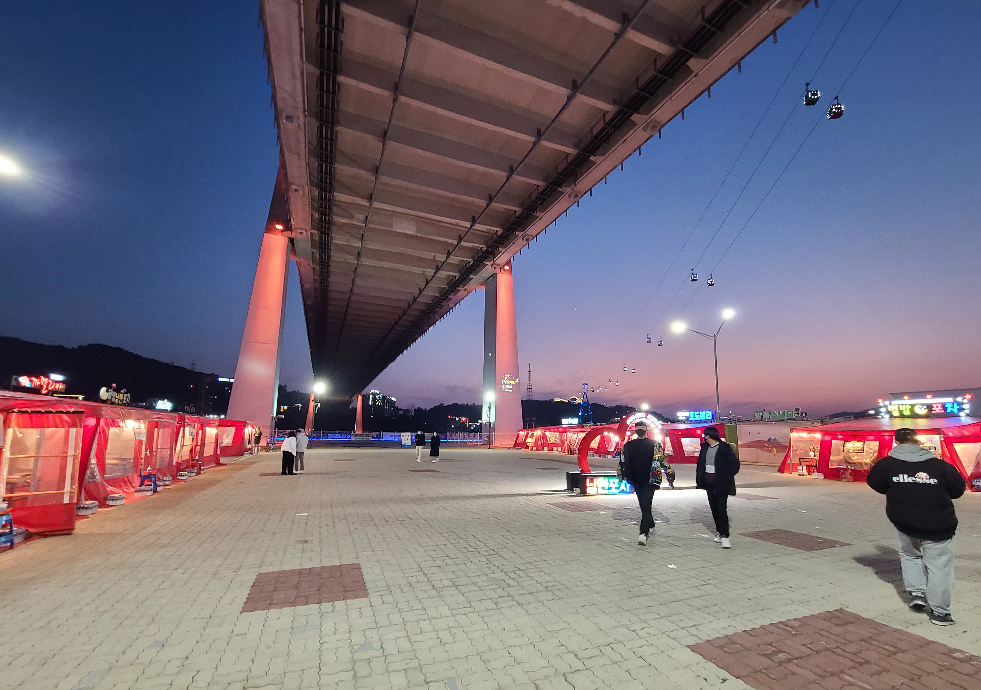 여수 가볼 만한 곳으로 손꼽히는 낭만포차거리로 가는 길은 해산물을 재료로 음식을 판매하는 개성 넘치는 식당과 포차들이 많았습니다. 여수낭만포차거리는 여수 거북선대교(제2돌산대교)라고 불리는 무지갯빛 사장교 다리 밑에 위치한 포차 거리였습니다.