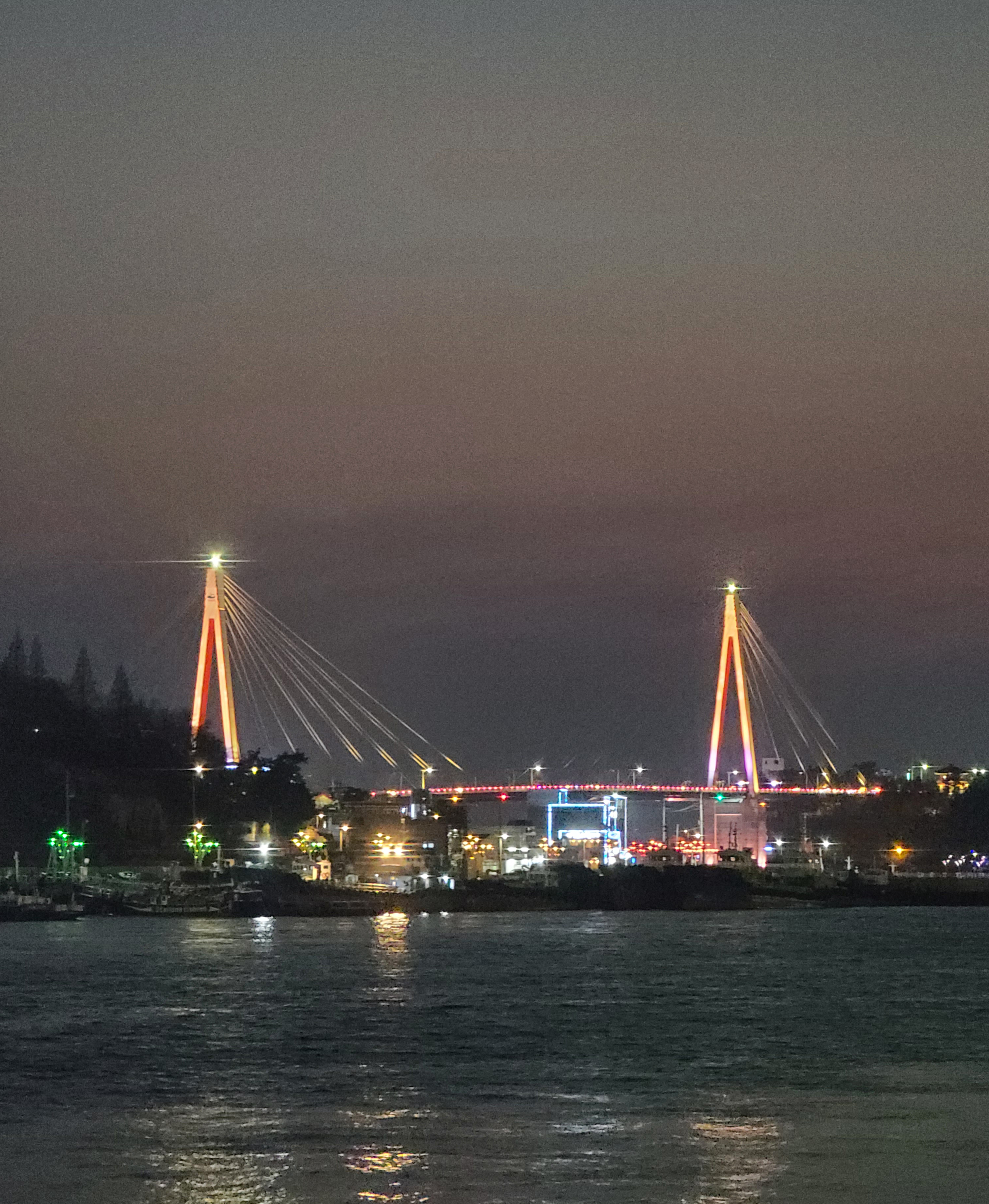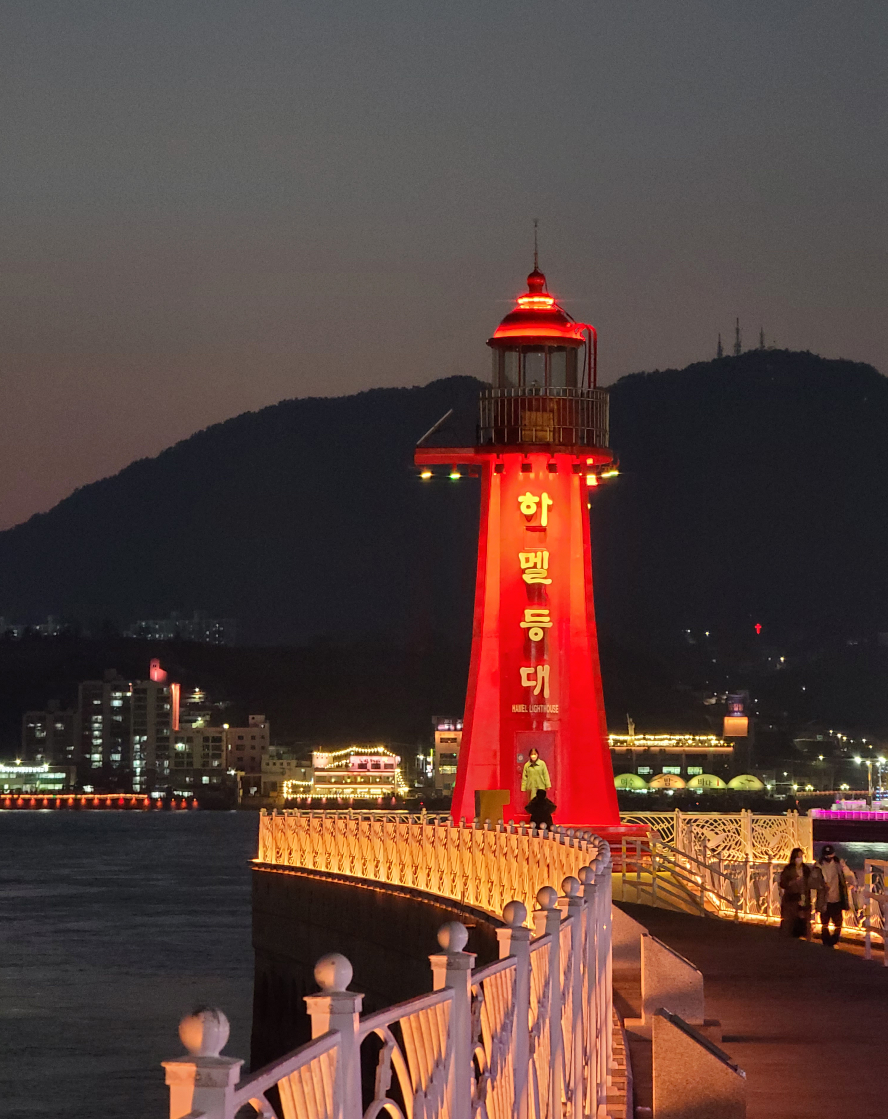 여수낭만포차거리 옆으로 하멜등대도 있더라고요. 밤에 조명이 비치니 더 멋진 것 같더라고요. 하멜등대 방향으로 가는 길목에 위치한 조명도 좋았고, 여수 해상 케이블카를 비롯해 거북선대교의 조명도 아름다웠습니다. 하지만 사진에 보이는 게 전부였습니다. 여수의 뭔가 특별한 풍경을 기대했는데 생각보다 볼거리가 많지 않더라고요.