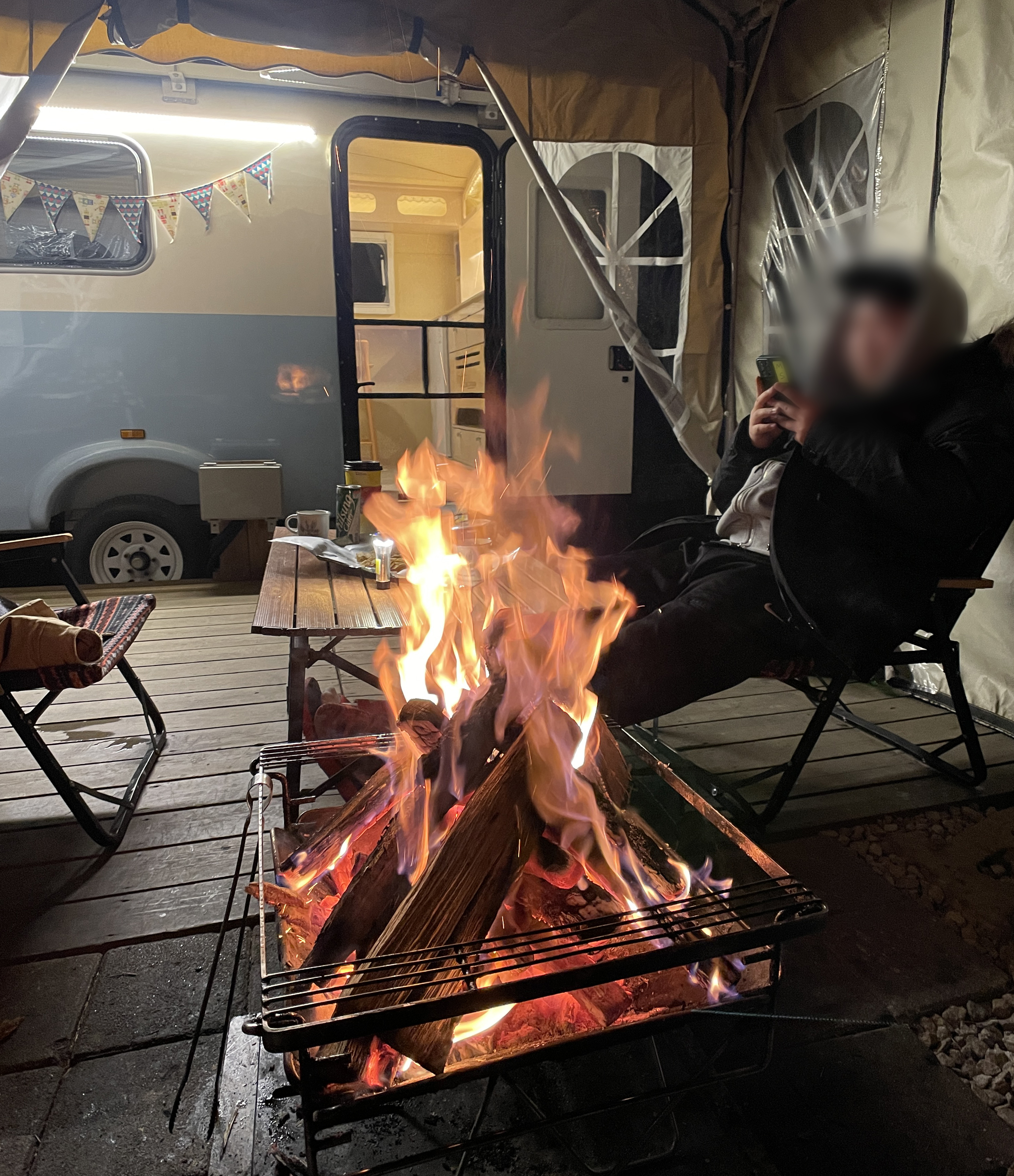식사를 마친 뒤 장작을 태워 캠핑의 화룡점정 '불멍'을 때려줍니다. 장작이 잘 말라서 불이 잘 타오르더라고요. 정말 오랜만에 캠핑을 했는데 너무 좋은 경험이었습니다.