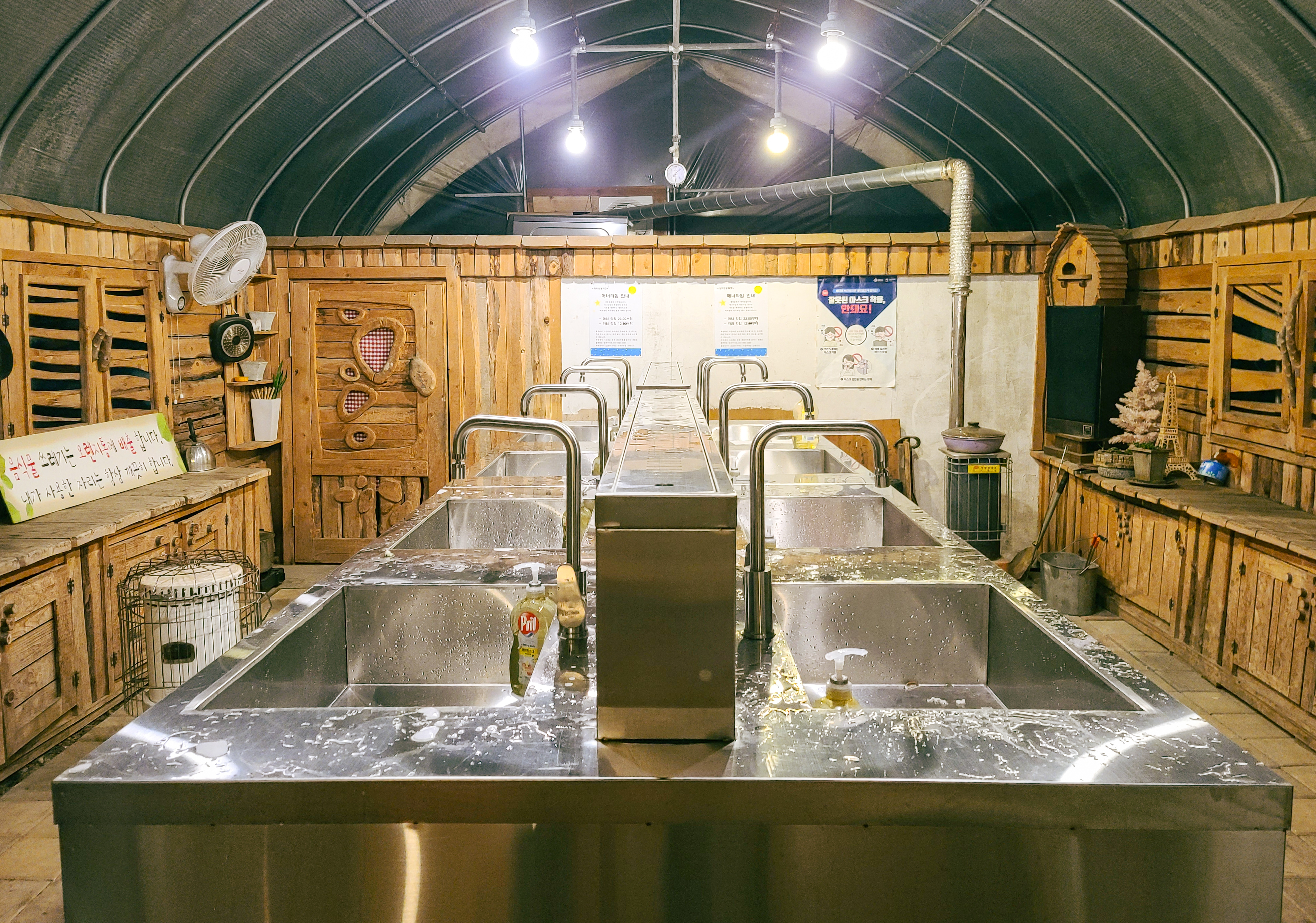 강화캠핑파크 카라반과 글램핑장에는 별도의 수도시설이 되어있지 않아서, 공용 개수대와 화장실을 이용해야 했습니다. 이게 조금 불편하지만 시설이 깔끔하고 따뜻한 물도 잘 나와서 좋았습니다.