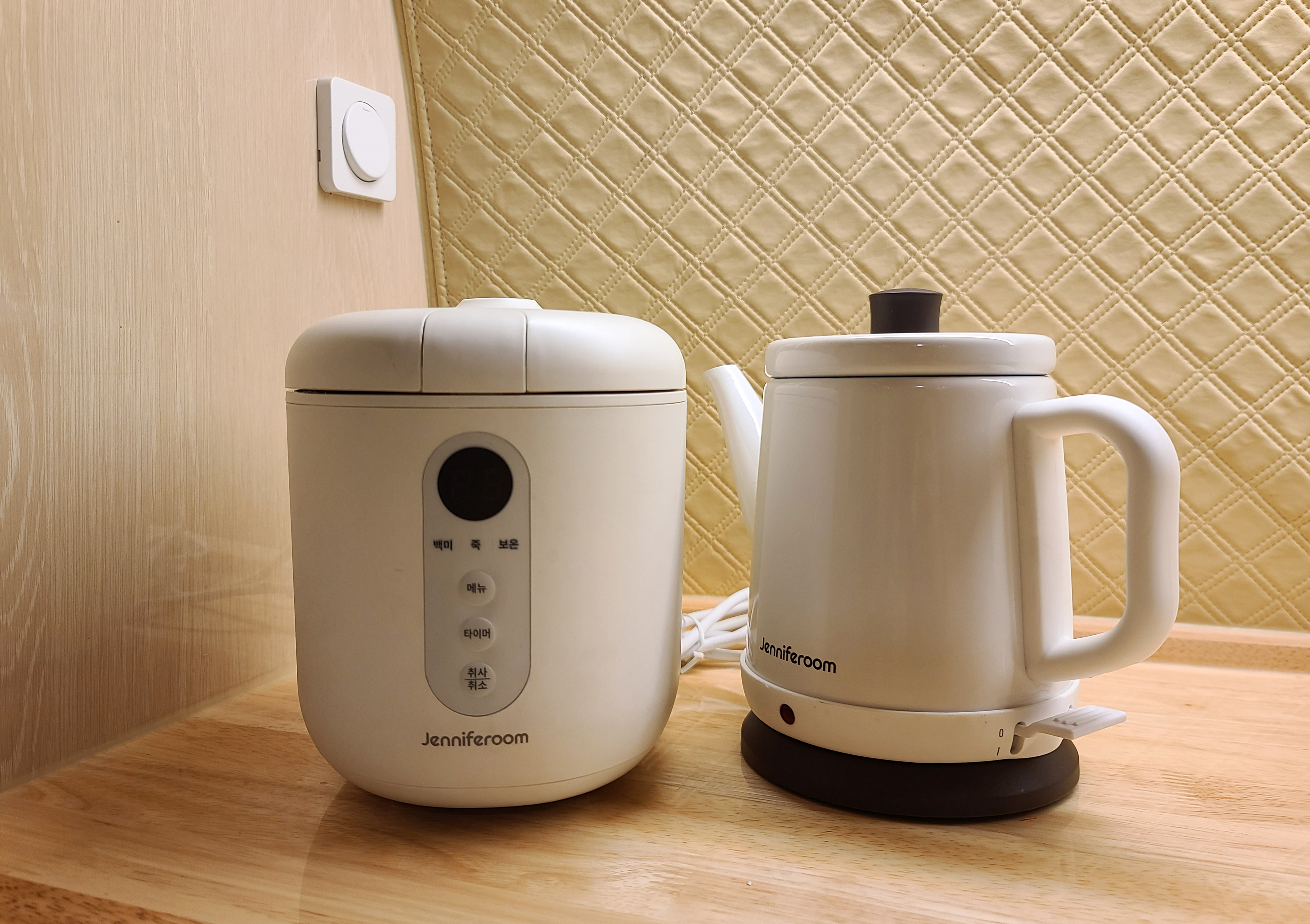 사실 저는 카라반 캠핑을 해보고 싶었는데, 이번에 사장님께서 특별히 빈 카라반이 있다고 해서 카라반으로 이용해볼 수 있었습니다. 카라반 역시 인디언 텐트처럼 앞에 테이블과 의자, 화로대와 간단한 조리시설이 갖춰져 있었습니다. 카라반 내에는 소형 냉장고와 냉・온풍기, 밥솥, 커피포트 그리고 수건과 칫솔 등이 구비되어 있었습니다. 침대는 큰 것은 아니지만 2인이 사용할 수 있는 사이즈였습니다.