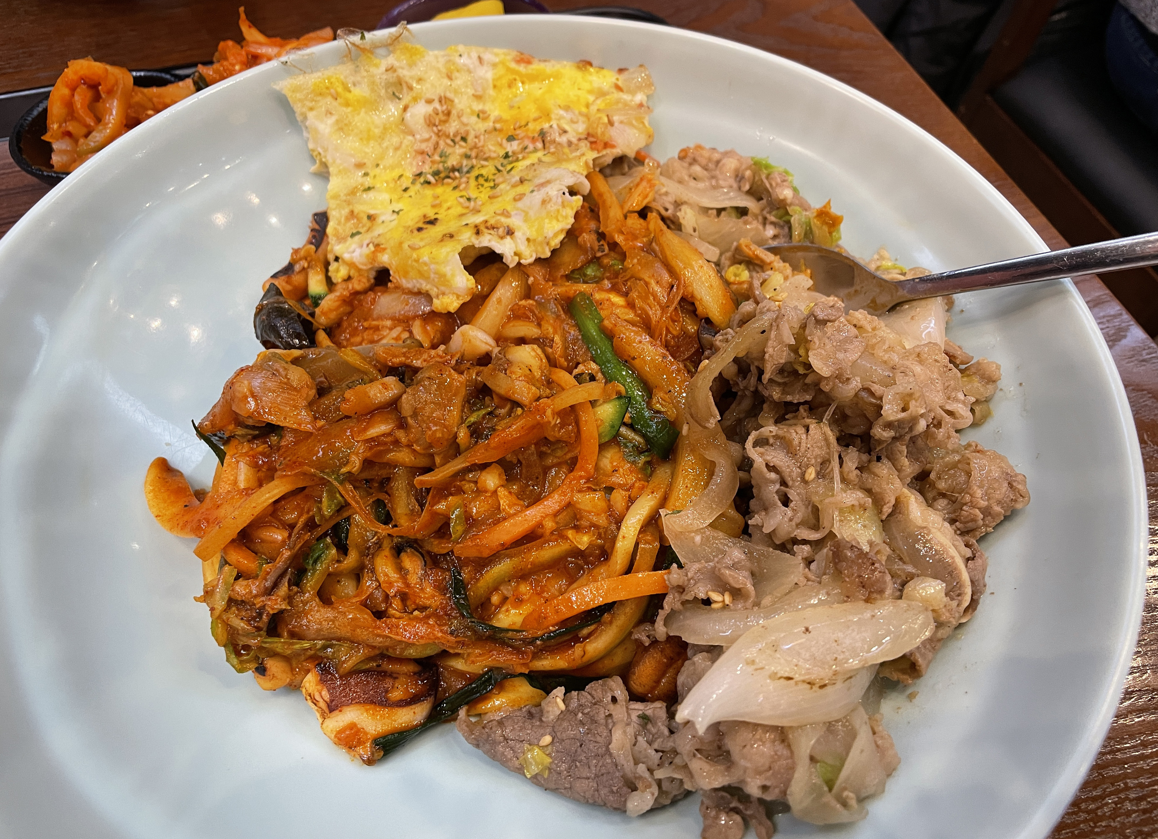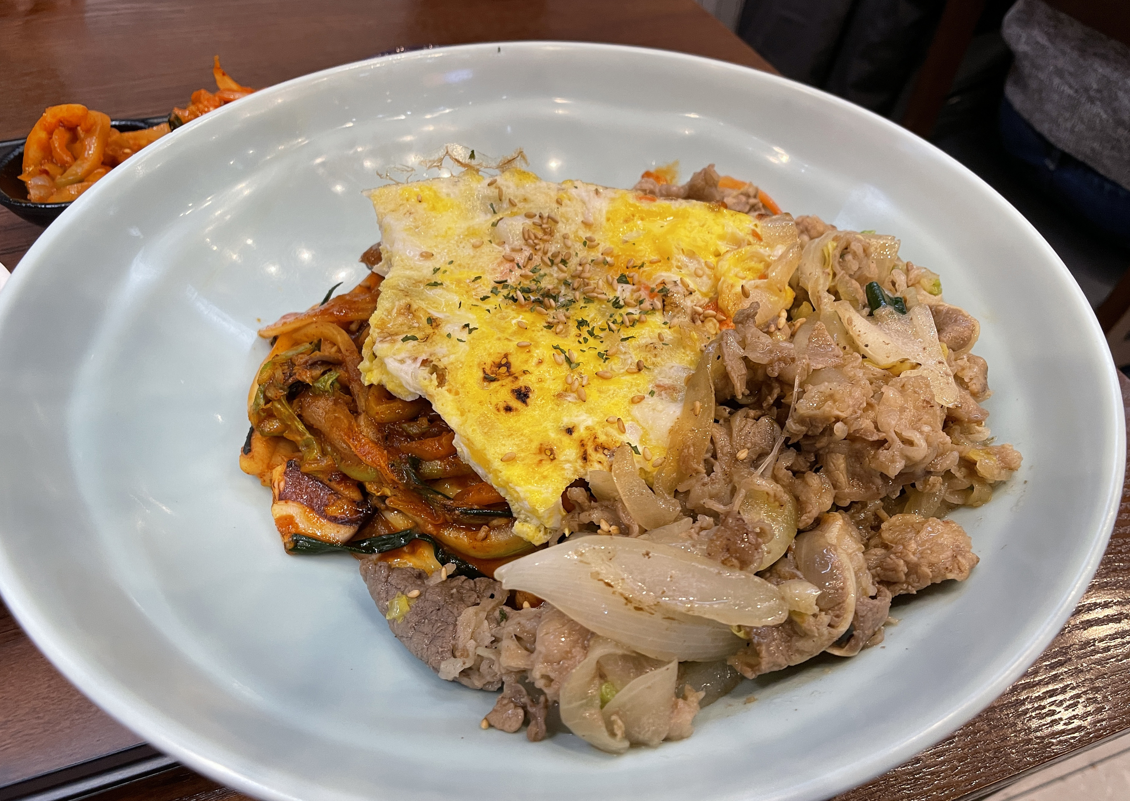 반찬은 원하는 만큼 셀프코너에서 직접 덜어오면 되었고, 마차이 고기중화비빔밥은 계란탕과 함께 제공되었습니다. 고기중화비빔밥은 12,000원 짜리 메뉴답게 양이 꽤 많아 보이더라고요.