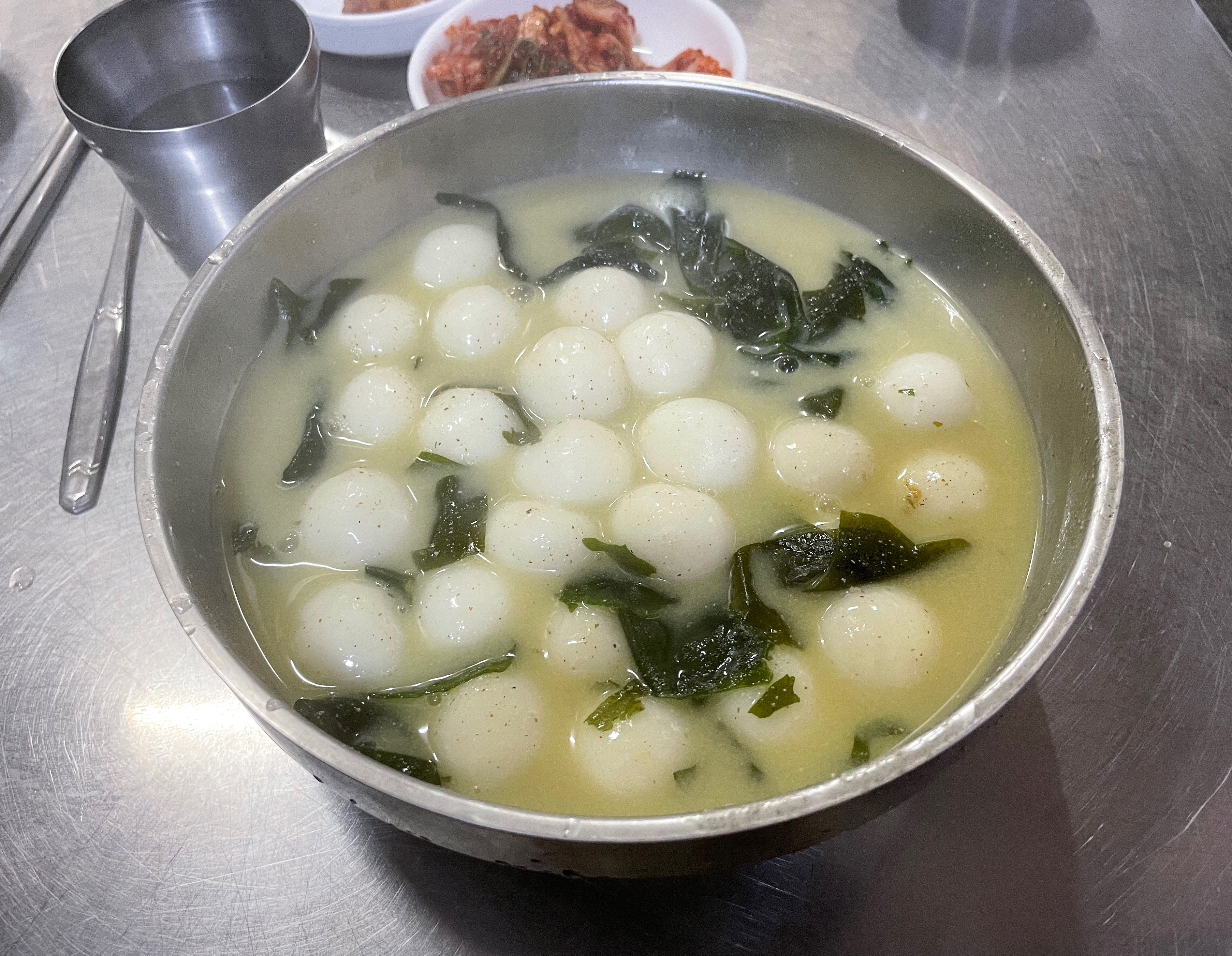 제가 먹은 서문시장의 찹쌀수제비는 들깨미역국에 옹심이가 들어간 메뉴였고, 찹쌀 옹심이는 뜨거웠지만 쫀득쫀득 마쉬멜로우 같은 식감이 재밌더라고요. 양도 제법 있어서 은근히 배불리 먹었고요.