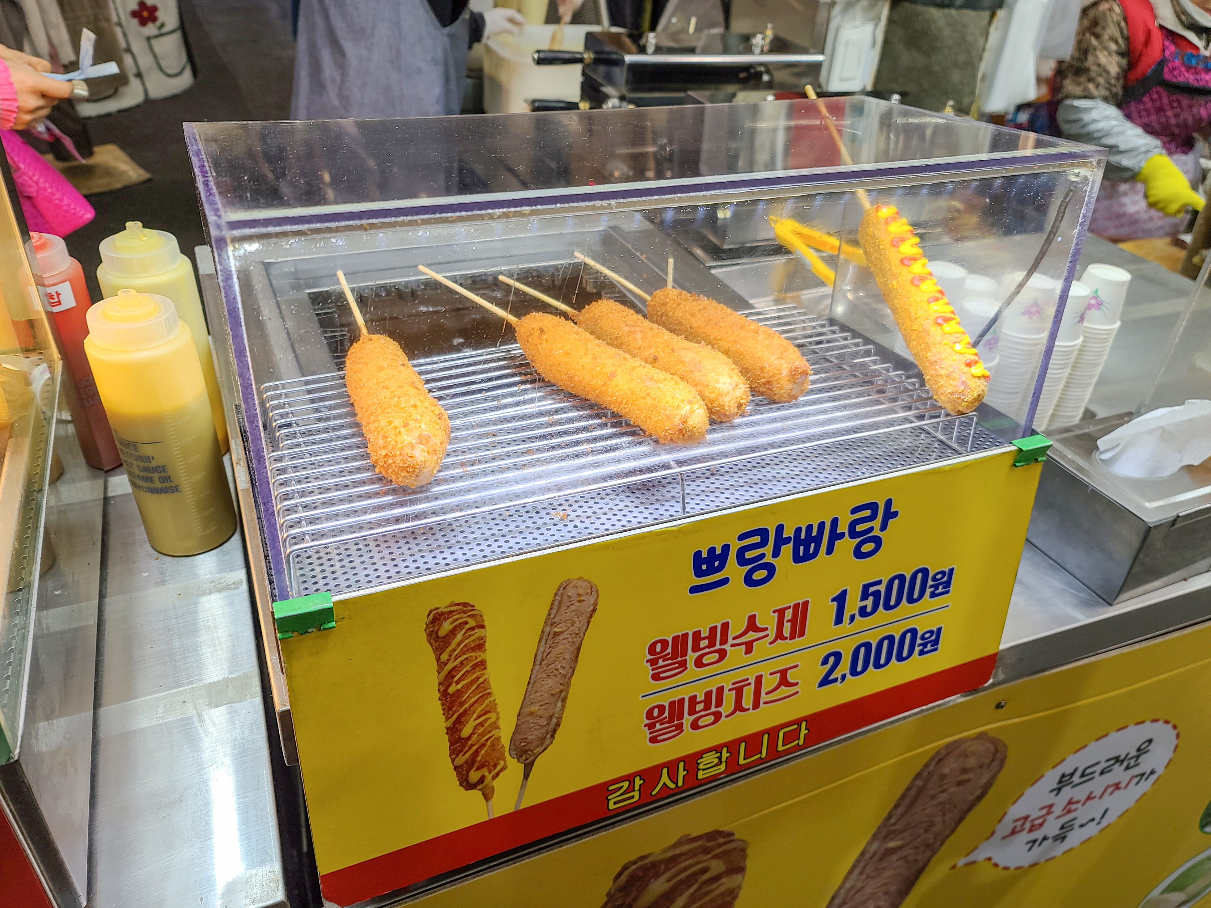 수제핫도그 가격은 치즈가 들어있는 메뉴로 2,000원이었는데 손에 케첩과 머스타드가 흐르지 않도록 소주컵까지 받쳐서 주는 게 센스가 넘치더라고요. 핫도그 반죽도 맛있었고, 속에 들어있는 치즈와 소시지도 꽤 커서 가격대비 괜찮은 간식이었습니다. 원래는 돈까스버거(?)를 도전해보고 싶었는데 이 날은 판매하지 않는다고 들어서 다른 간식들로 배를 채웠죠. 서문시장을 더 둘러보고 싶었는데 이 날 일정이 있어서 더 돌아보지는 않고 집으로 돌아왔습니다.