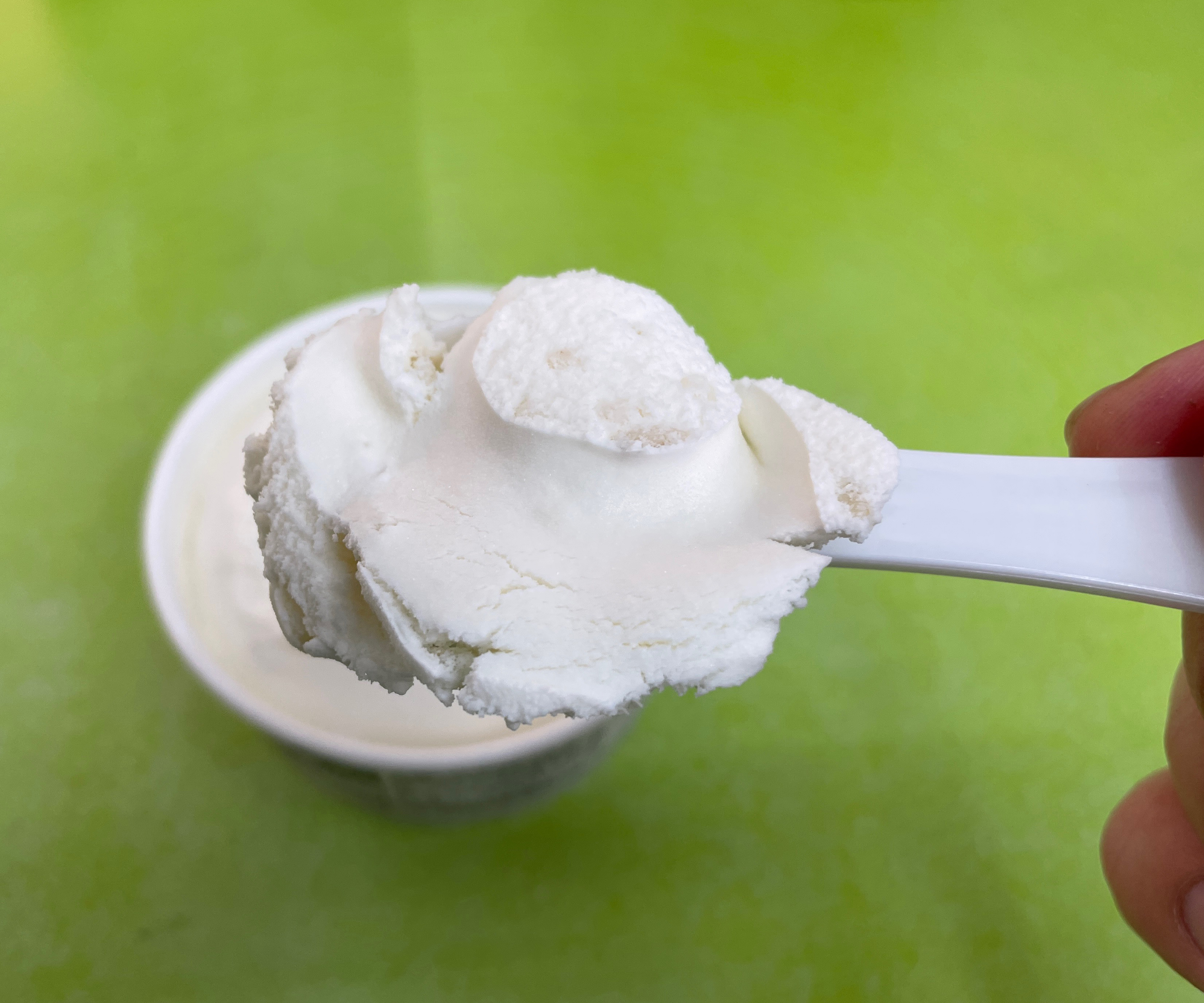 흰쌀밥 라이스크림은 우유맛의 아이스크림이었습니다. 흑미밥라이스크림과 동일하게 아이스크림 사이사이 쌀알이 들어있어 씹는 식감이 있었습니다. 중간에 들어있는 쌀은 우리가 흔히 아는 밥을 먹는 느낌이라기 보다는 덜 익은 밥을 먹는 느낌이었습니다.