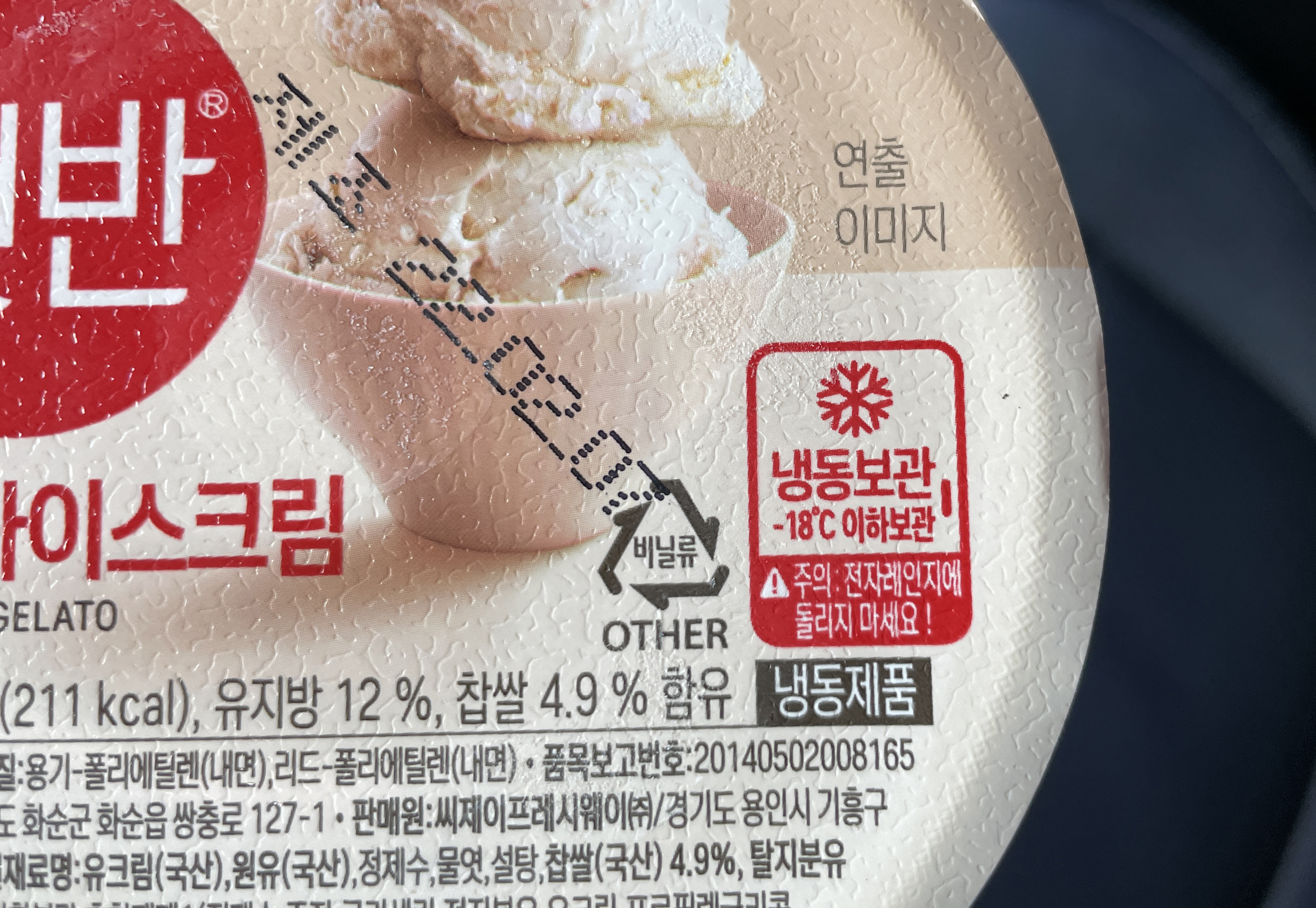 실제 햇반의 디자인과 유사한 패키지에 자세히 살펴보니 주의사항으로 "전자레인지에 돌리지 말라"는 문구가 보이더라고요. 그럼 가장 궁금한 아이스크림 내부를 살펴보실까요?