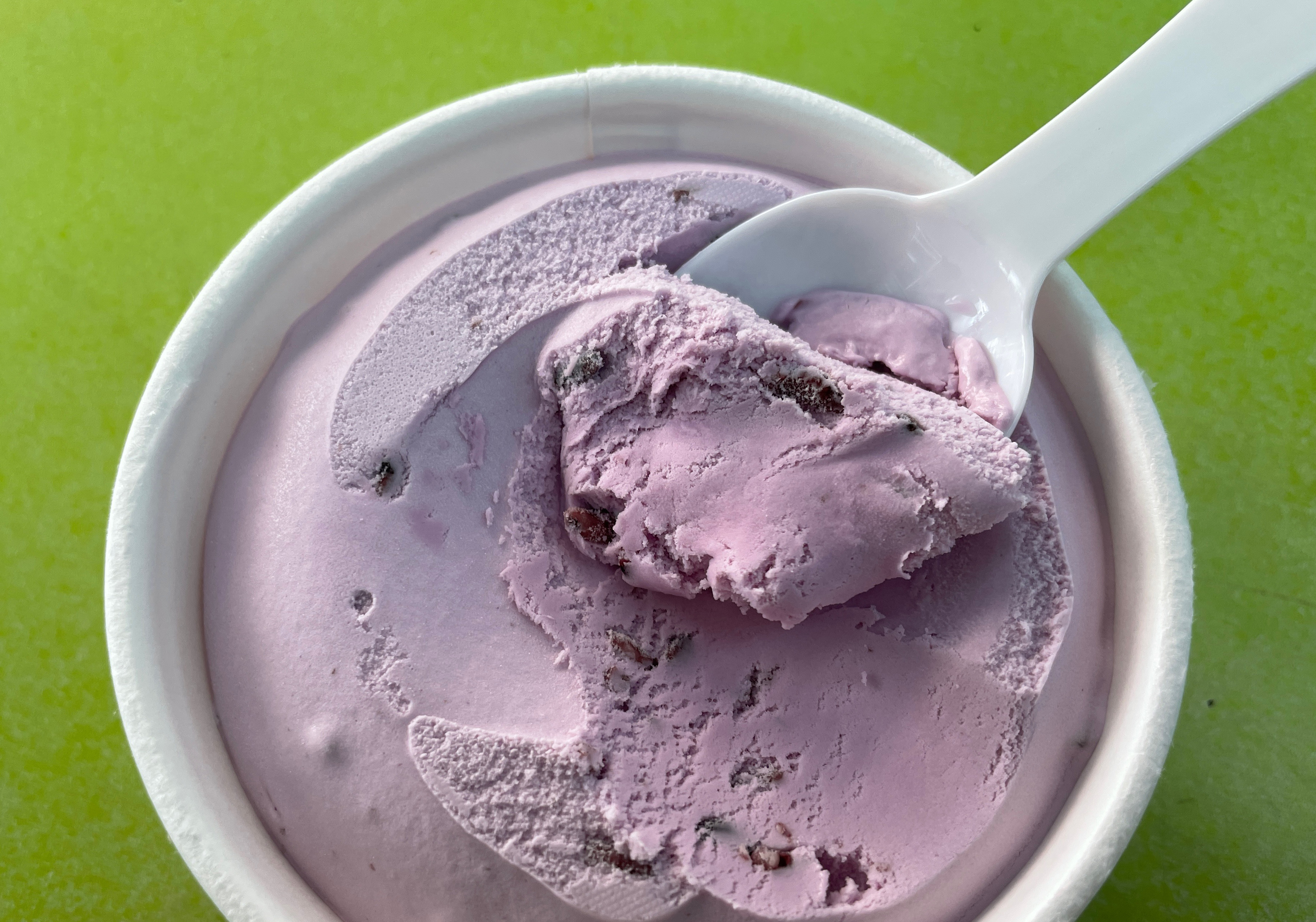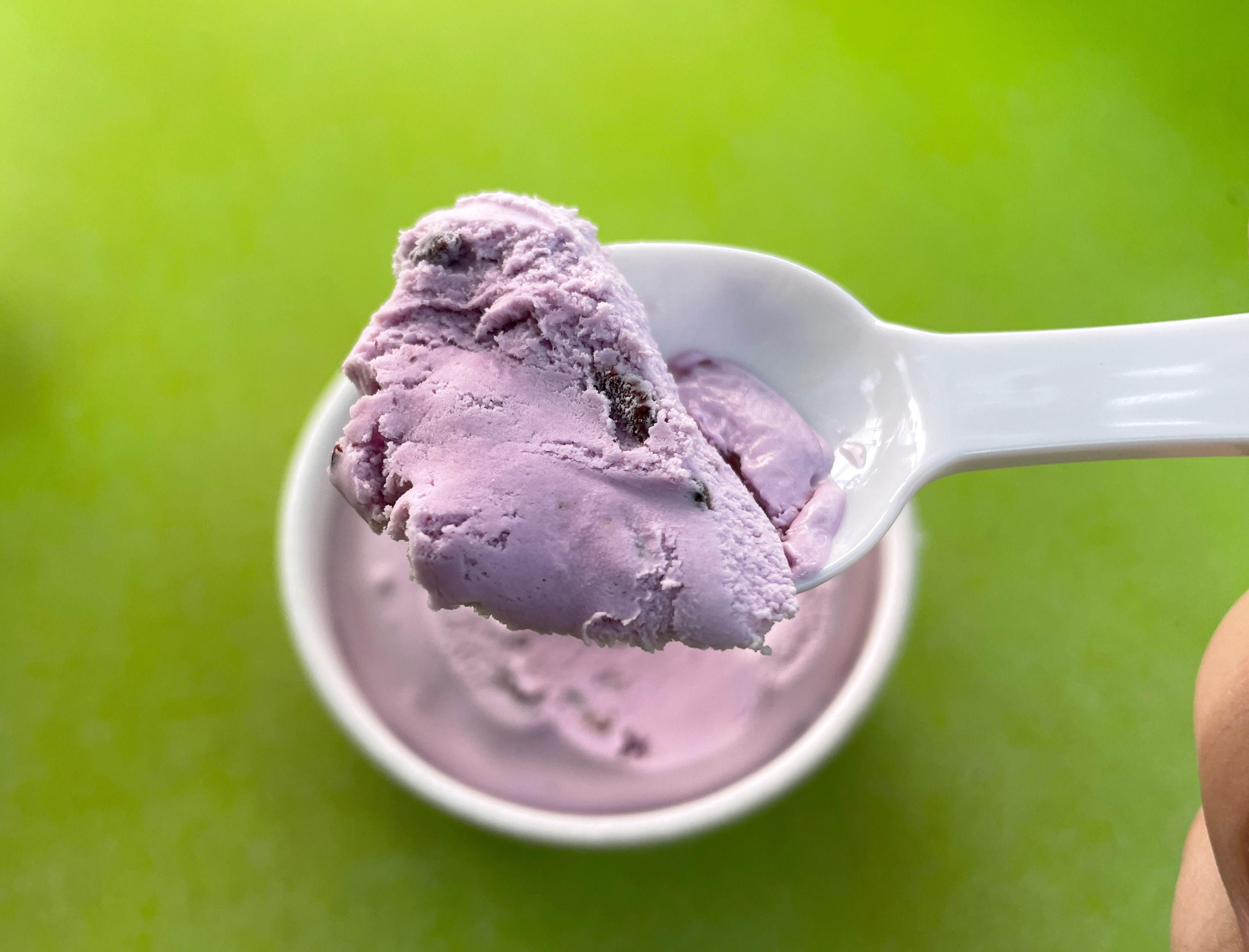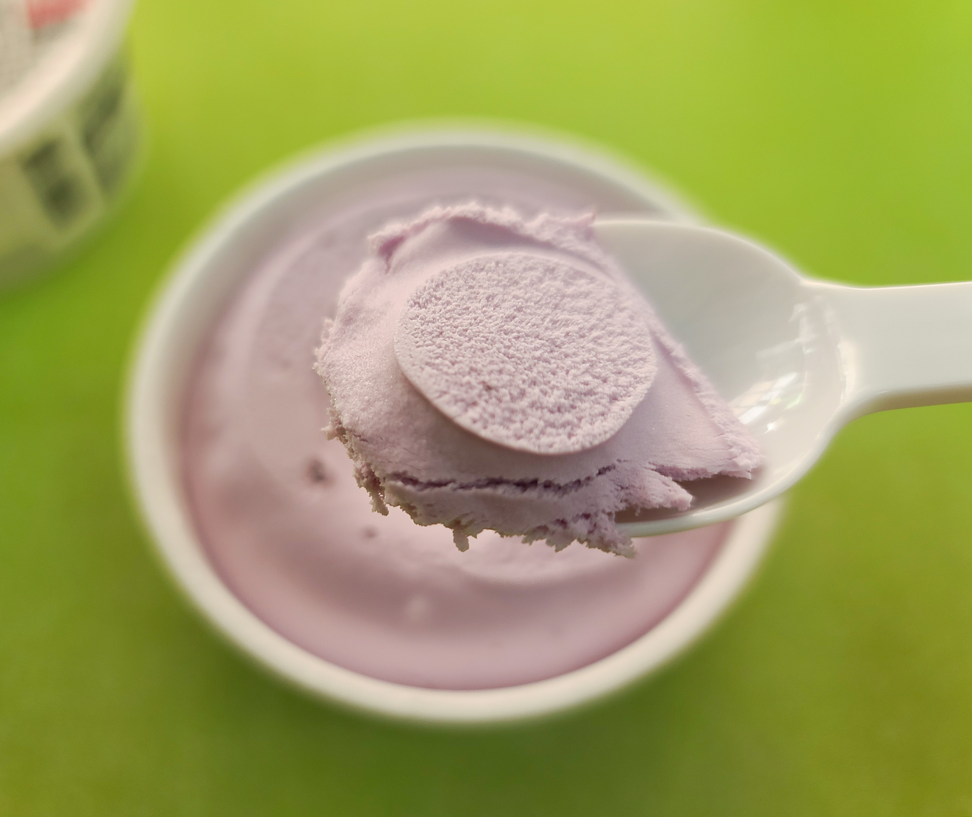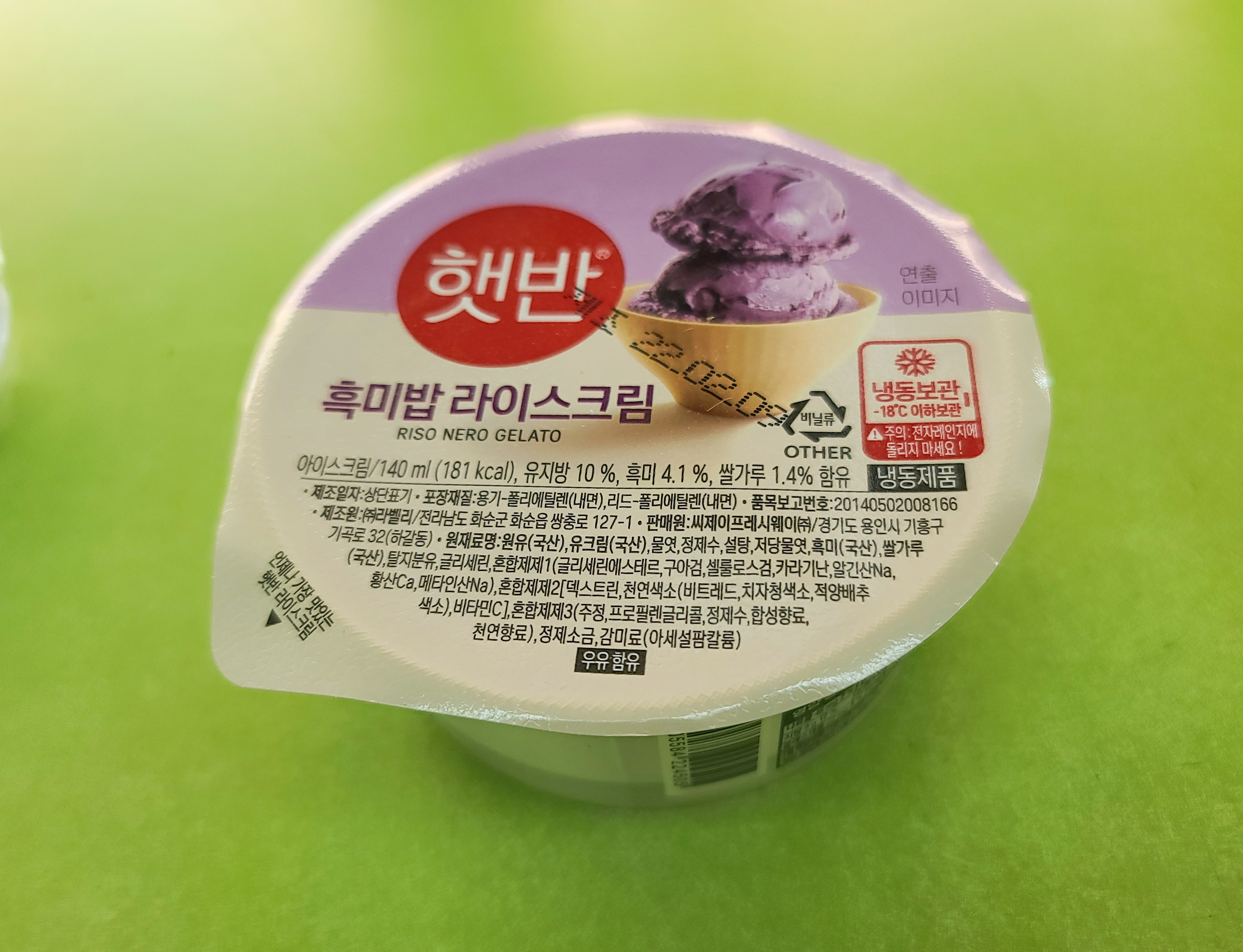 흑미밥 라이스크림의 경우 아이스크림의 색깔은 옅은 보랏빛을 띄고 있었고, 실제 흑미가 아이스크림 사이사이에 들어있어 밥알 씹는 식감이 있었습니다. 흑미밥 라이스크림의 맛은 곡물라떼같은 부드러운 맛이었고, 중간중간 씹히는 밥알로 인해 밥을 먹는듯한 오묘한 느낌도 있었습니다.