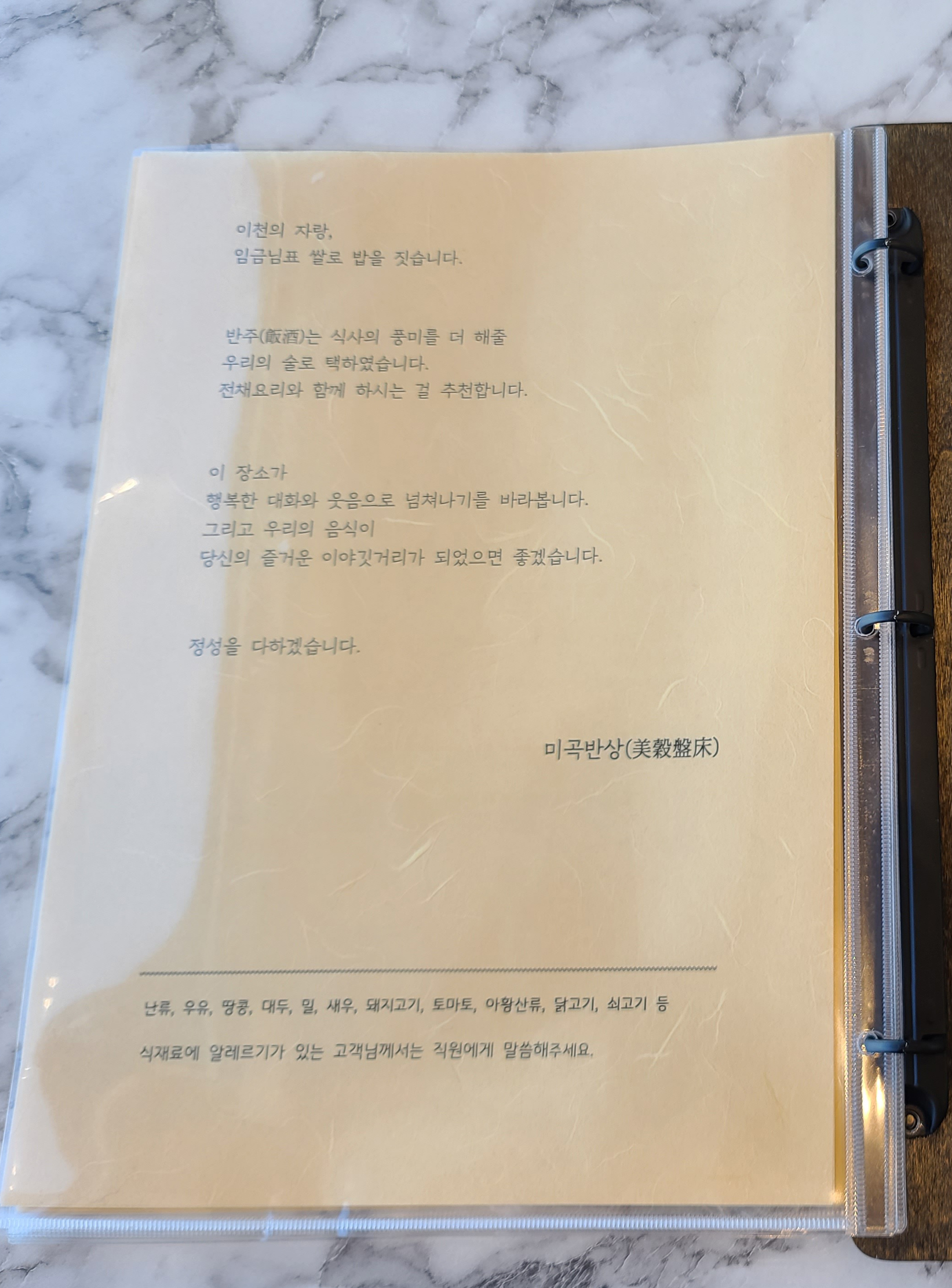미곡반상은 최근 기아의 전기차 EV6 를 시승할 겸 이천 쪽으로 드라이브를 갔다가, 점심식사를 위해 방문한 가게입니다. 가게는 크고 널찍했으며 깔끔한 분위기가 한정식보다는 고급스러운 레스토랑 같은 느낌이었습니다.