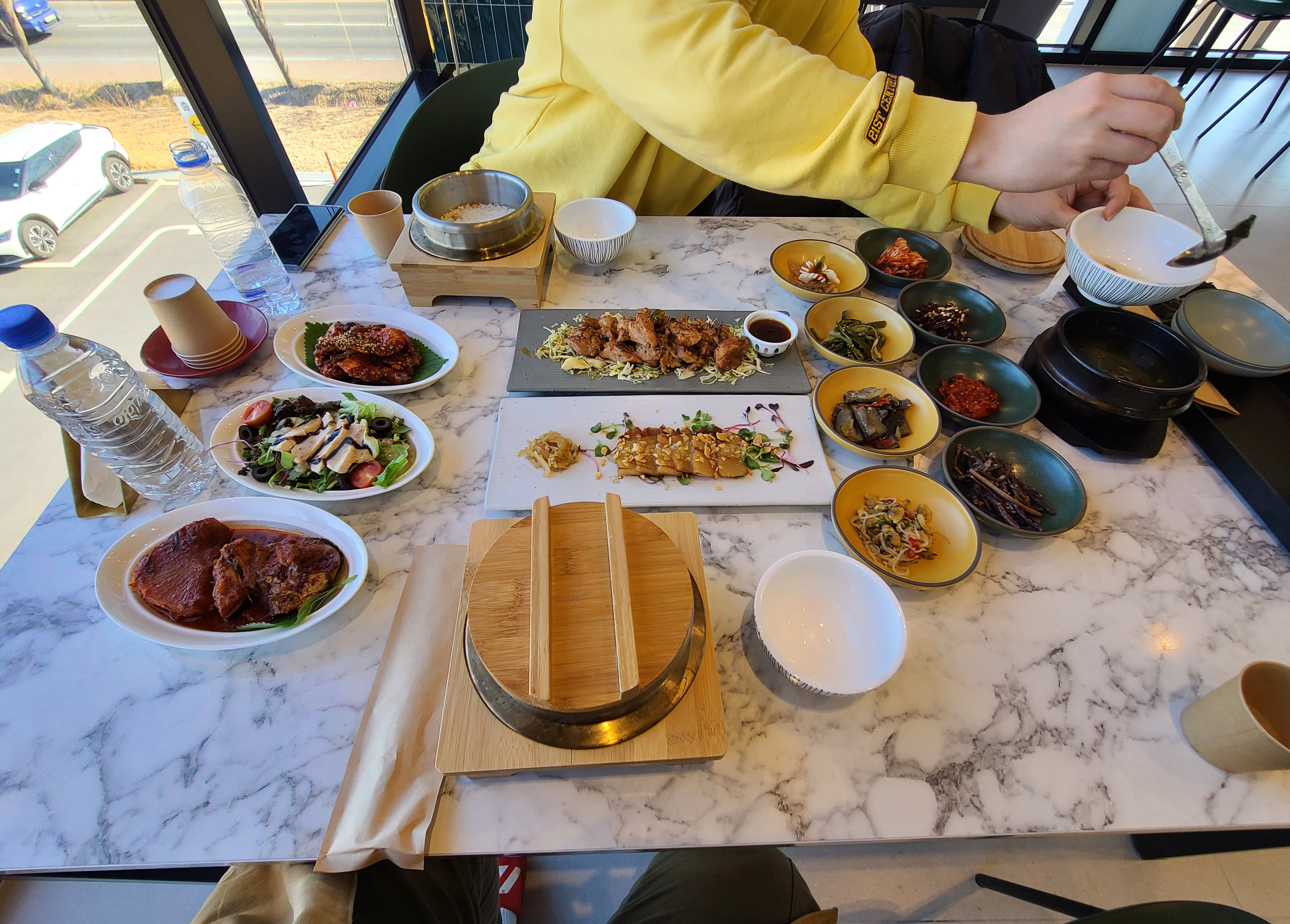 메인 메뉴인 데리야끼 닭찜을 포함해 마늘삼겹살, 생선조림, 닭가슴살 샐러드, 양념게장 두루두루 맛이 괜찮았습니다. 나물반찬들도 쌀밥과 잘 어울렸고요. 가지볶음이나 고사리무침, 젓갈류도 맛있었고 전체적으로 메뉴들이 다 깔끔하고 자극적이지 않아서 거부감 없이 먹을 수 있었습니다. 이천 미곡반상의 점심 코스는 16,000원 가격에 걸맞은 식사였다고 생각합니다. 우연히 방문했는데, 깔끔하고 분위기도 좋아서 가족끼리 식사하면 좋을 것 같다고 생각했습니다.