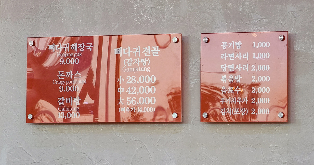 제 생각과는 달리 꽤 큰 뼈다귀와 고기가 나와서 이 정도면 굳이 전골 메뉴를 주문하지 않아도 배불리 먹을 수 있겠다는 생각도 들더라고요. 뼈다귀 해장국의 경우 가격이 9,000원으로 저렴한 편은 아니지만, 큼직한 고기가 나오는 데서 만족했습니다. 물론 전골로 먹어도 푸짐하게 먹을 수 있었고요. 관심이 있으신 분은 한 번 이용해보시라고 추천드리고 싶습니다.