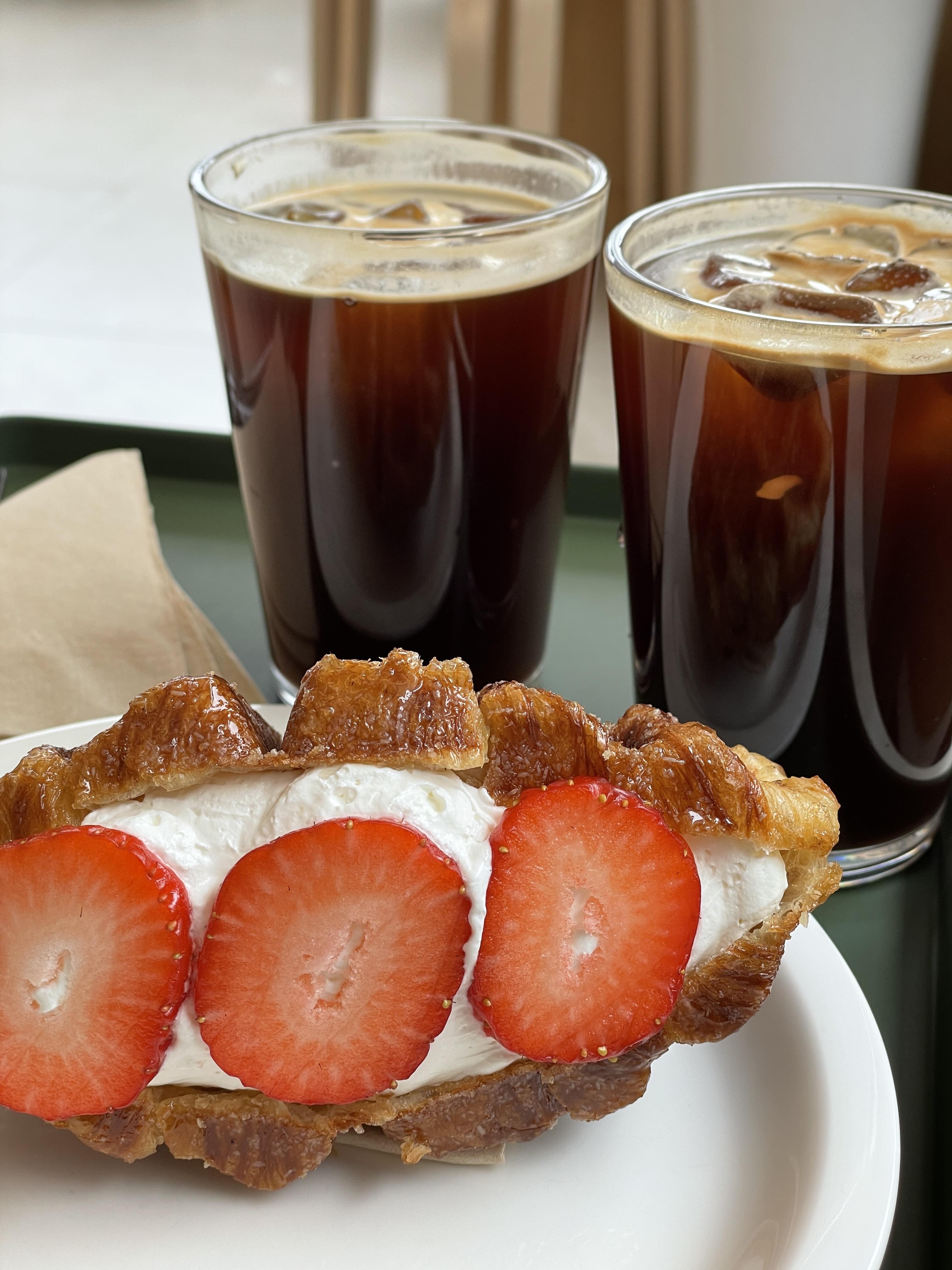 뭄뭄의 인테리어도 깔끔하다고 느꼈는데, 푸푸의 인테리어도 깔끔하고 군더더기 없었습니다. 저희는 아메리카노와 크로플을 주문하여 먹었는데, 커피도 진해서 좋았고 쌉싸름한 커피에 달달한 디저트까지 완벽했다고 할 수 있었죠.