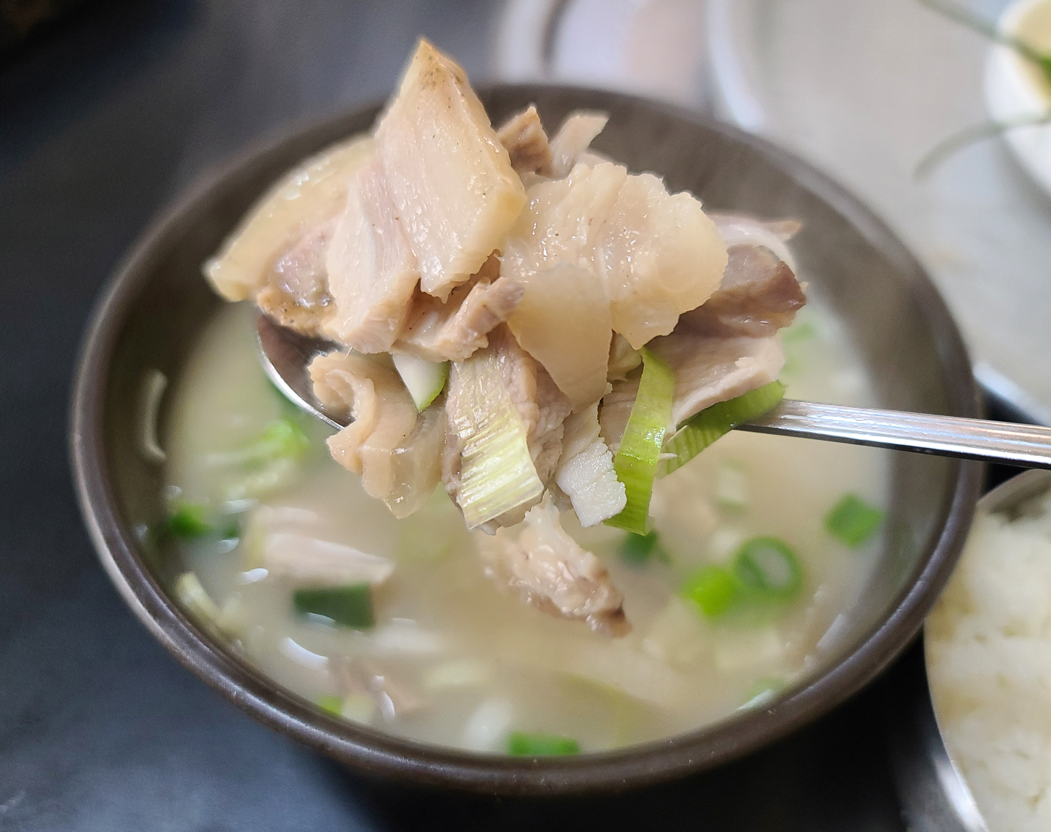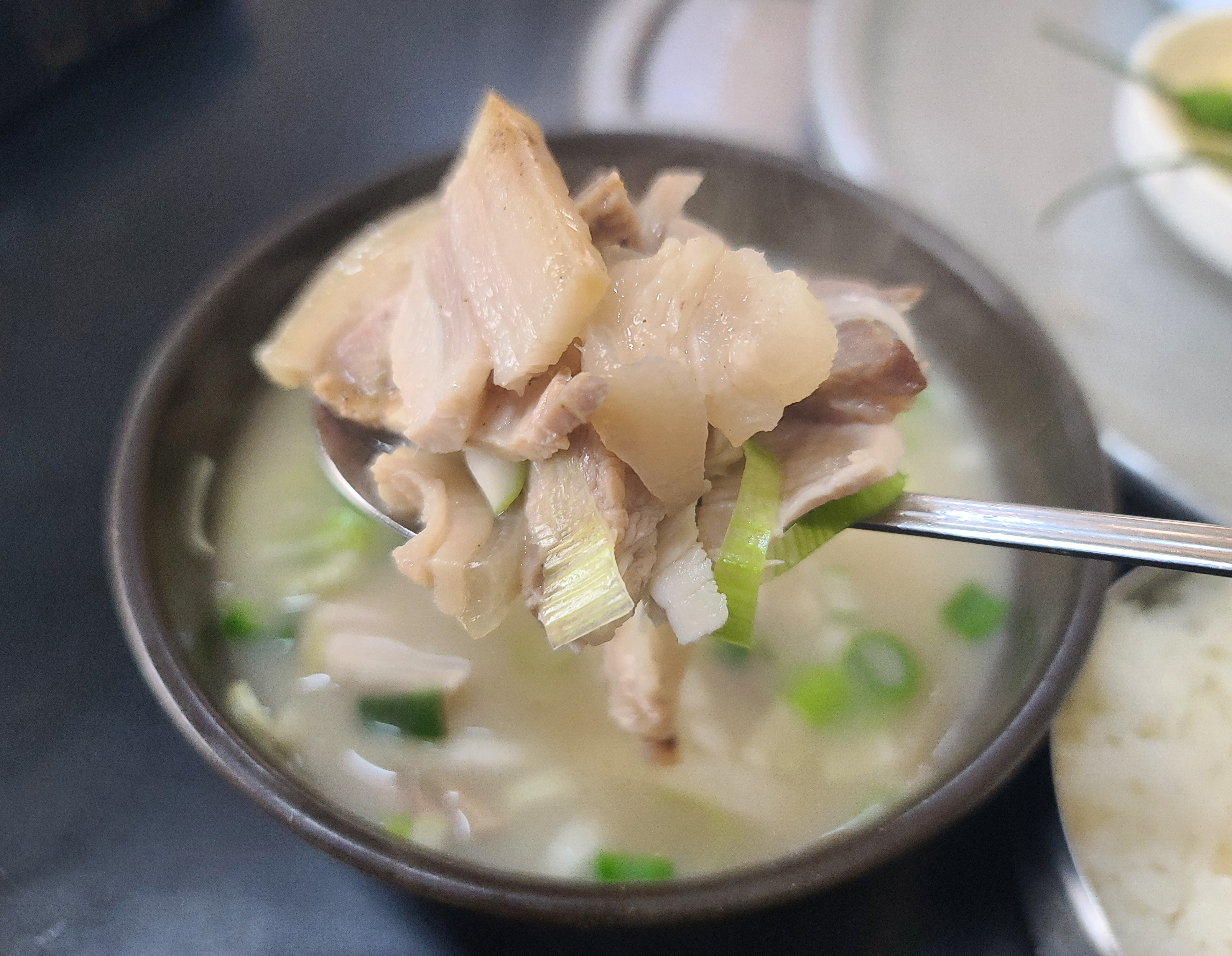 심지어 저렴한 가격임에도 고기는 푸짐하게 들어있어서 가성비가 꽤 좋았습니다. 고기는 쫄깃한 식감이 있었고, 원래는 수육도 같이 시킬까 고민했지만, 국밥만으로도 잘 나오는 편이었고 저렴한 돼지국밥을 소개하는 포스팅인 만큼 일부러 추가적인 메뉴는 주문하지 않았습니다.