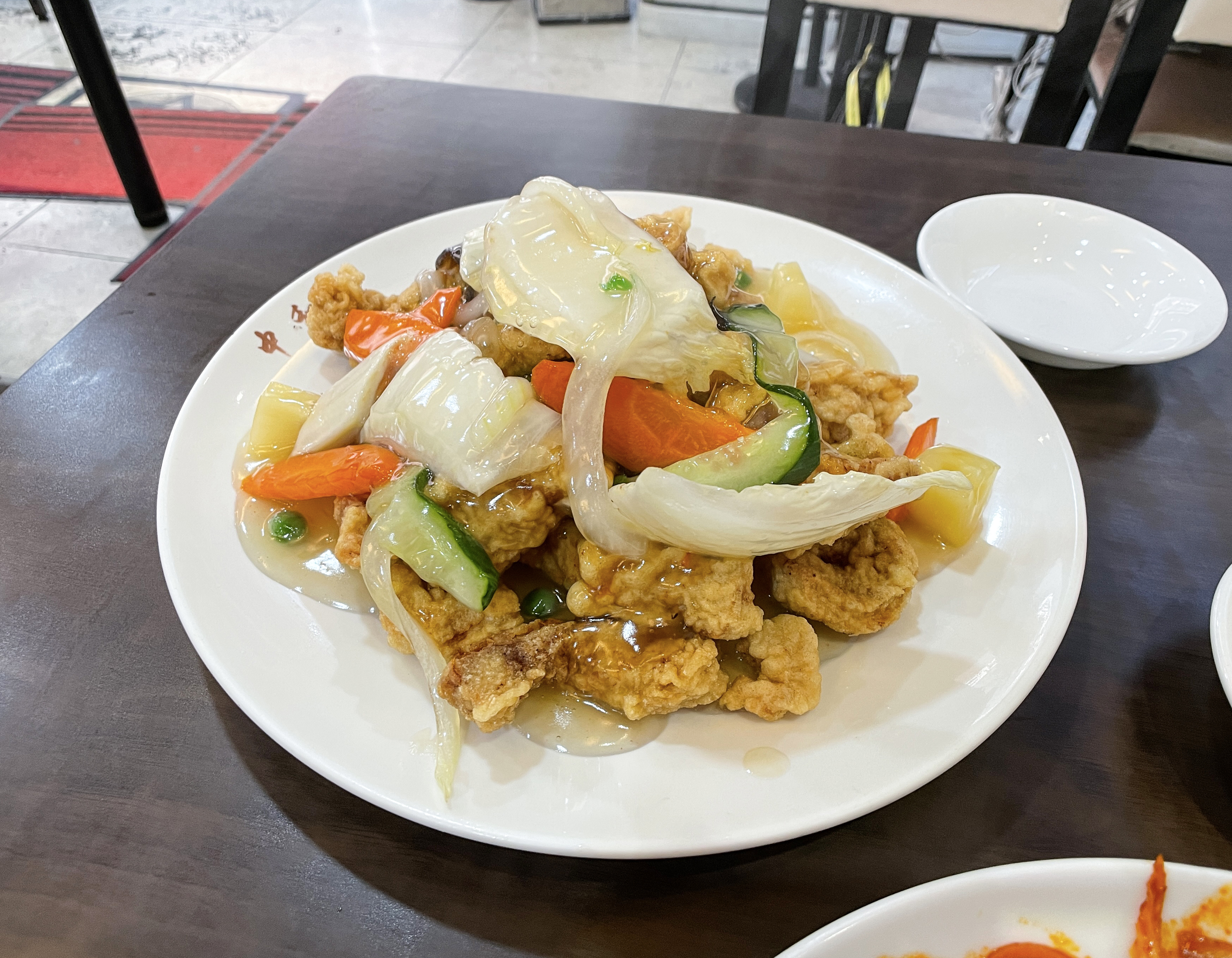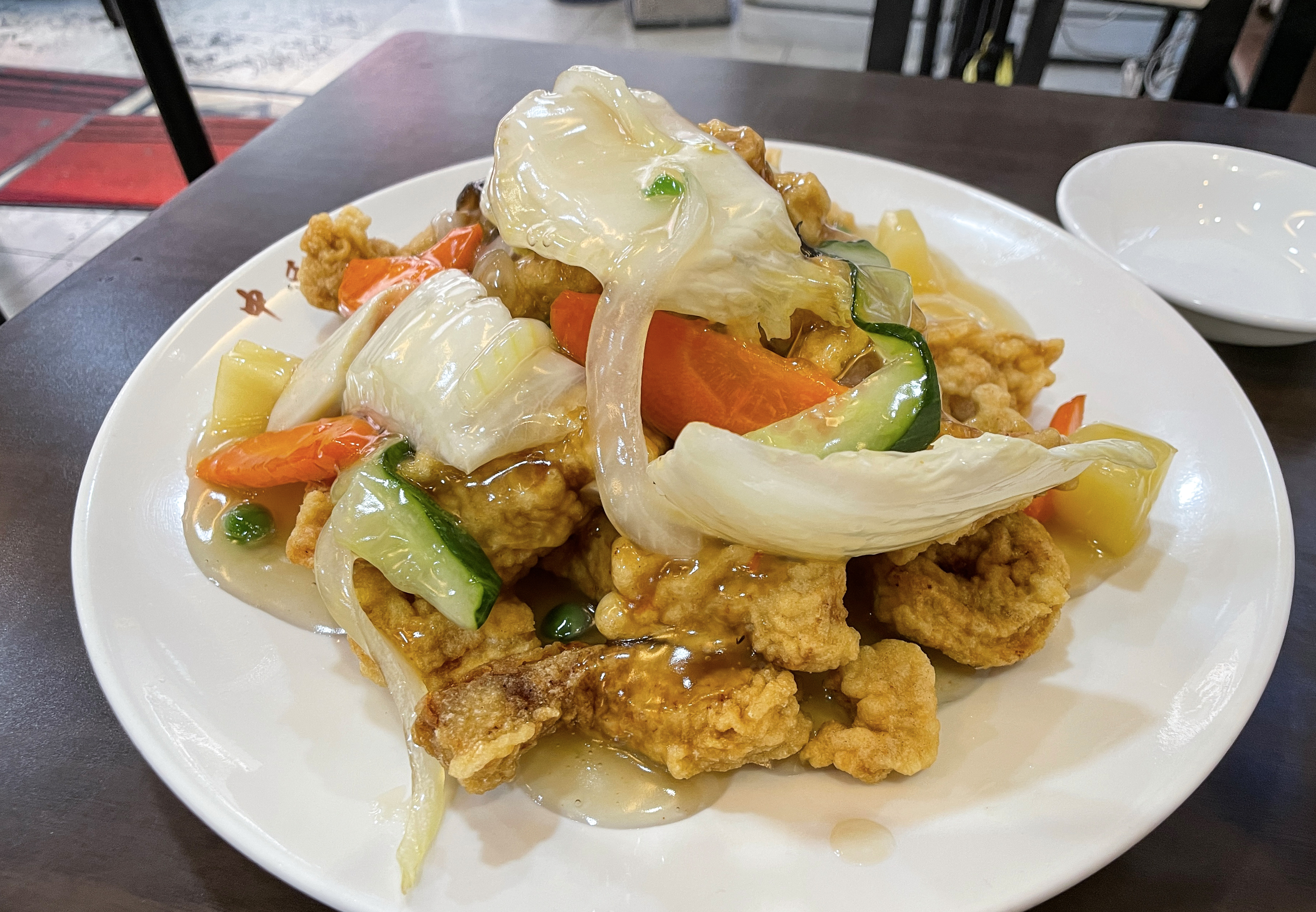 중화반점 야끼우동은 새우와 오징어, 양파 등이 들어가 볶아져 나왔고, '원조 야끼우동 전문점'에서 먹는 야끼우동이라는 기대감이 컸는데 생각보다 요즘 대구의 야끼우동 맛있게 하는 가게가 많아져서 '중화반점' 가게에서 먹는 야끼우동은 양념은 진한데 생각보다 맛에 특징이 없더라고요. 아쉬움을 느끼고 있을 때 주문한 탕수육 소 자가 나왔습니다.