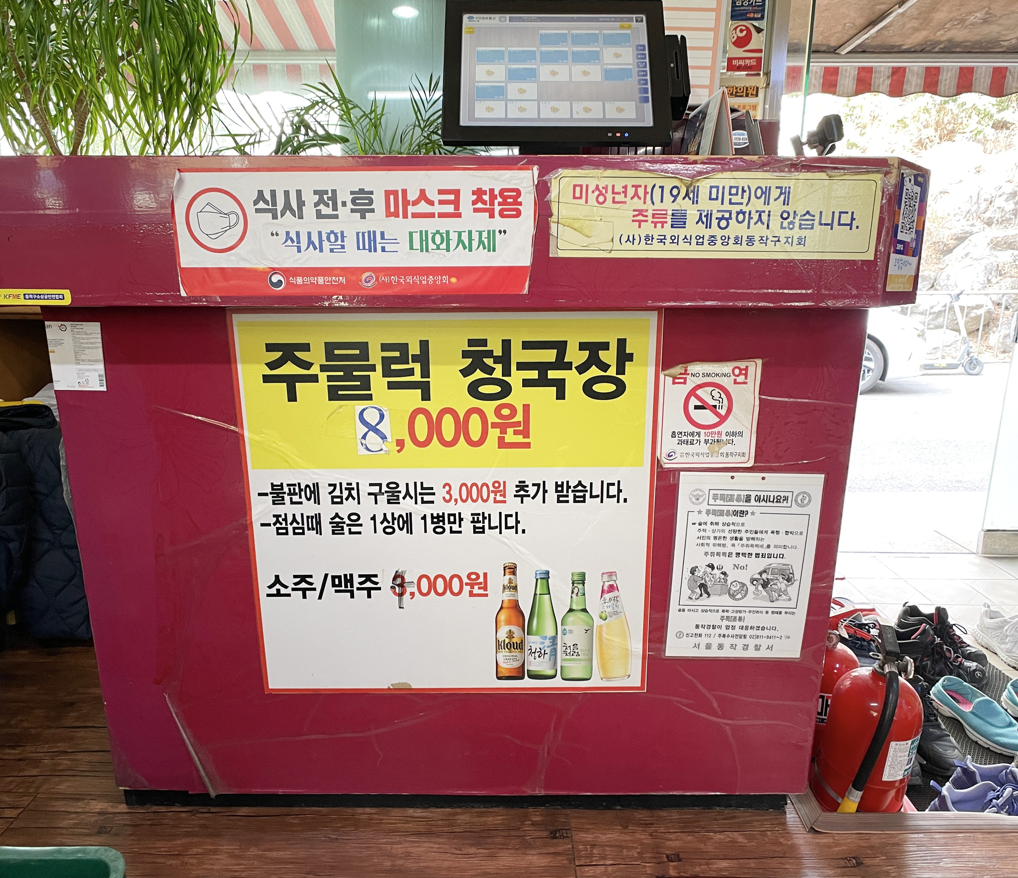다래식당의 메뉴는 단품 메뉴 주물럭청국장만 있었고 가격은 8,000원이었습니다. 재미있는 점은 불판에 김치를 구울 경우 3,000원을 추가로 받는다고 되어있는 점이었는데, 어지간히 손님들이 불판에 김치를 올려 사장님을 불편하게 했나 보더라고요. 고민할 것도 없이 주물럭청국장 2인분을 주문했습니다.