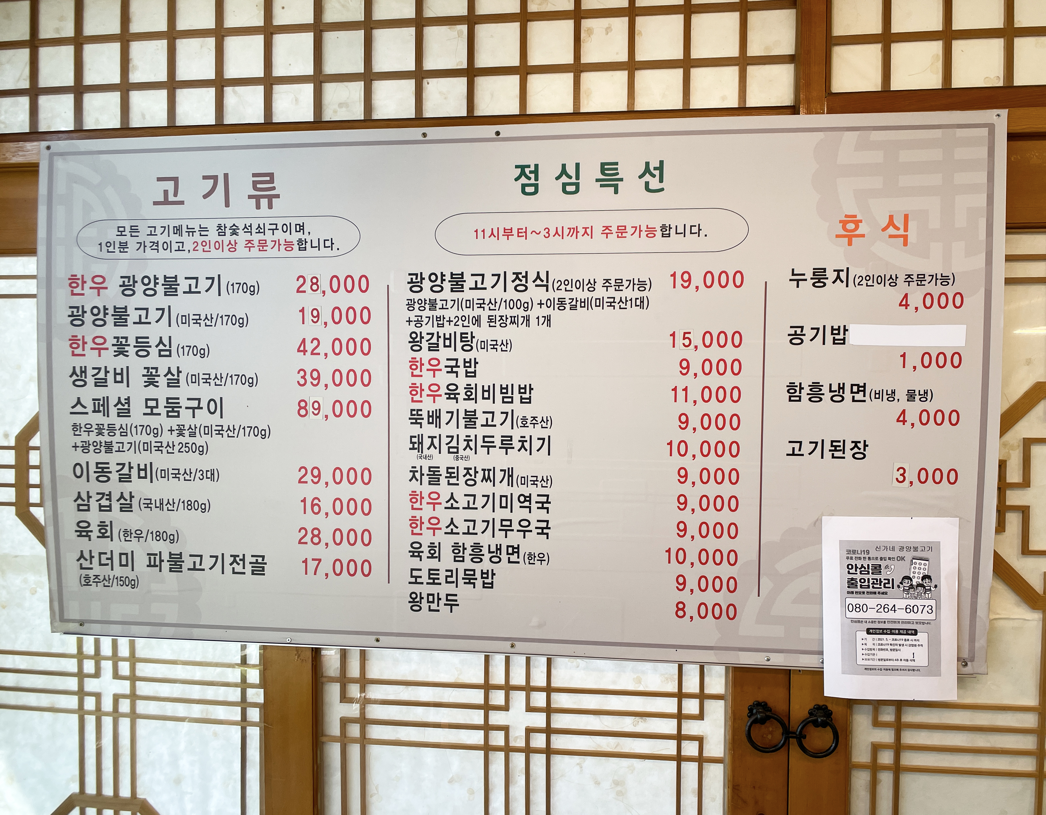 신가네 광양불고기 가게 안의 모습입니다. 가게의 규모는 크고 널찍했으며 점심시간을 피해서 가서 조금 여유로운 분위기에서 식사할 수 있었습니다. 메뉴를 먼저 살펴보실까요?