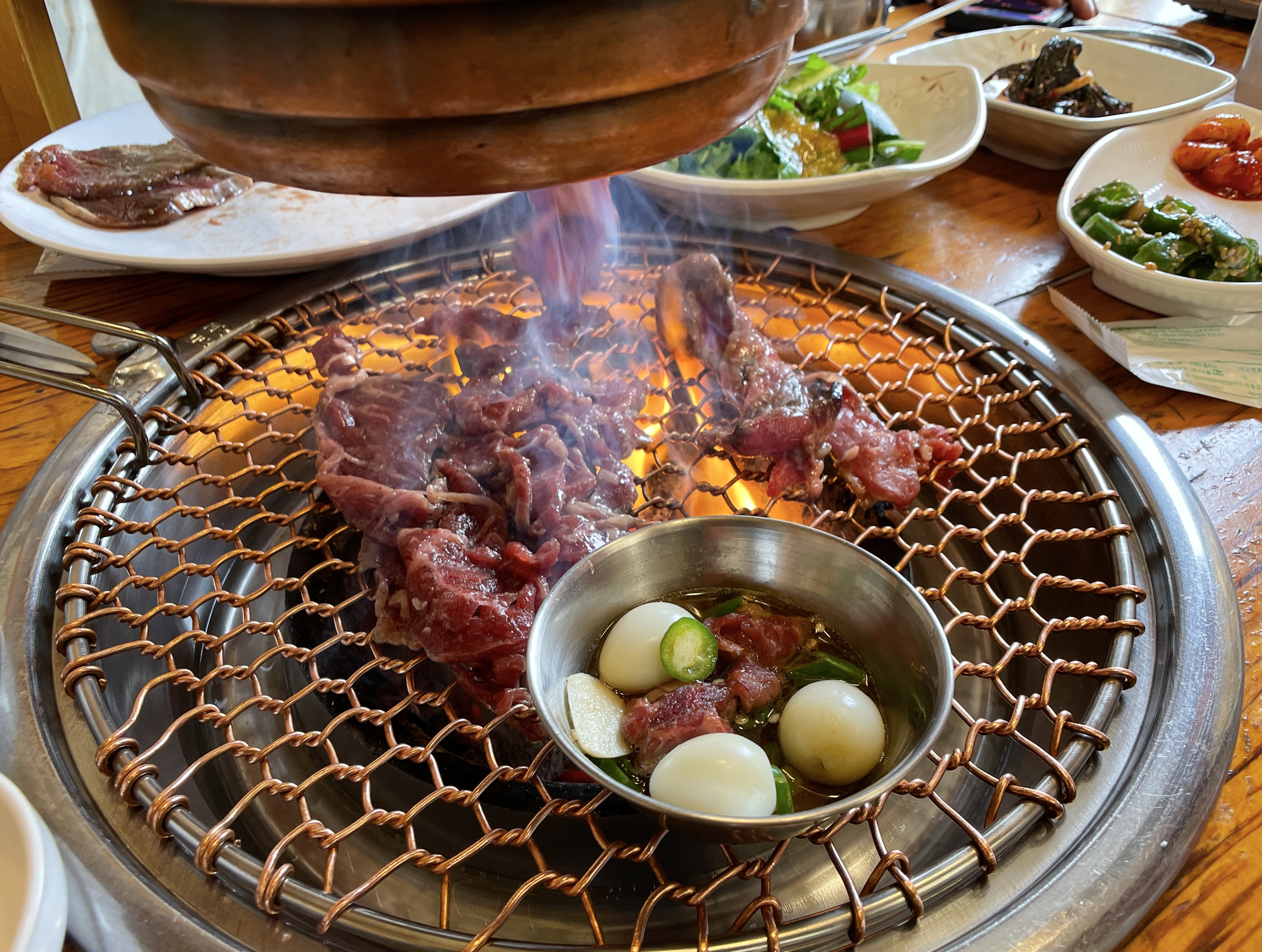 이 가게는 참숯 석쇠구이로 한우 광양불고기를 판매하고 있는 가게였습니다. 뜨겁게 달궈진 참숯 위에 석쇠를 올리고 그 위에 광양불고기를 올려 숯불향을 입혀가며 구워주면 되었는데, 고기의 질이 좋아서 그런지 더욱 맛있었던 가게였습니다.