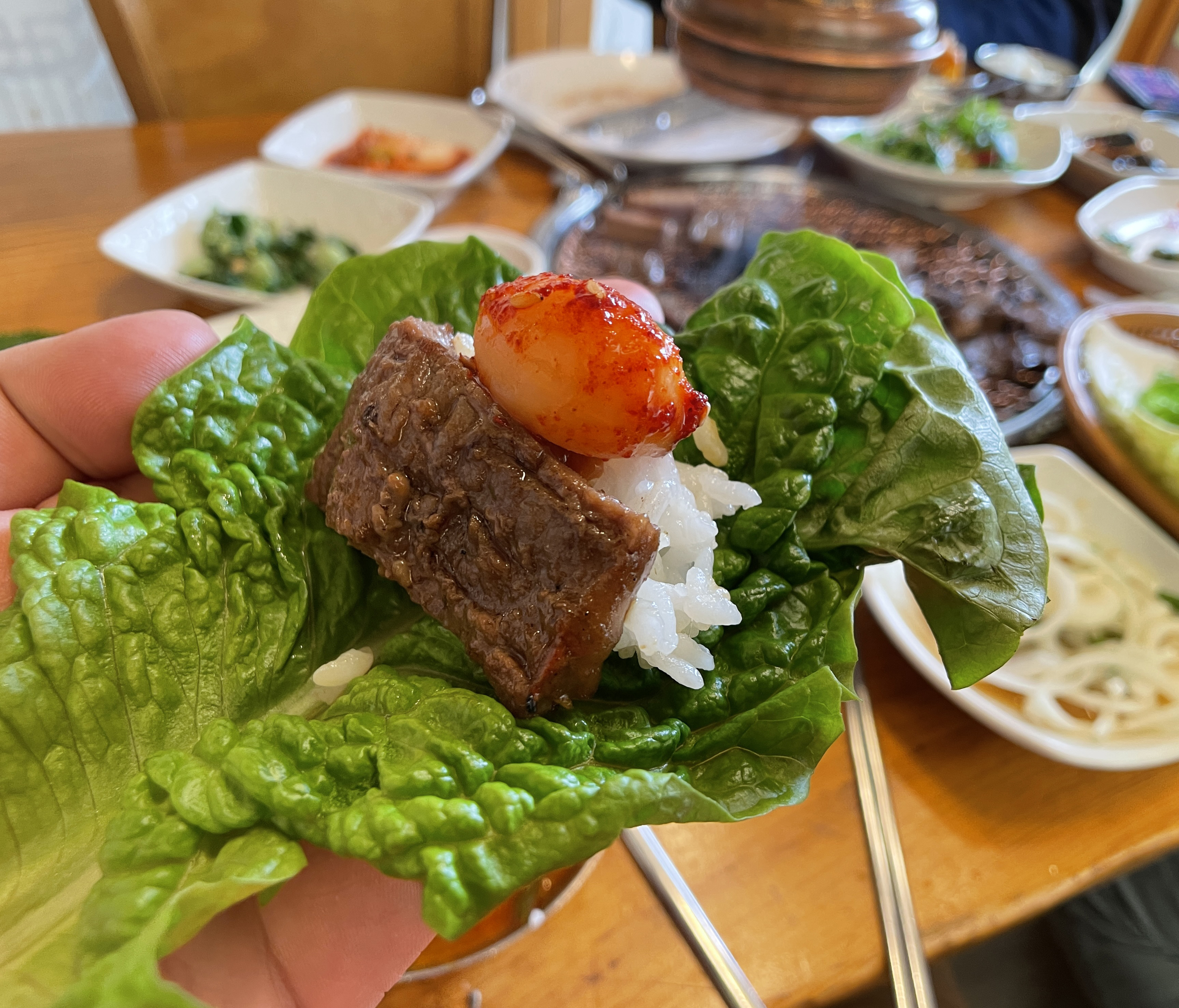 고기는 이렇게 그냥 먹어도 맛있지만, 고추장마늘장아찌와 함께 곁들이면 알싸한 마늘향이 더해져 더 담백하고 맛있었습니다. 과천 선바위역 인근에 위치한 맛집 <신가네 광양불고기>는 넓은 매장에, 깔끔한 분위기 그리고 고기의 맛도 좋아서 가족 식사 장소로도 추천드리고 싶습니다.