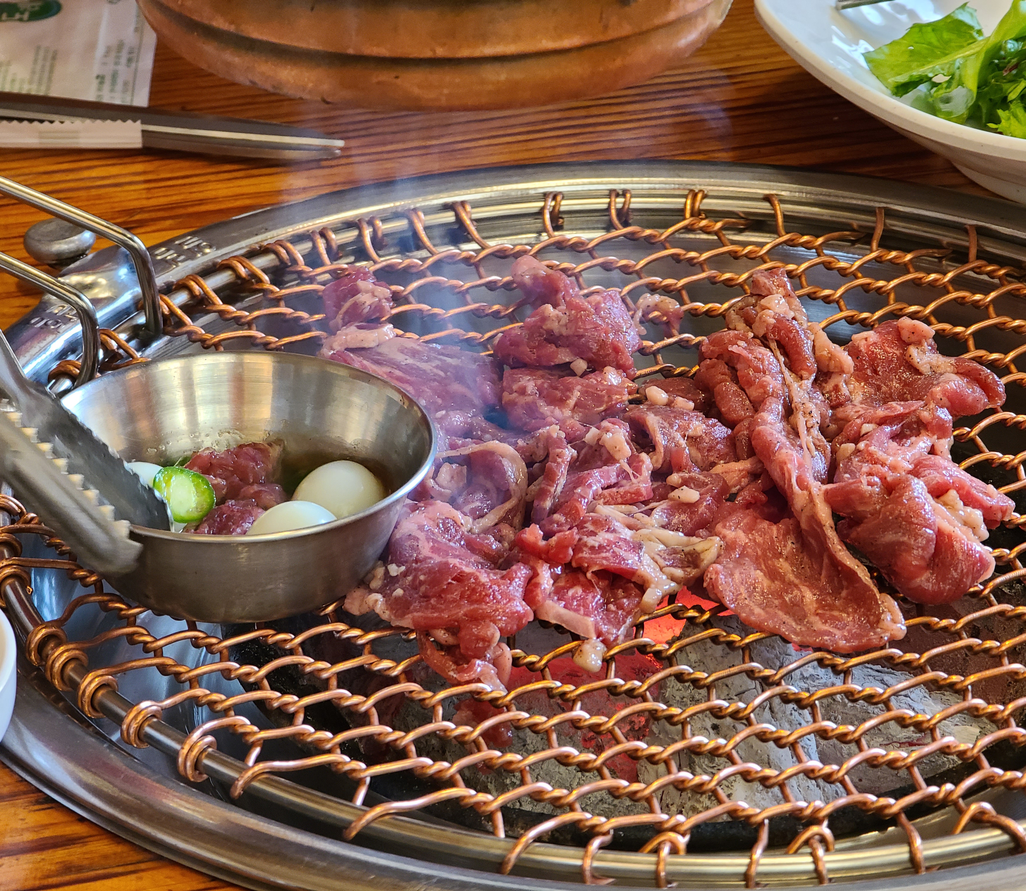 이 가게는 참숯 석쇠구이로 한우 광양불고기를 판매하고 있는 가게였습니다. 뜨겁게 달궈진 참숯 위에 석쇠를 올리고 그 위에 광양불고기를 올려 숯불향을 입혀가며 구워주면 되었는데, 고기의 질이 좋아서 그런지 더욱 맛있었던 가게였습니다.