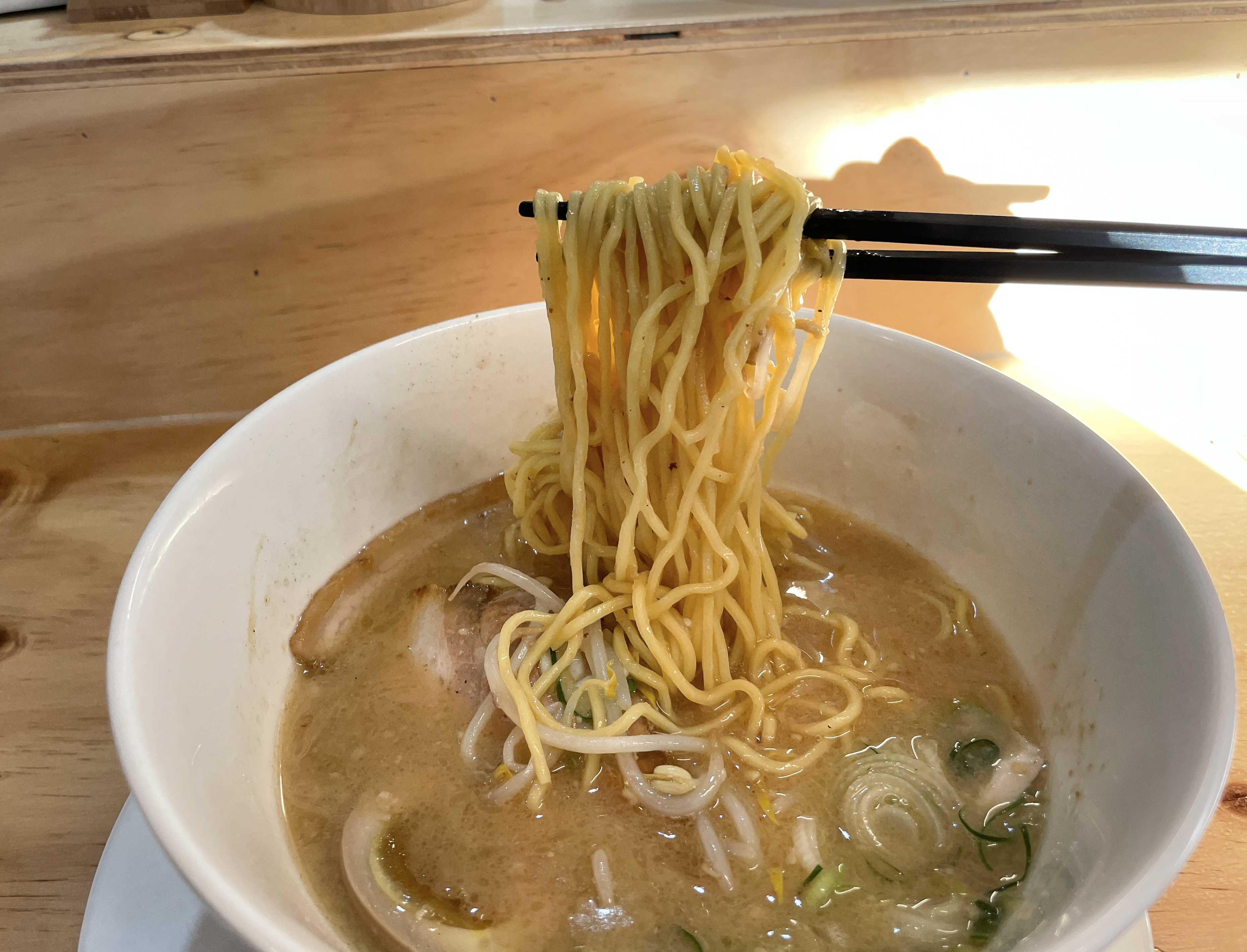곧이어 주문한 차슈 추가를 한 진한육수라멘이 나왔습니다. 렌게의 라멘은 닭 육수가 첨가된 일본식 라멘이었는데, 진한 국물의 라멘을 주문해서 그런지 묵직한 국물이 먹기에 좋았습니다. 고명으로 수비드 닭가슴살과 삼겹 차슈도 눈에 들어왔습니다.