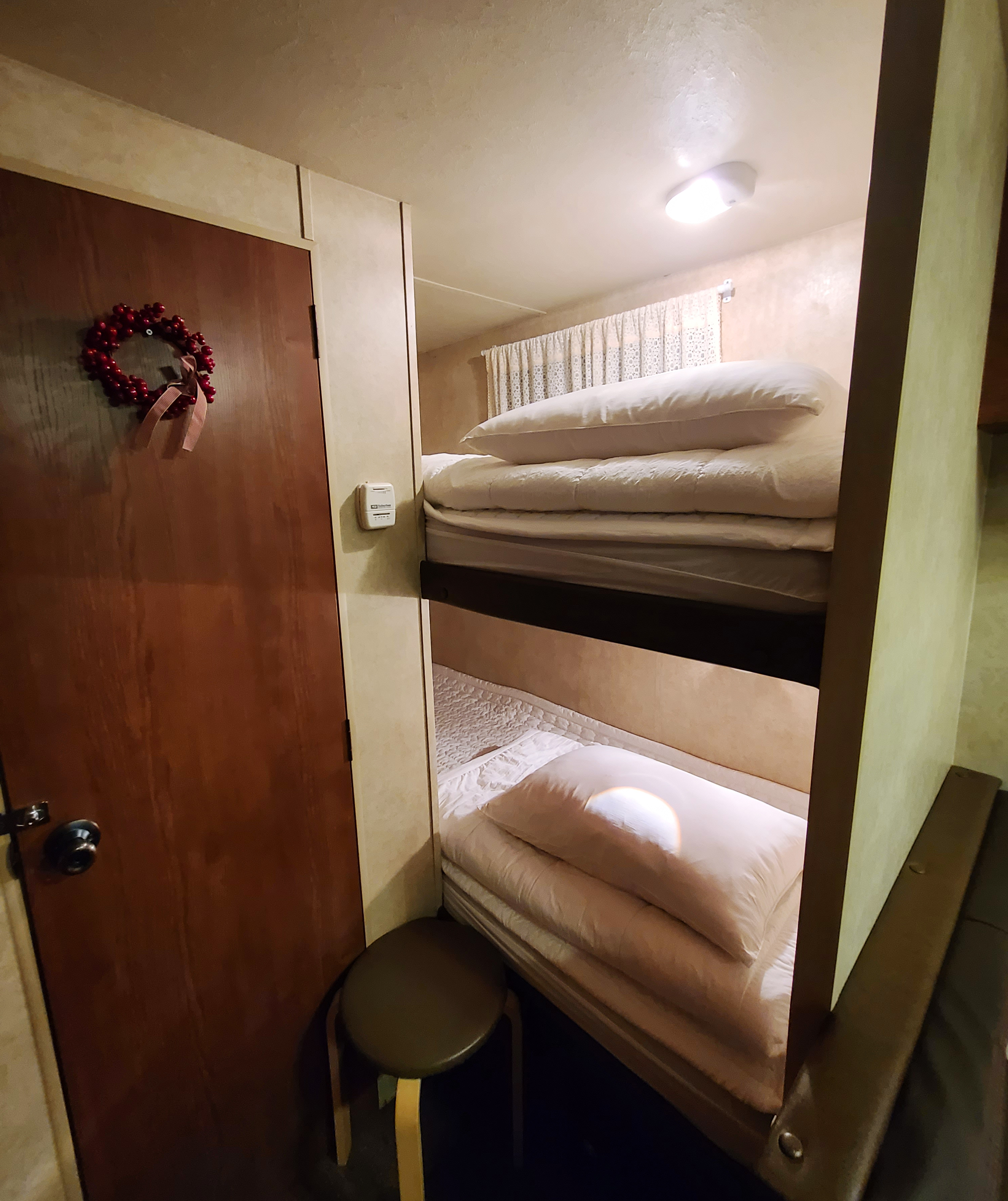 침대는 2인용 침대 1개와 2층으로 구성된 침대로 총 3개가 있었습니다. 2층 침대는 제 체격에 비해 조금 작은 느낌이었는데, 제가 잘 때 뒤척이지 않아서 큰 불편함은 없더라고요.