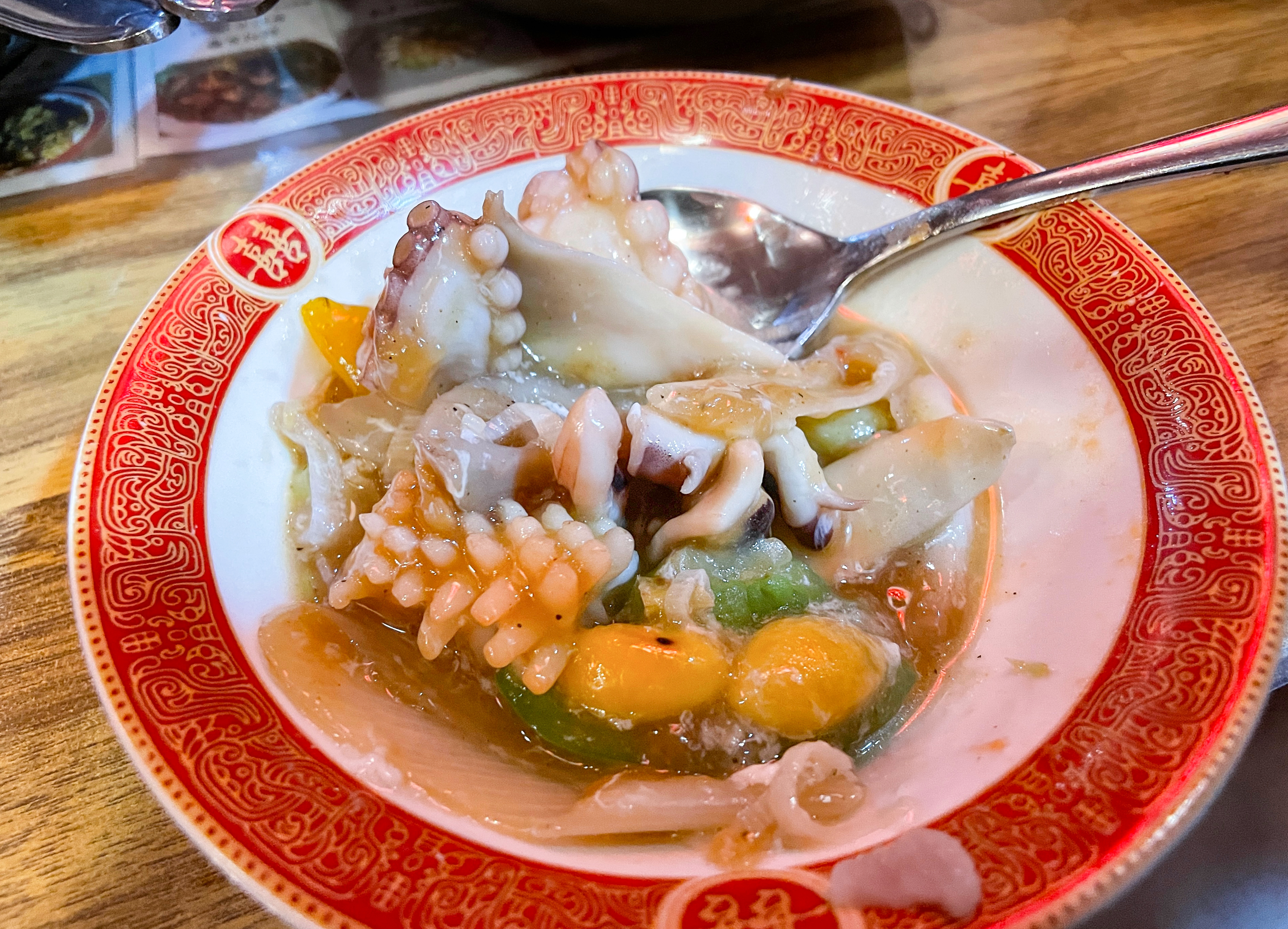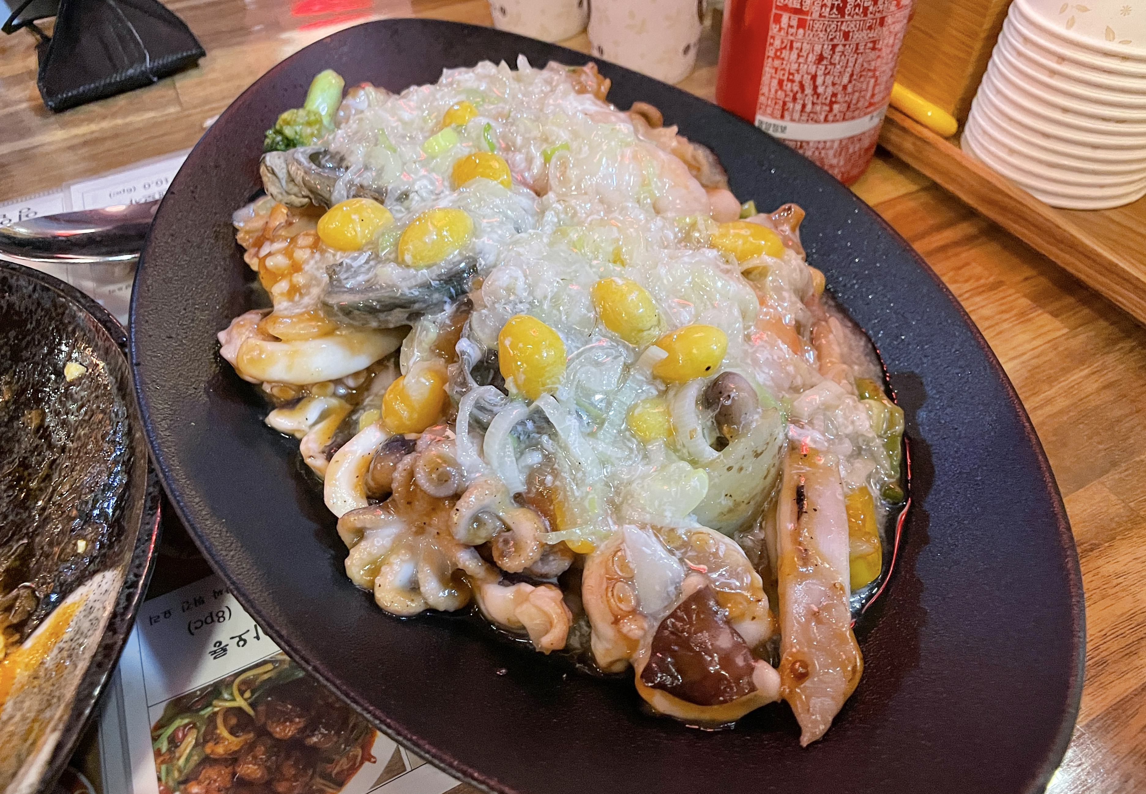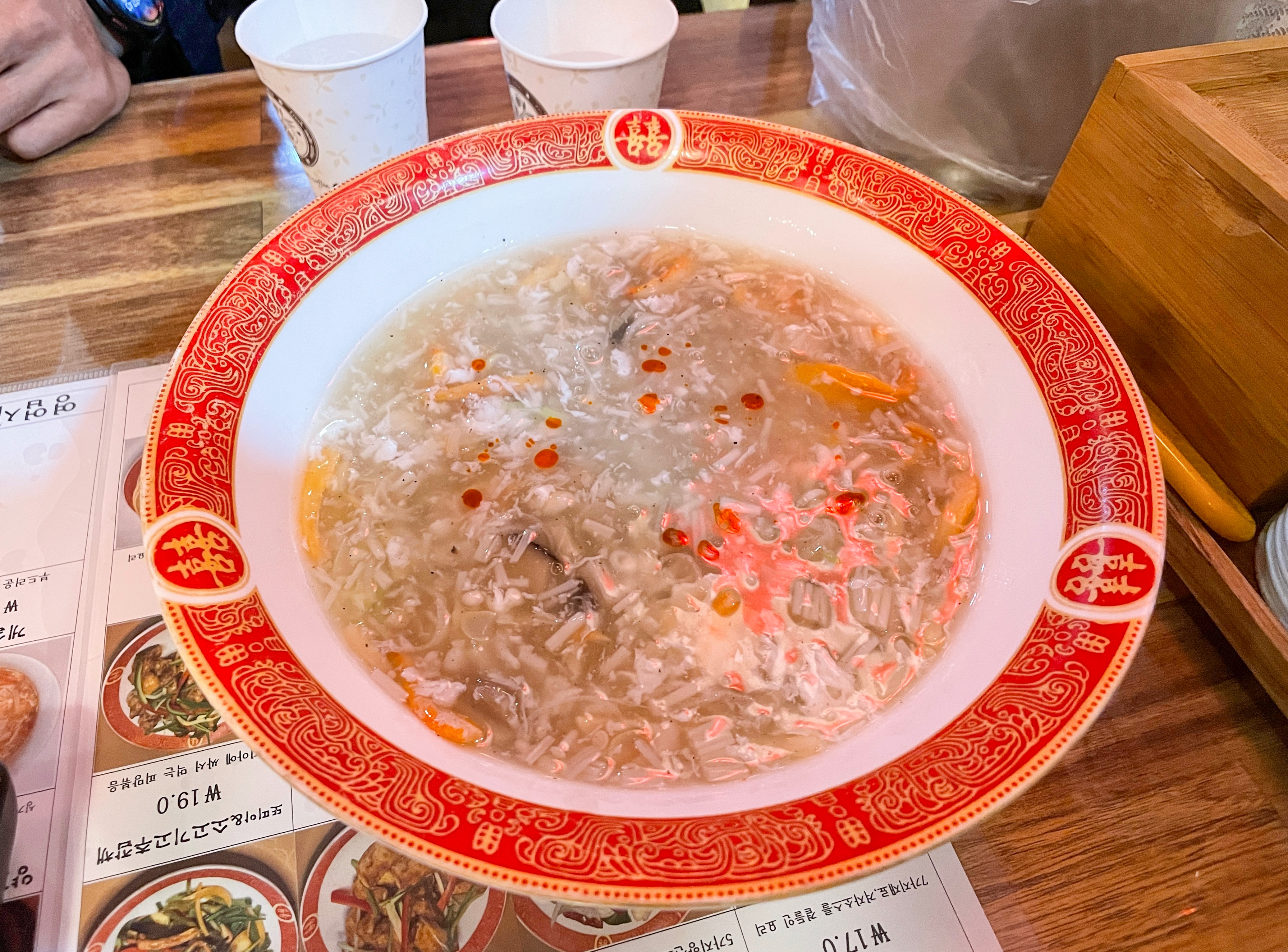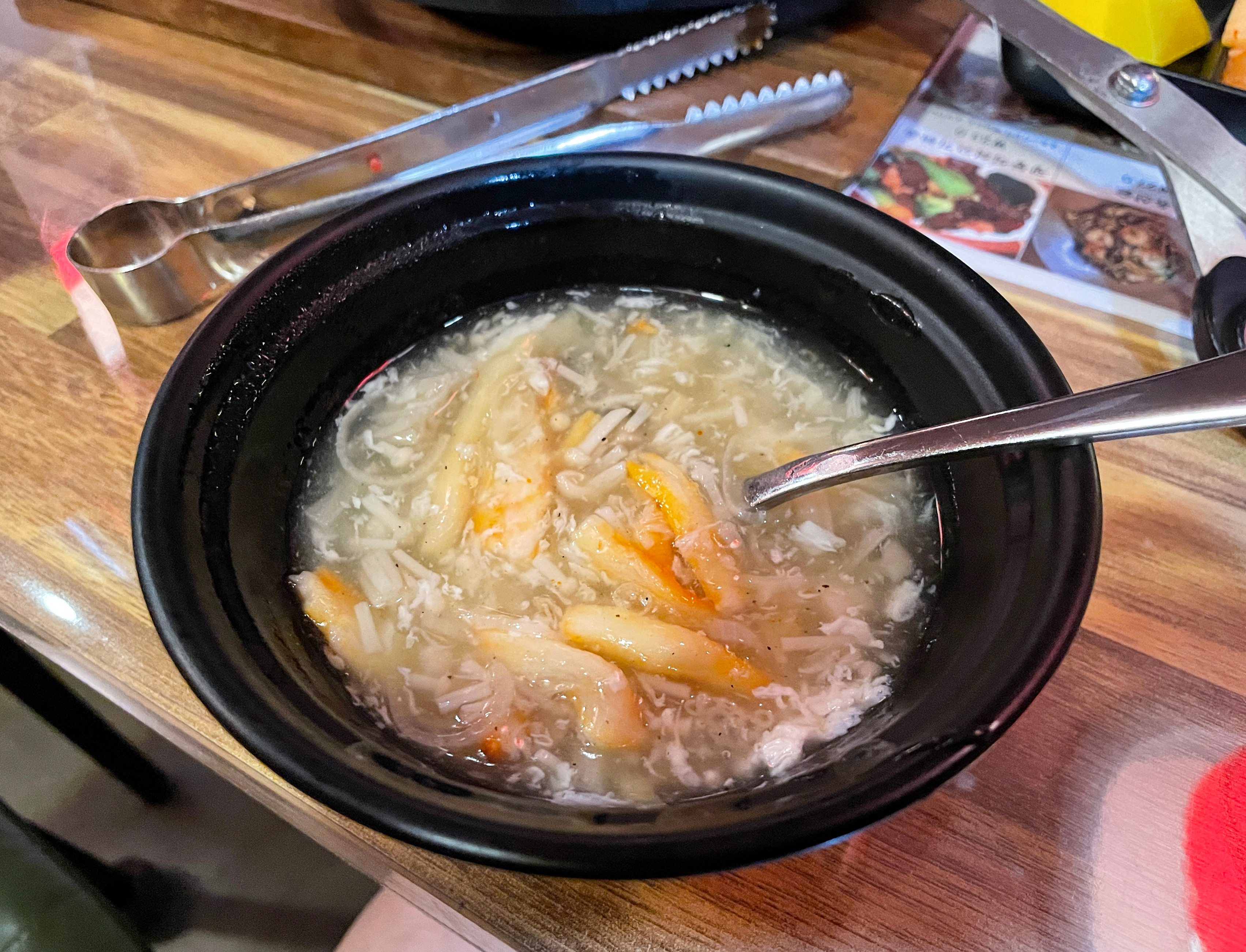 토마토계란볶음은 계란과 방울토마토를 볶은 요리였는데, 새콤한 토마토와 부드러운 계란의 조합이 신선한 메뉴였습니다. 개인적으로 저는 게살스프가 더 입맛에 맞더라고요. 뭔가 토마토계란볶음은 평소 먹을 일이 없어서 그런지 이질적인 느낌이었습니다.