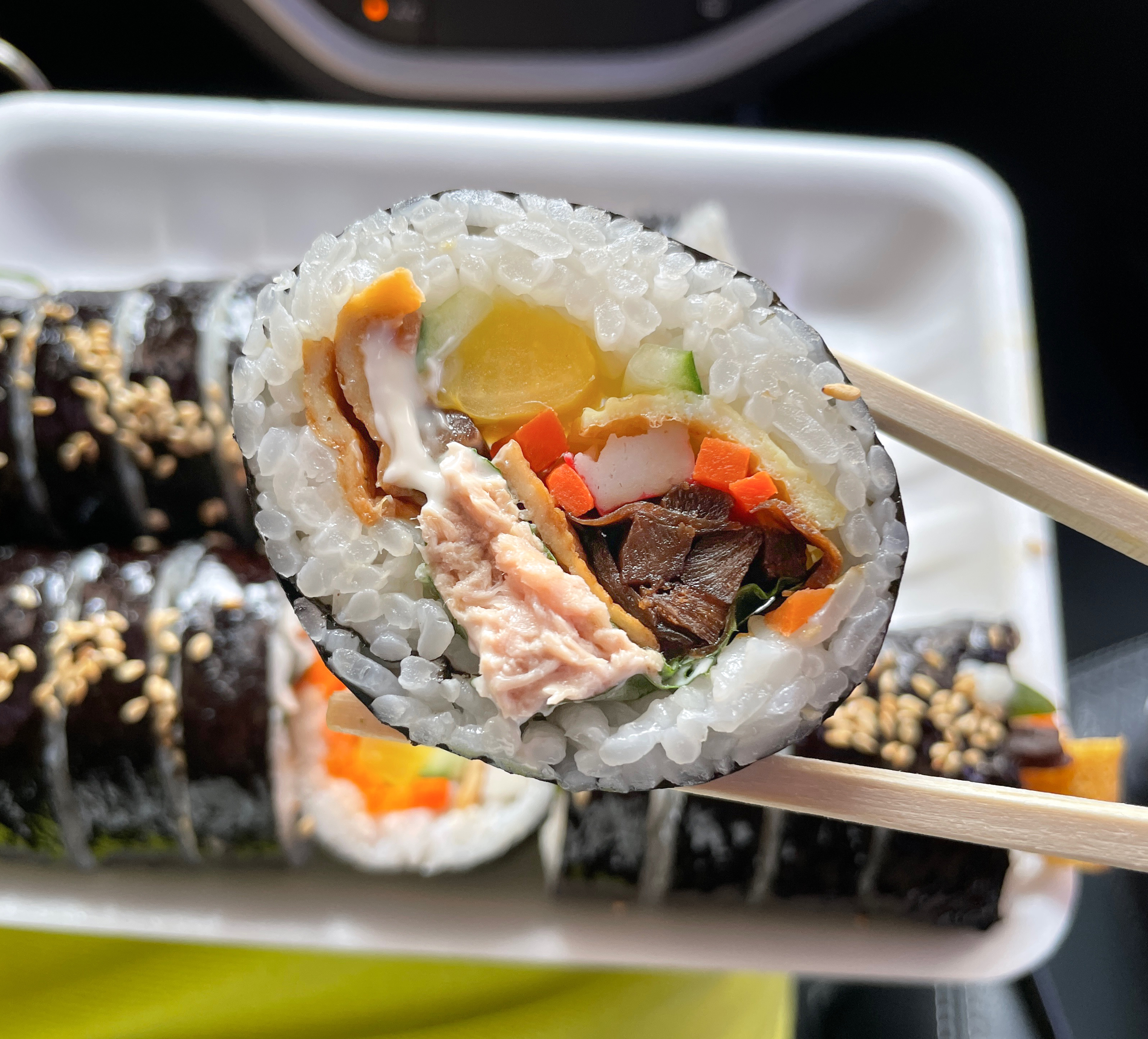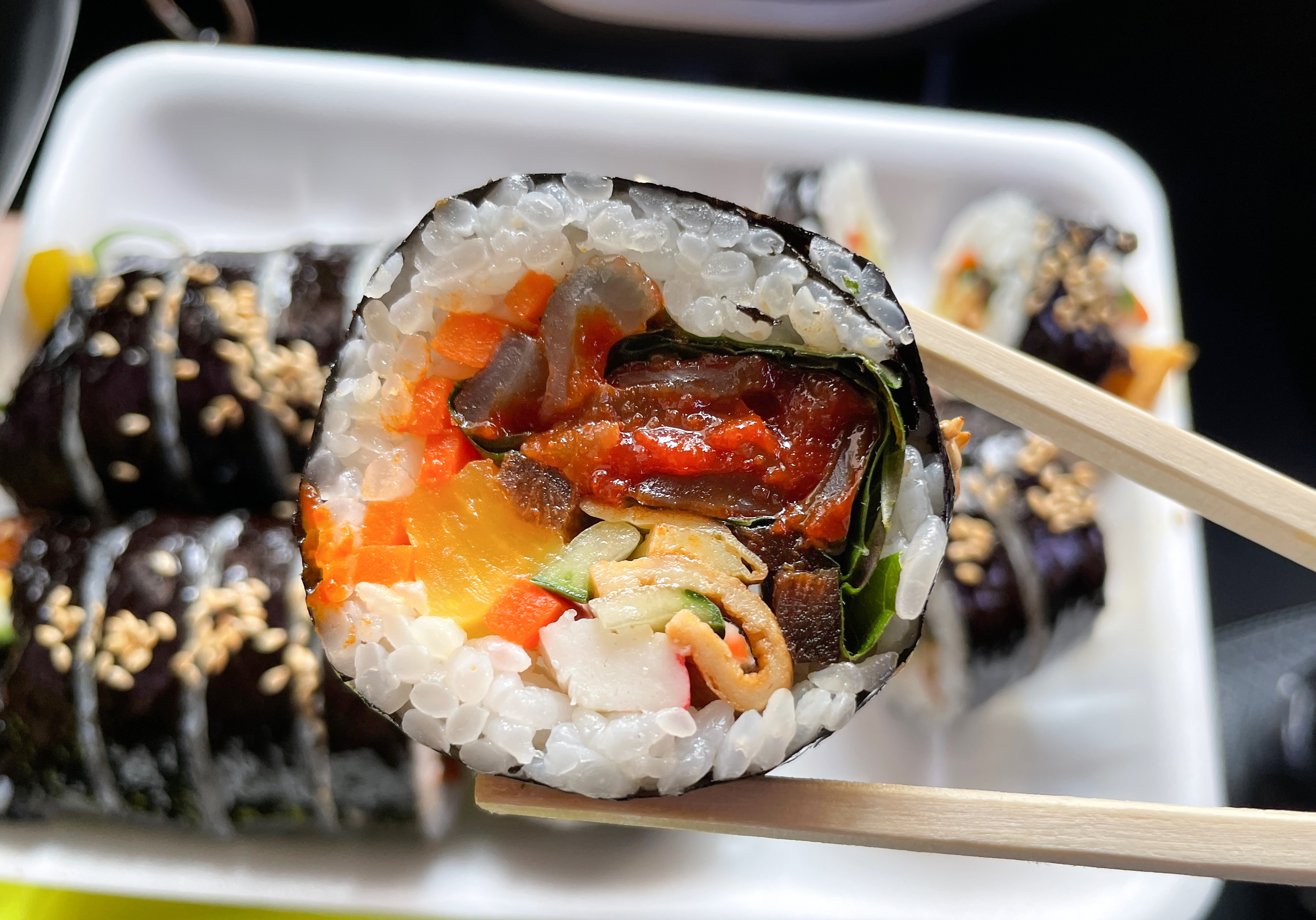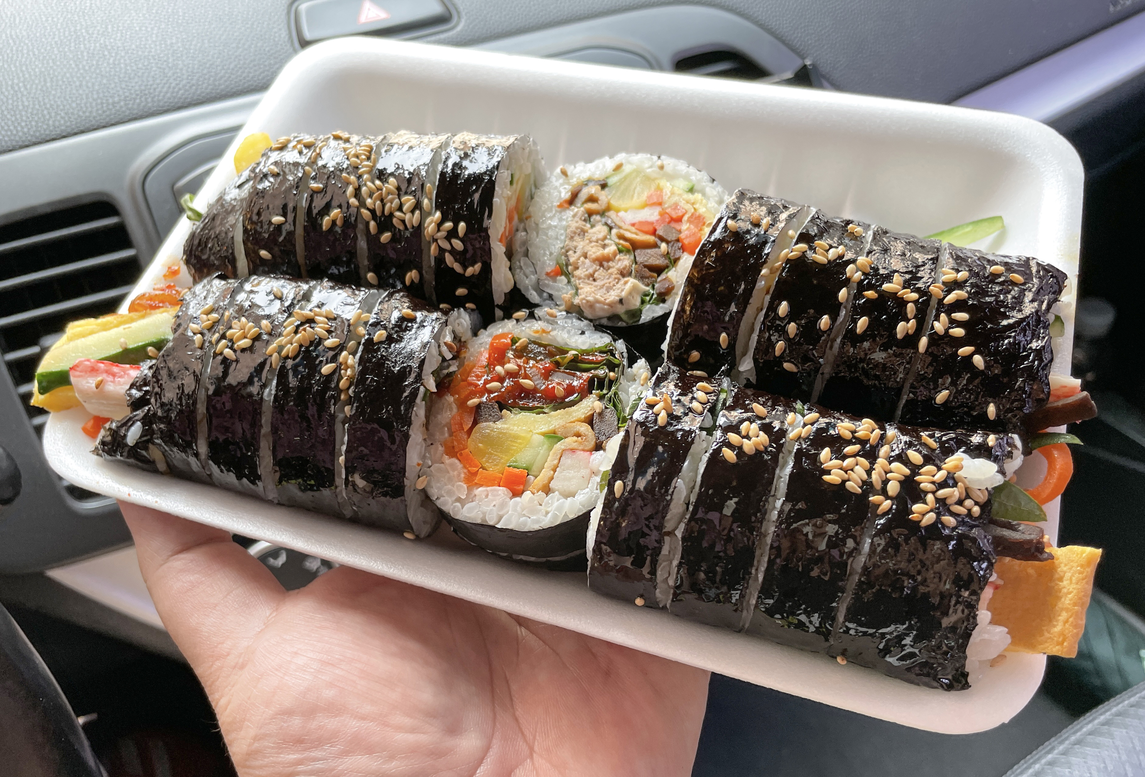 참치 김밥은 참치와 마요네즈가 적당히 섞여서 너무 느끼하지도 않고 담백했으며, 오징어 김밥은 쫄깃한 식감과 매콤한 오징어의 양념이 인상적인 김밥이었습니다. 무심코 한 입 베어 물었는데 온 몸이 짜릿할 정도로 화끈하게 매운맛이 입 안을 감싸더라고요. 처음 먹었을 때는 준비가 안되어 있어서 차 안에 있던 생수를 무작정 입에 털어 넣었는데, 나중에 먹을 때는 그래도 적응이 되어서 그런지 괜찮더라고요. 다음에 또 기회가 된다면 장조림 김밥이나 산더덕 김밥을 한 번 도전해보고 싶습니다.(ㅋㅋ)