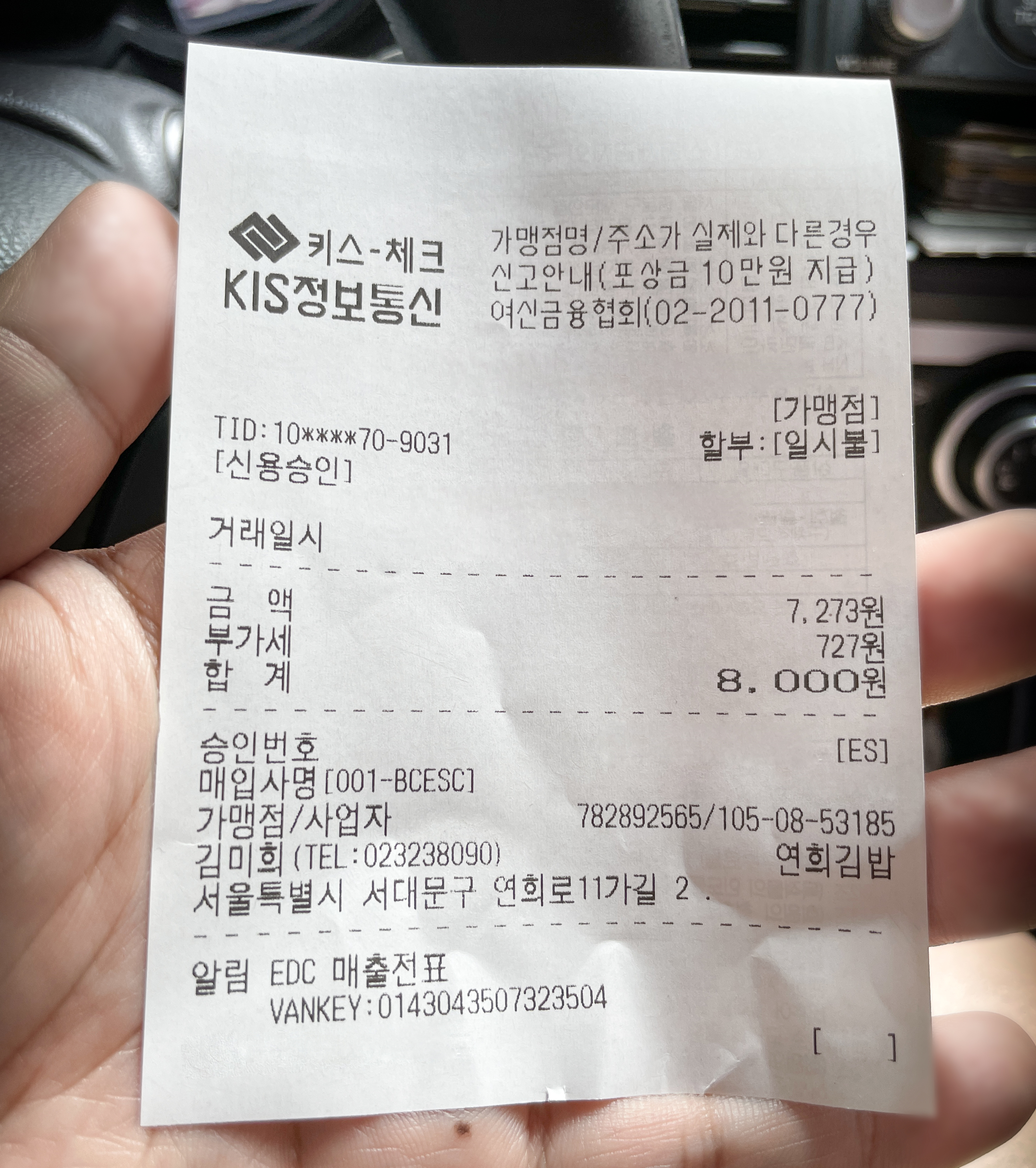 이 가게는 근처에서 콘텐츠 촬영 중인 형을 기다리다가 방문한 곳인데, 때마침 점심을 못 먹어서 기다리는 동안 간단하게 끼니를 때우려고 이용했습니다. 연희동 연희김밥은 줄서서 사가지고 가는 김밥 맛집으로 알려진 곳이었으며, 입안이 얼얼해질 만큼 매콤한 오징어김밥이 유명한 것 같더라고요.