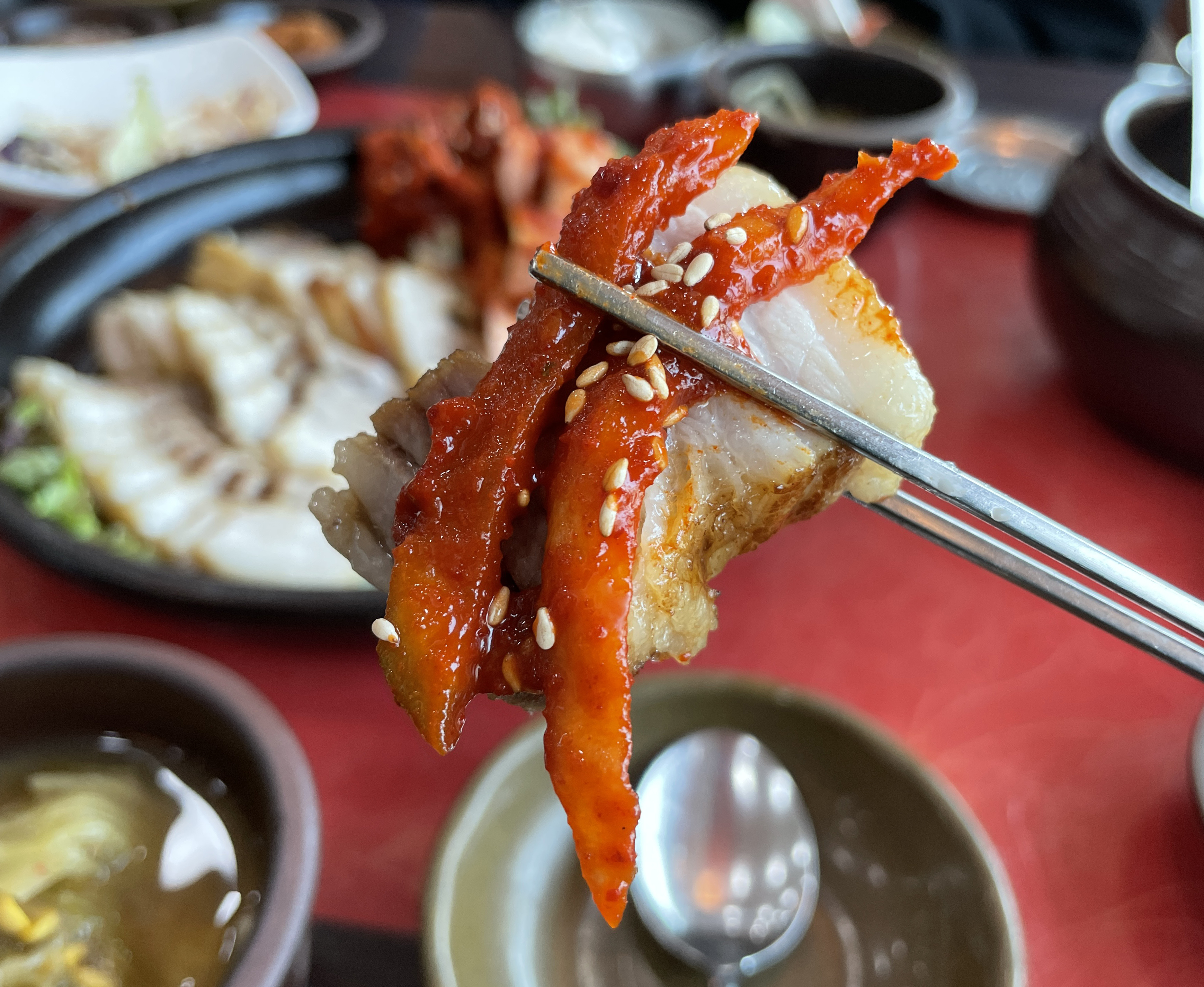 시래기 된장국은 구수한 맛이 있어서 좋았고, 보쌈은 뻑뻑하지 않고 부드럽게 잘 삶아져 먹기에 좋았습니다. 저는 보쌈 김치중에 무김치와 곁들이니 참 맛있더라고요.
