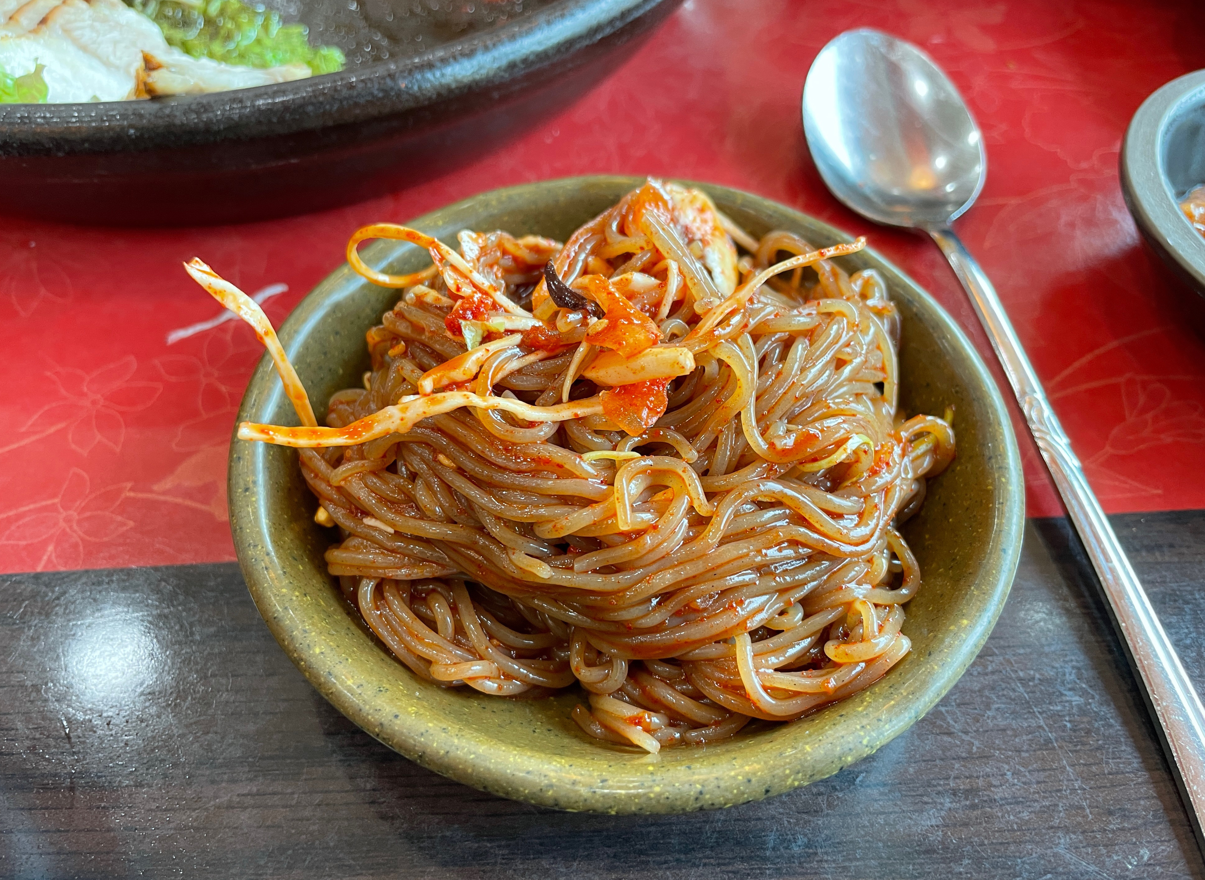 같이 나온 쟁반국수의 모습은 이렇습니다. 양배추와 상추, 아몬드, 땅콩, 건포도 등이 올라가 새콤하면서도 견과류의 바삭한 식감이 곁들여져 더욱 먹기 좋았습니다. 항아리보쌈 거여역점의 가성비 메뉴 점심특선 세트정식은 별 기대없이 먹었는데, 의외로 만족스럽게 먹었던 메뉴였습니다.