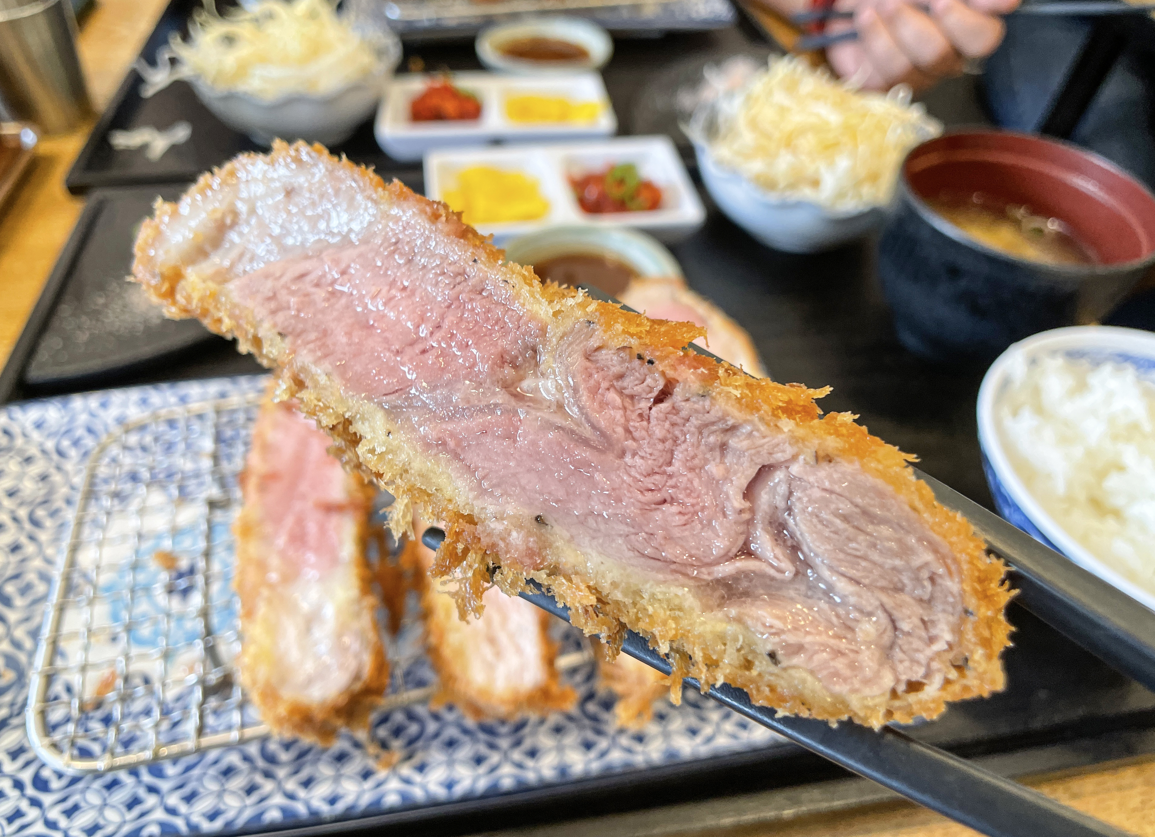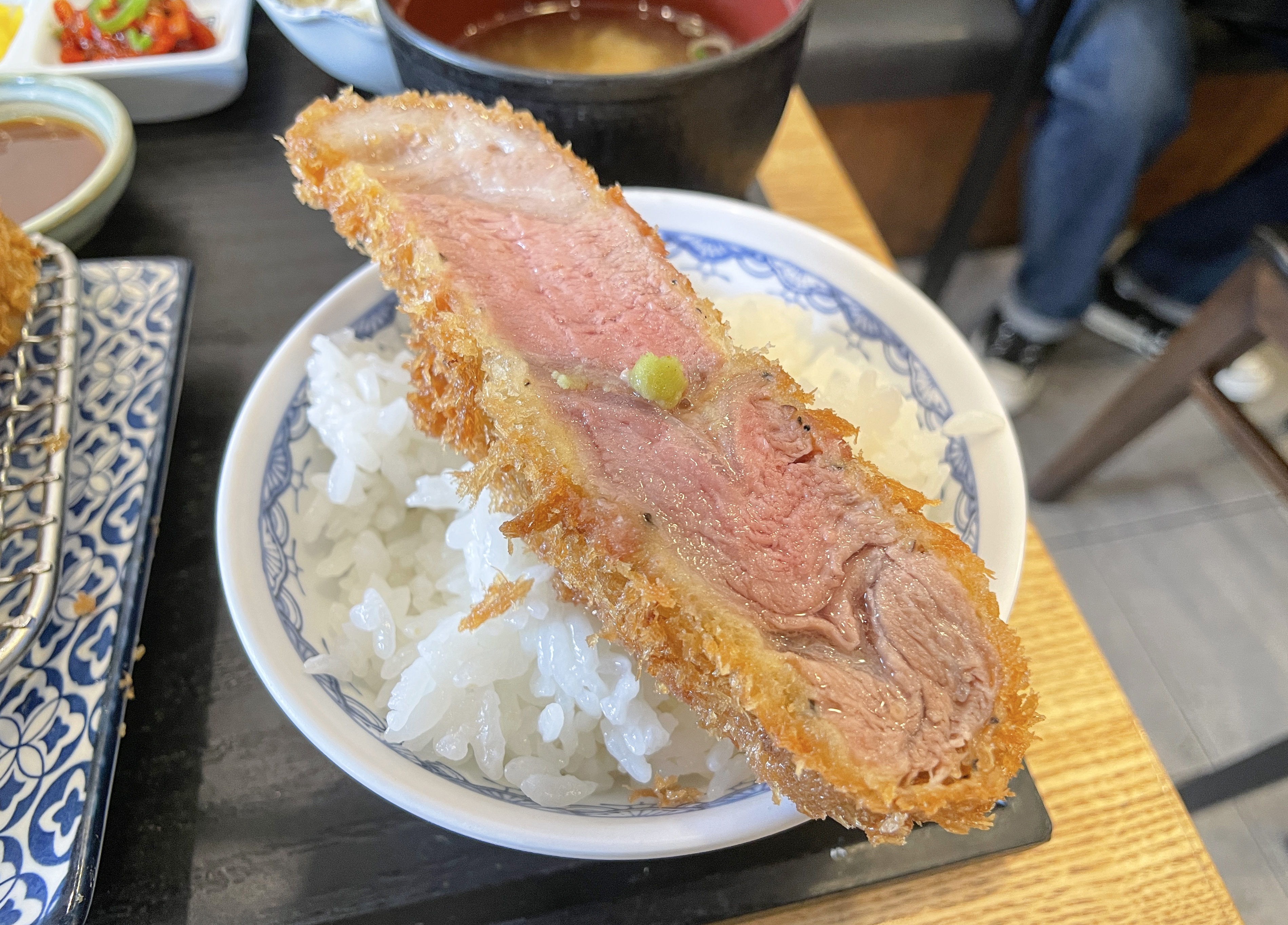돈까스의 육즙을 느낄 수 있어서 좋았지만, 한편으로는 고기 씹는 식감이 질겅질겅 거려서 저에게는 좀 아쉽더라고요. 고기가 이로 끊으면 적당히 끊겨야 하는데, 생고기를 씹는 것처럼 약간 비릿하기도 하고 끊기지도 않아서 뭔가 이질적인 느낌이었습니다. 특히 기름 냄새는 안 났으면 좋았을 텐데, 기름 냄새가 나서..🥲