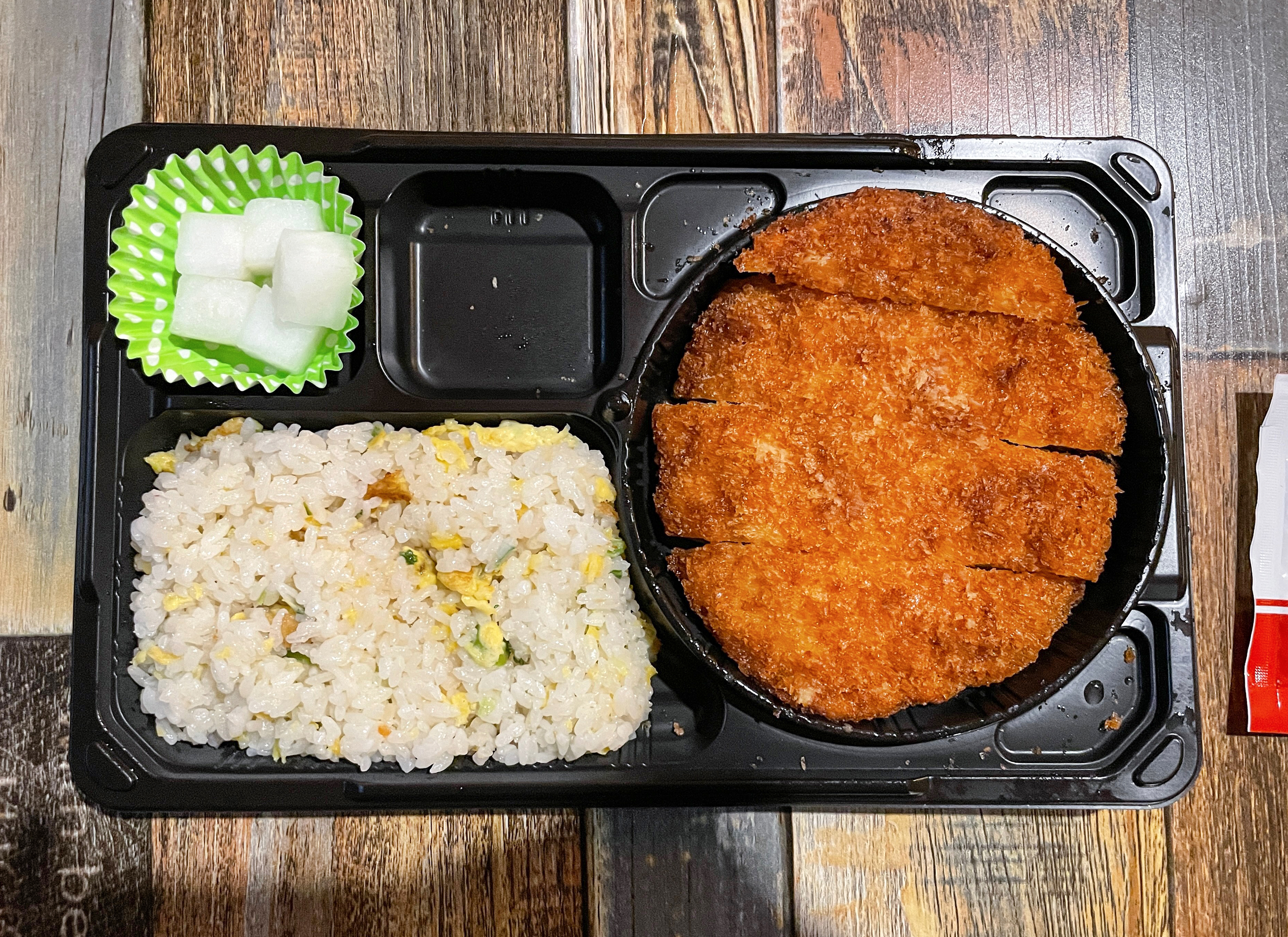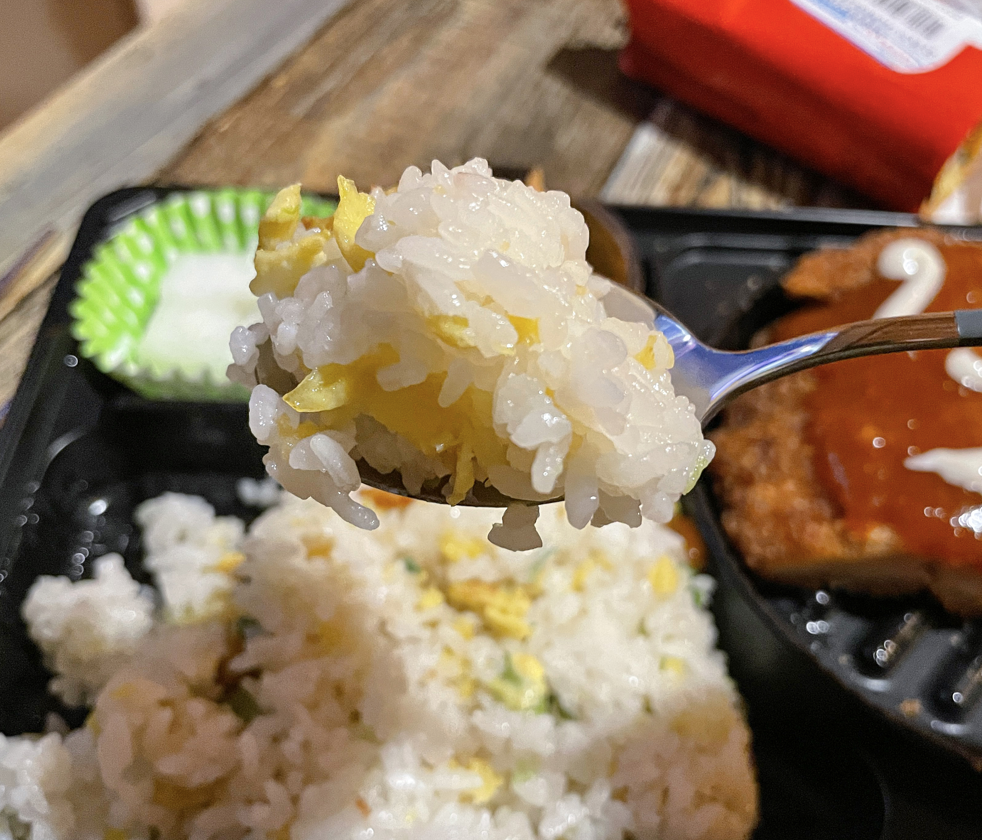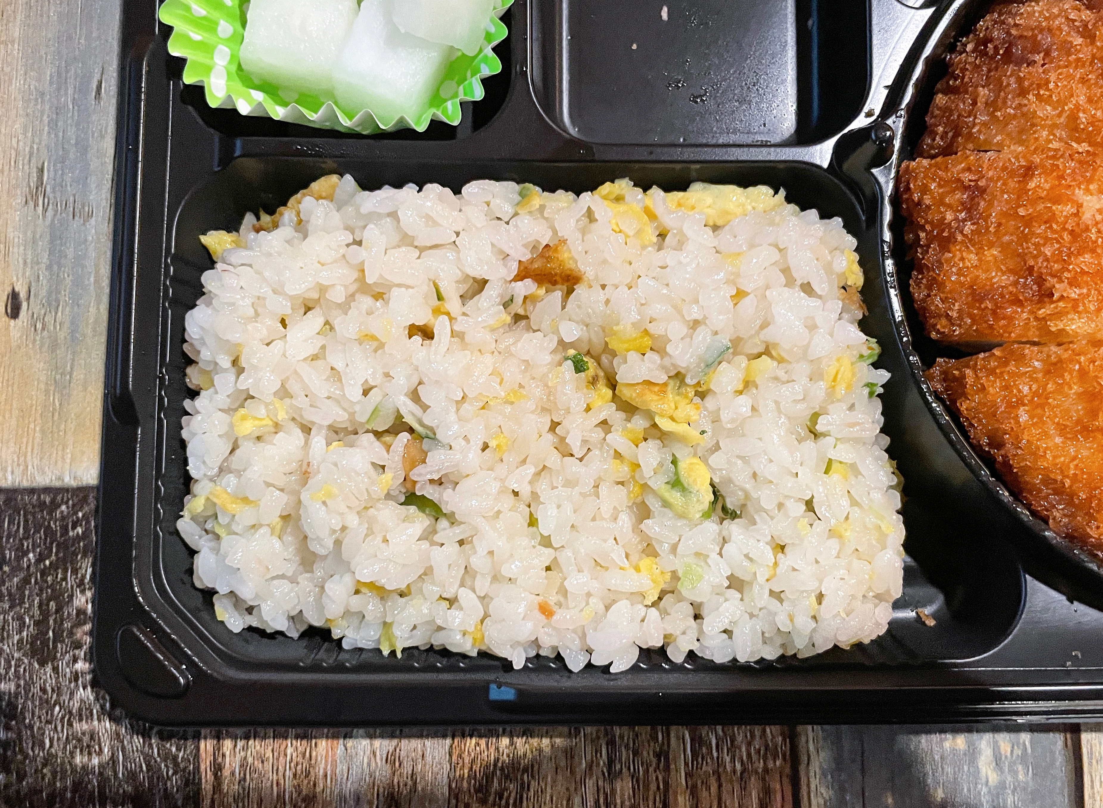 처갓집 양념치킨 도시락의 치킨까스는 전자레인지에 돌려서 익히는 방식이다 보니, 튀김옷이 바삭바삭하지 않고 눅눅하다는 게 가장 큰 단점인 것 같습니다. 실제 먹어보면 겉 부분은 조금 딱딱하기까지 합니다. 볶음밥도 계란과 파조각 조금 들어있는데, 맛은 괜찮았으나 4,900원이라는 가격 대비 구성은 딱히 좋아 보이지 않았습니다.