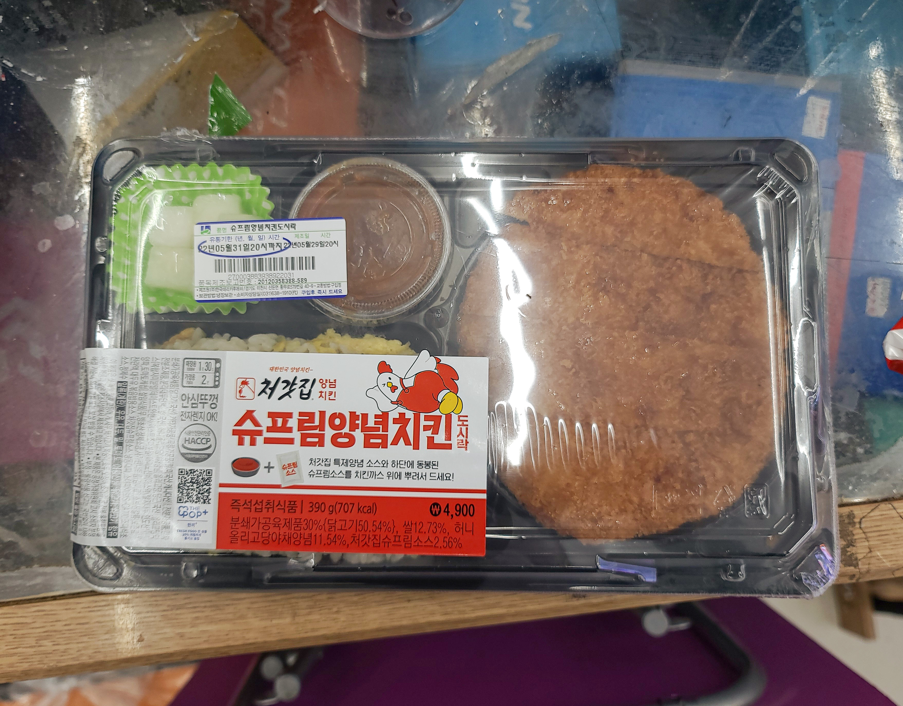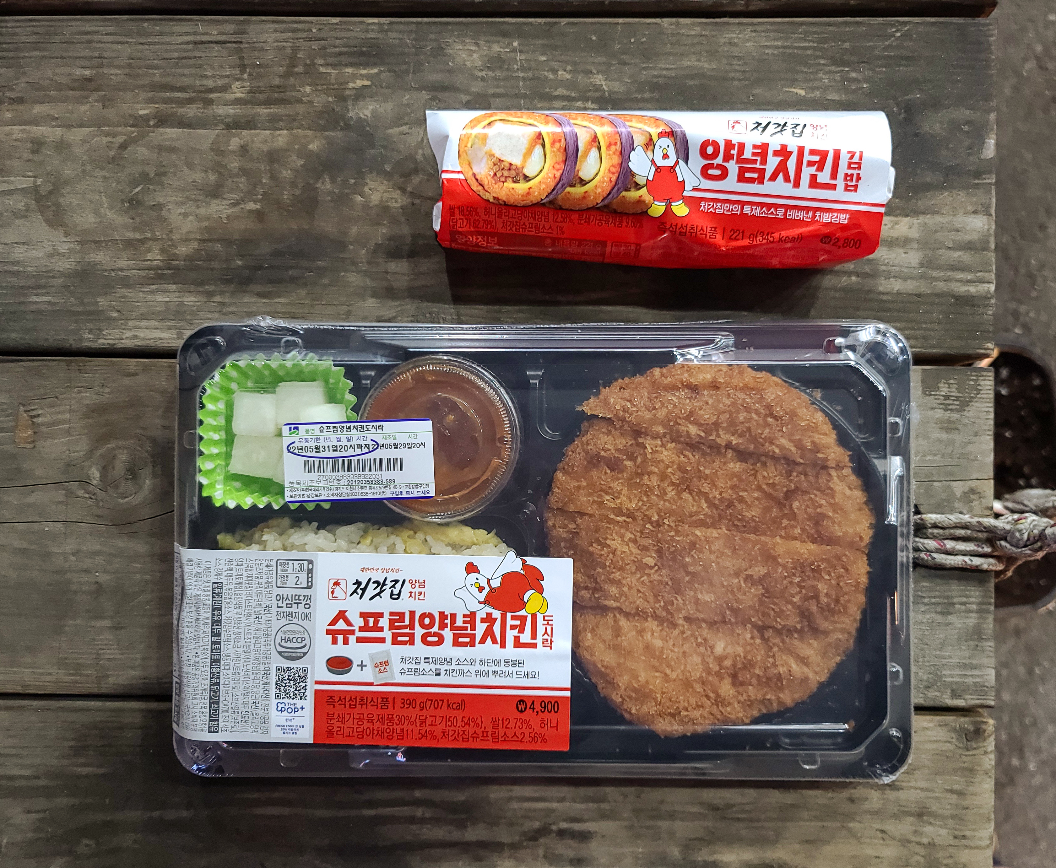 처갓집 슈프림 양념치킨 도시락은 4,900원, 처갓집 양념치킨 김밥은 2,800원으로 일반적인 3~4천 원 대 편의점 도시락에 비해서 가성비는 크게 좋아 보이진 않습니다. 일단 호기심에 구입했으니 맛을 한 번 봐야겠죠??
