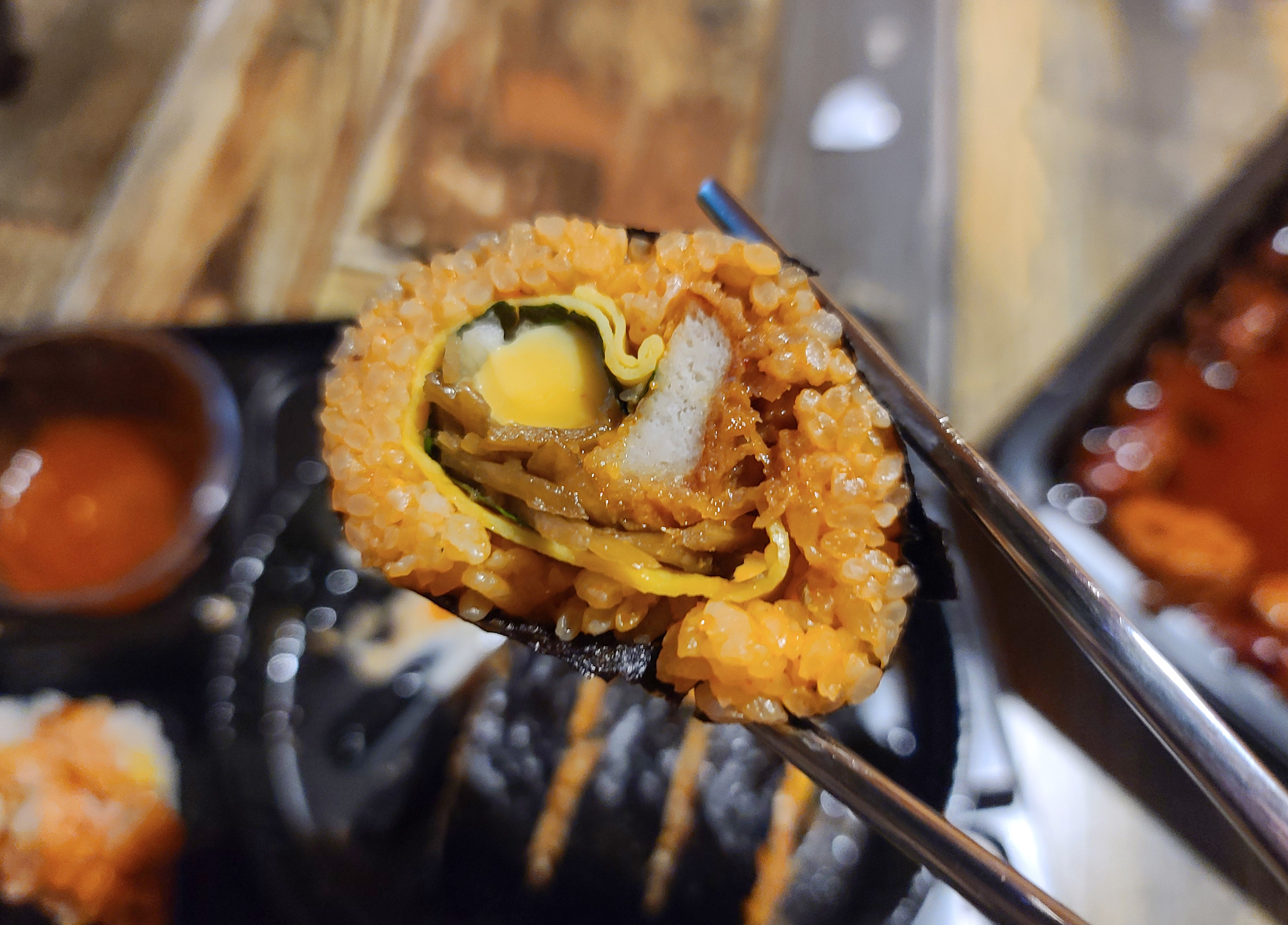 처갓집 양념치킨 김밥의 모습은 이렇습니다. 양념이 되어있는 밥과 계란지단, 튀김, 치즈 등이 들어있었습니다. 포스팅하면서 조사해보니 3,900원 처갓집 양념치킨 버거도 있다고 하네요. 김밥은 먹을만했지만 쏘쏘.